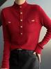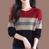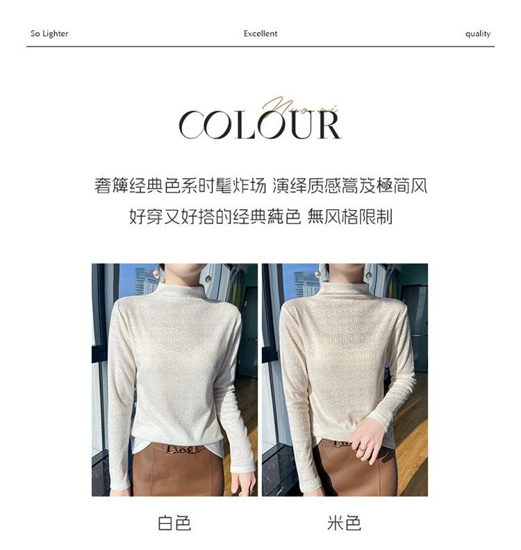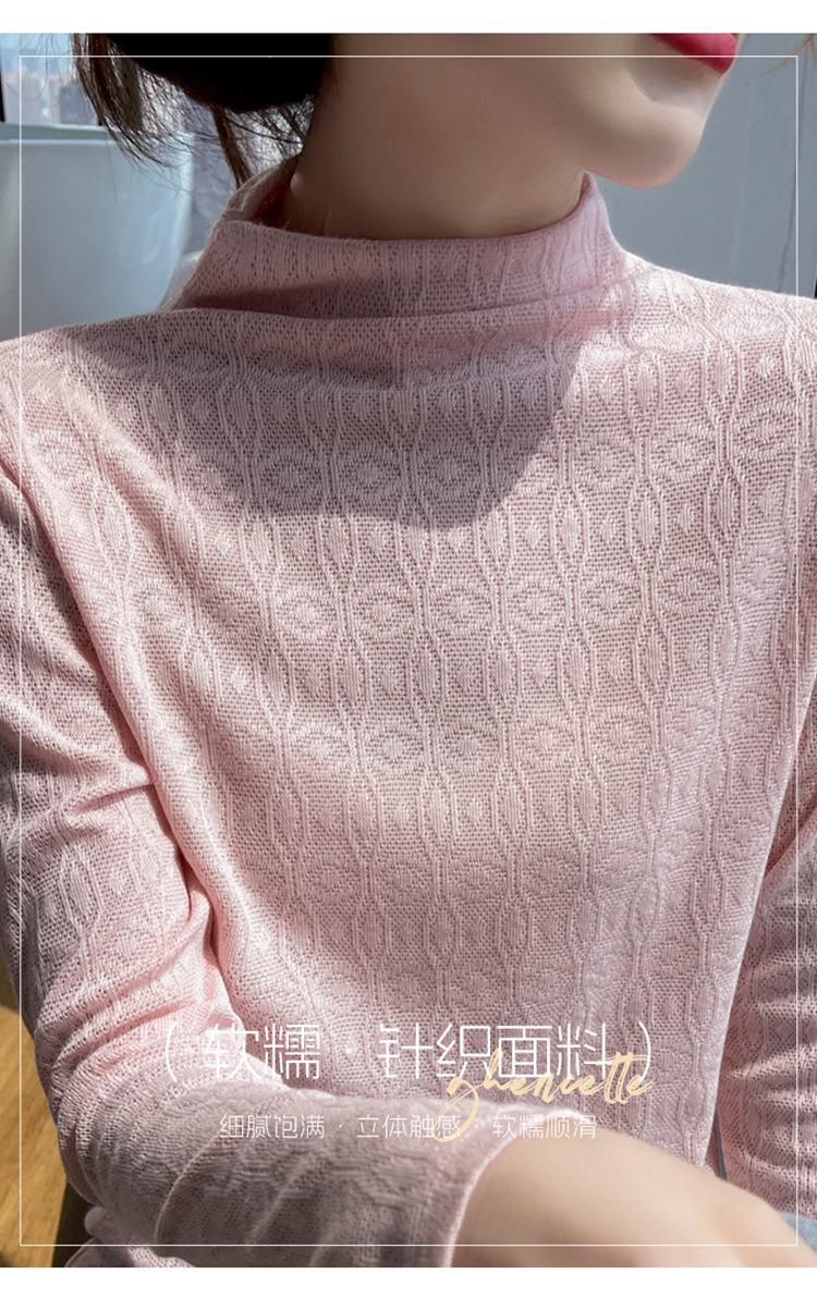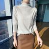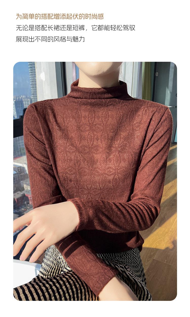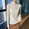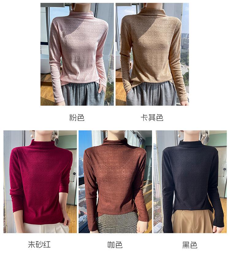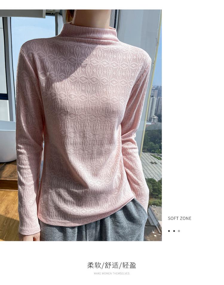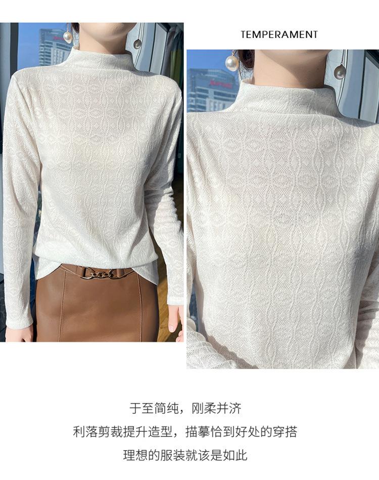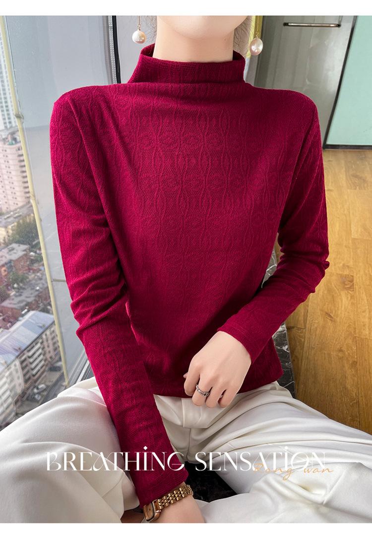 Jacquard Medio Alto Principios de Otoño Camiseta Base Cuello Redondo para Todo el Año Camiseta Tejida Diseño Sensorial Top Manga Larga Mujer Nuevo 24 Vintage Francés