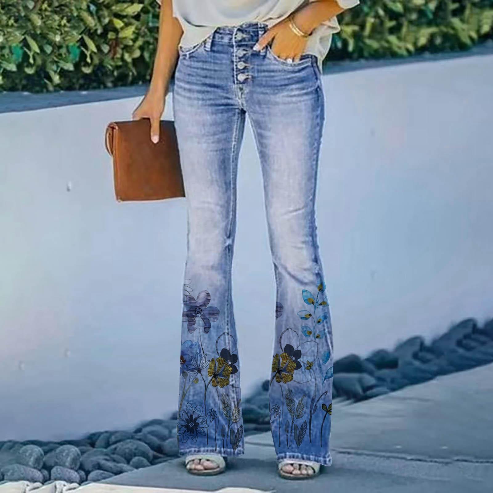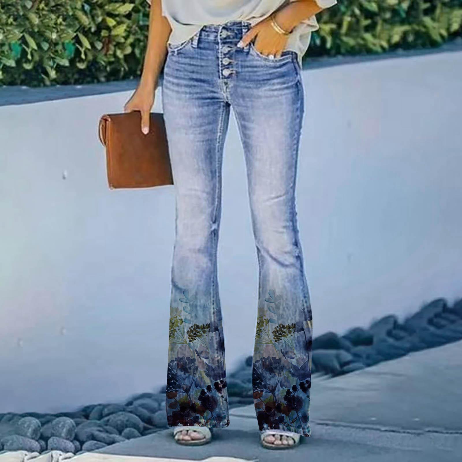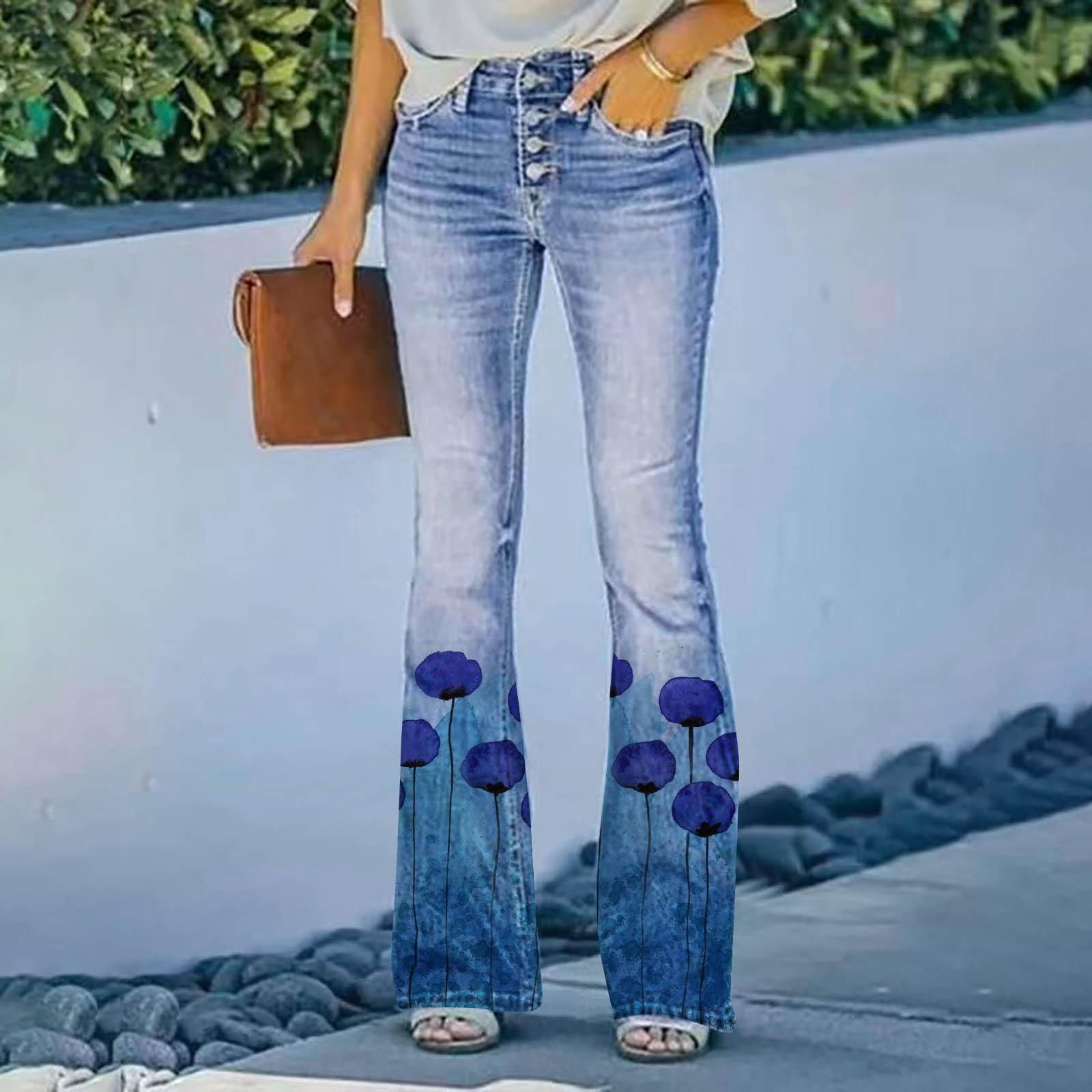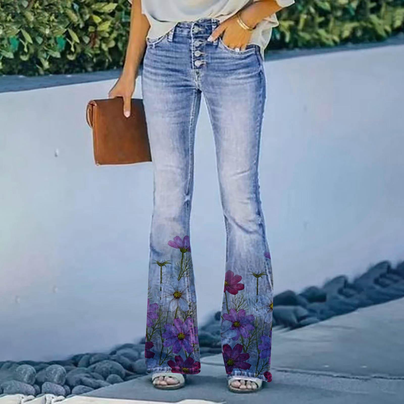 Pantalones casuales para mujer de talla grande, imitación jeans 2023, Amazon AliExpress ebay comercio exterior, pantalones delgados florales