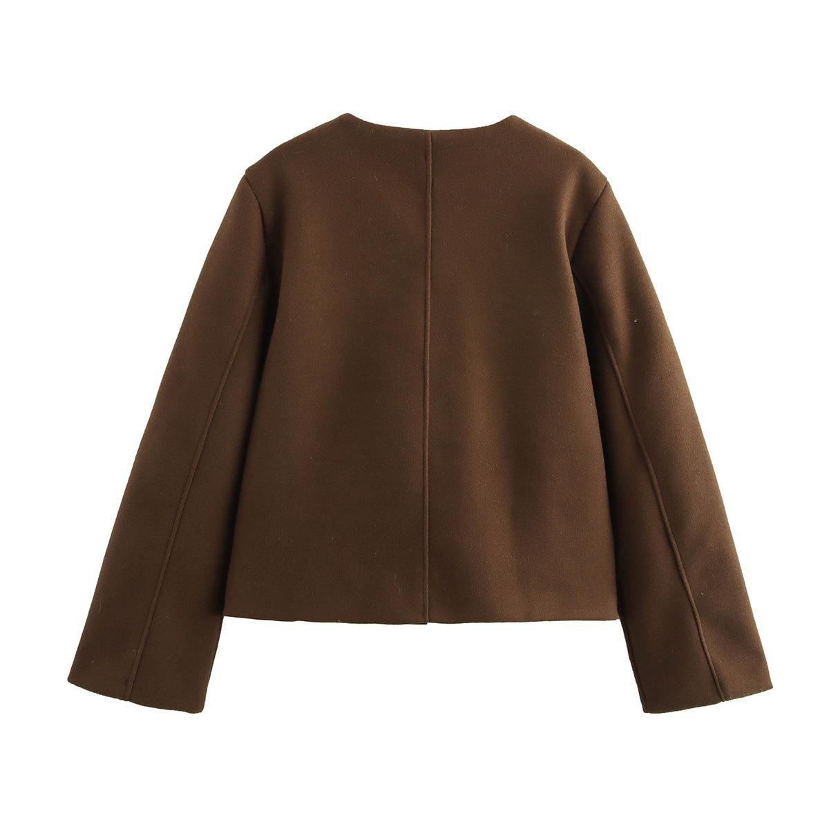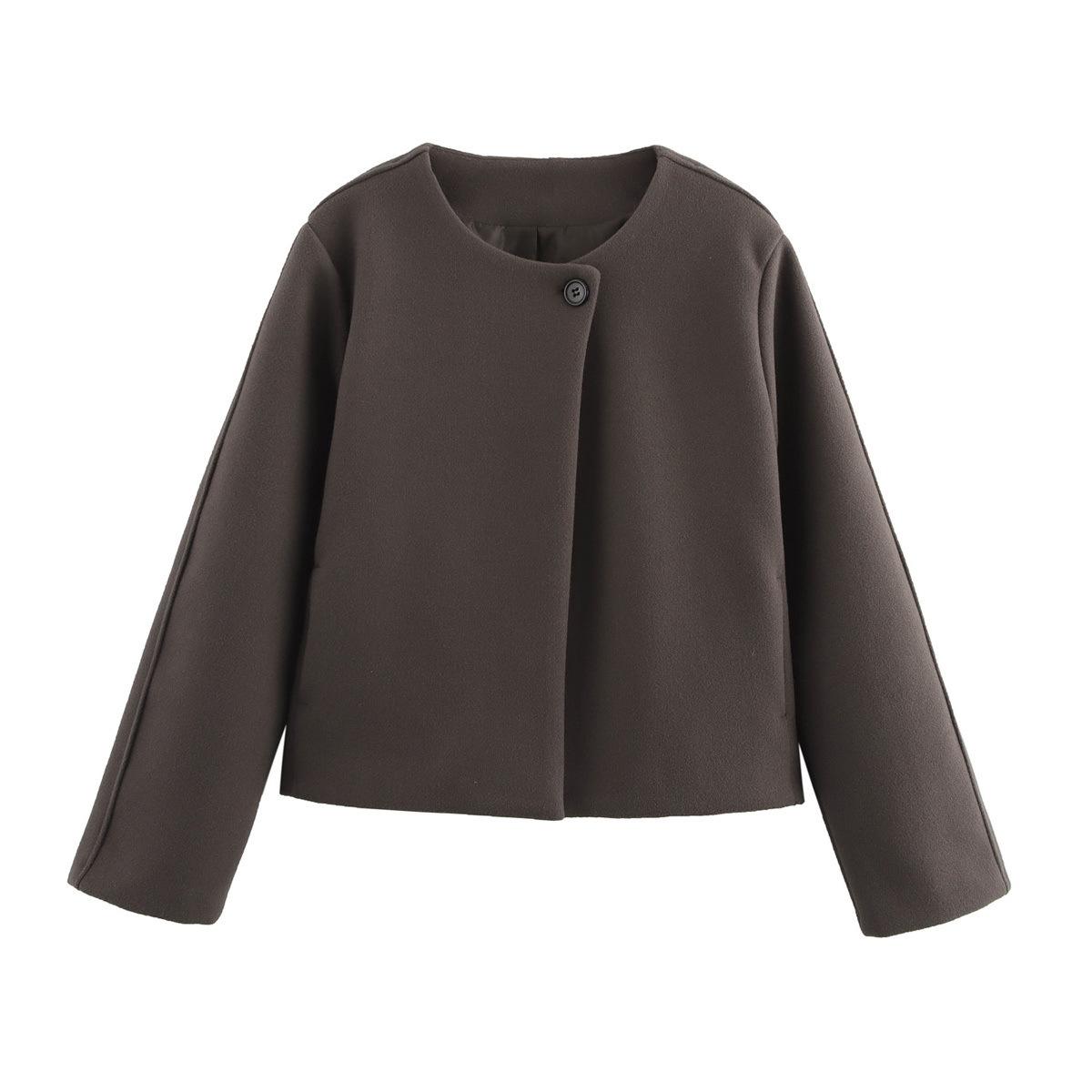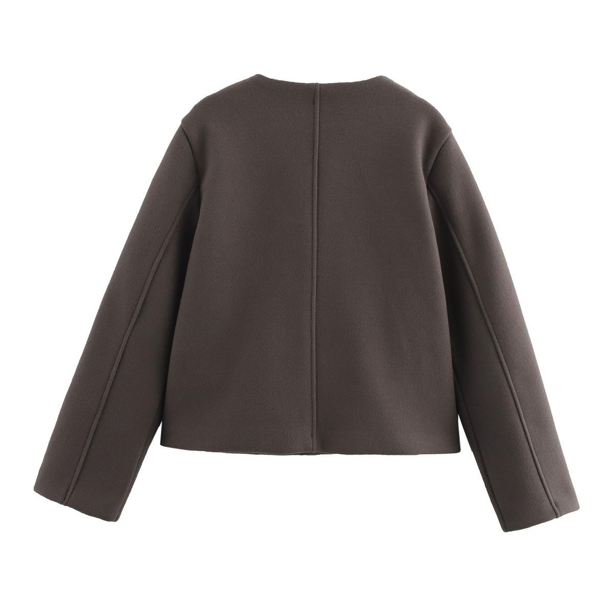 Ropa de Otoño para Mujer 2024 Nuevo Estilo Europeo y Americano a la Moda Sencillo Versátil Casual Chaqueta de Lana Gruesa de Manga Larga