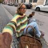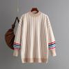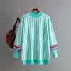 Suéter de punto de rayas suelto de largo medio con cuello redondo para mujer, nuevo para otoño e invierno 2024, estilo transfronterizo europeo y americano
