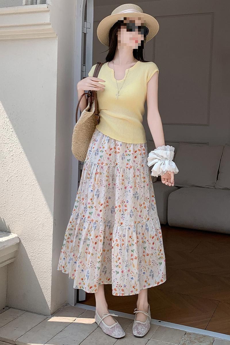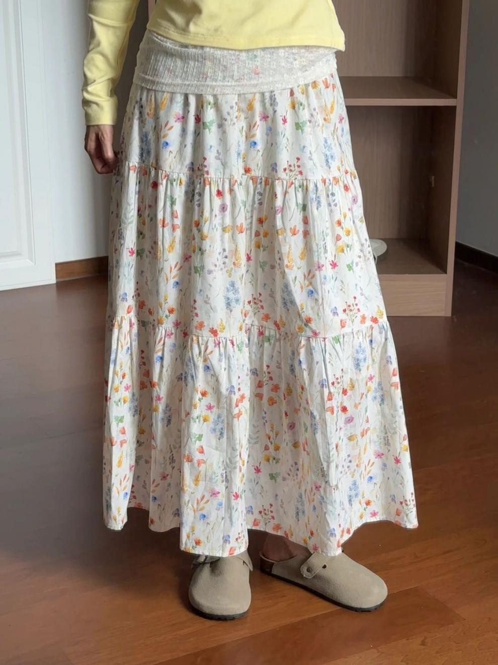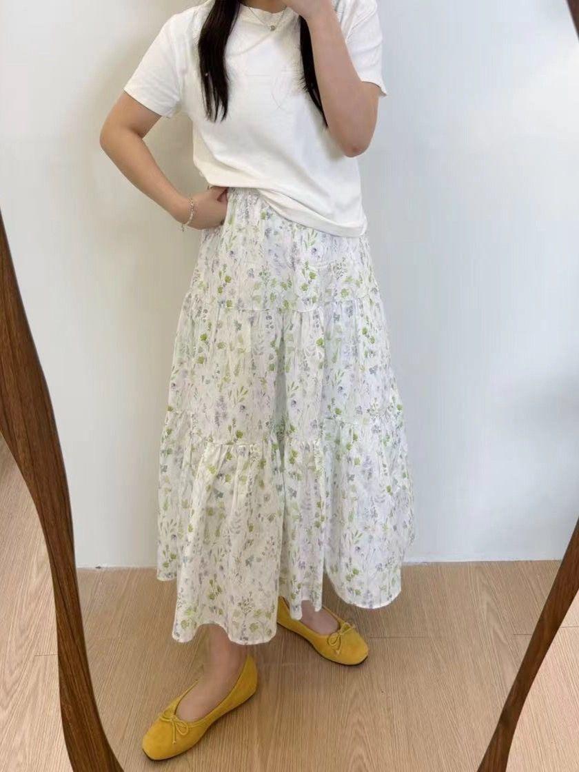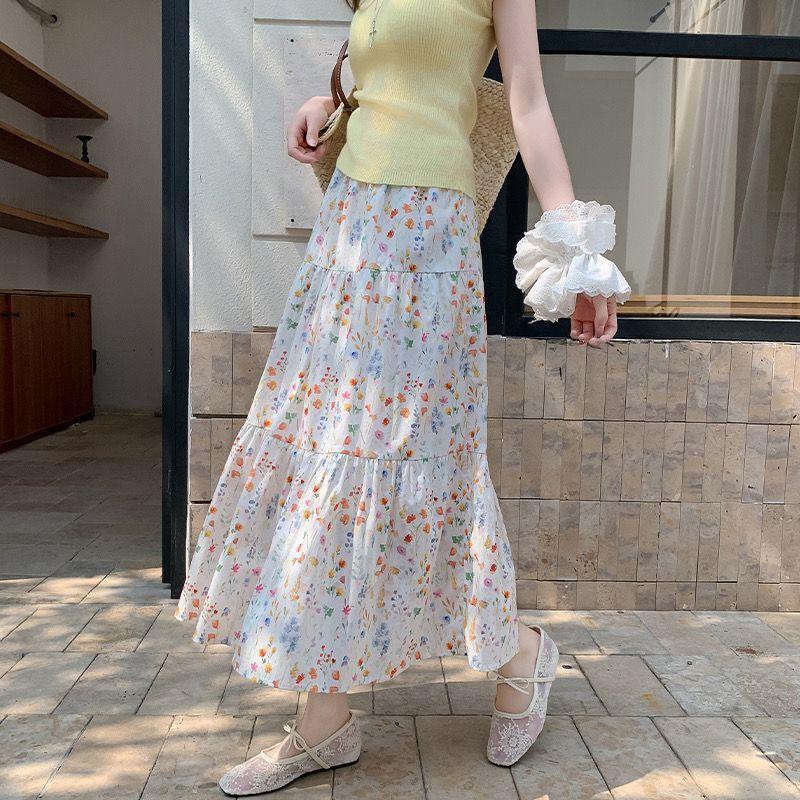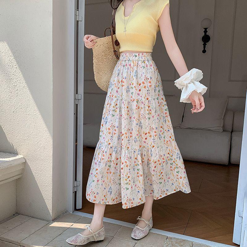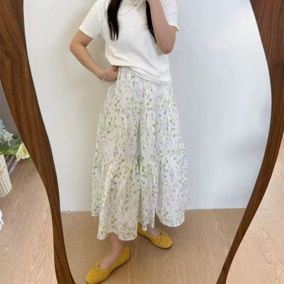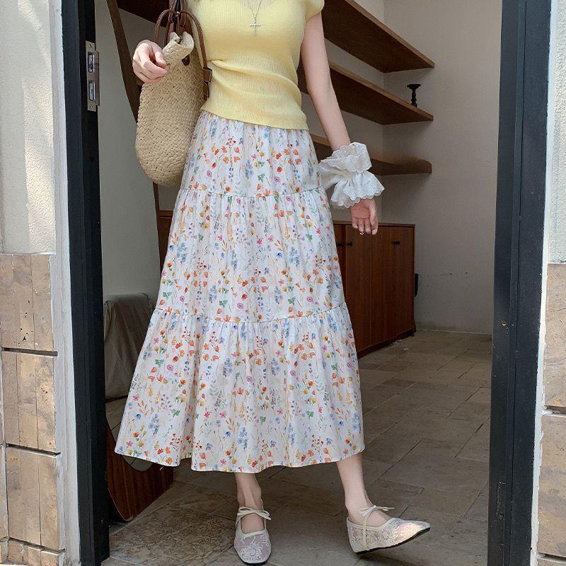Hermosa falda floral de estilo francés de cintura alta y corte en A para mujer 2025 Verano Nuevo Falda suave versátil que cubre las caderas de largo medio