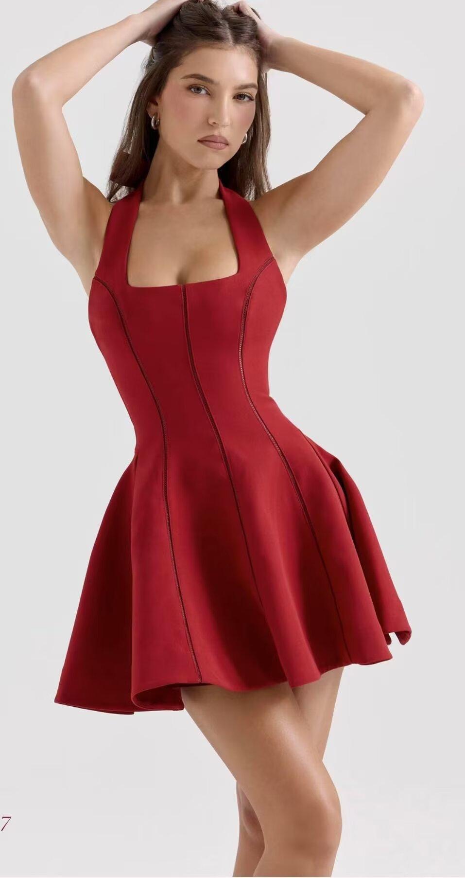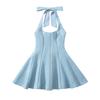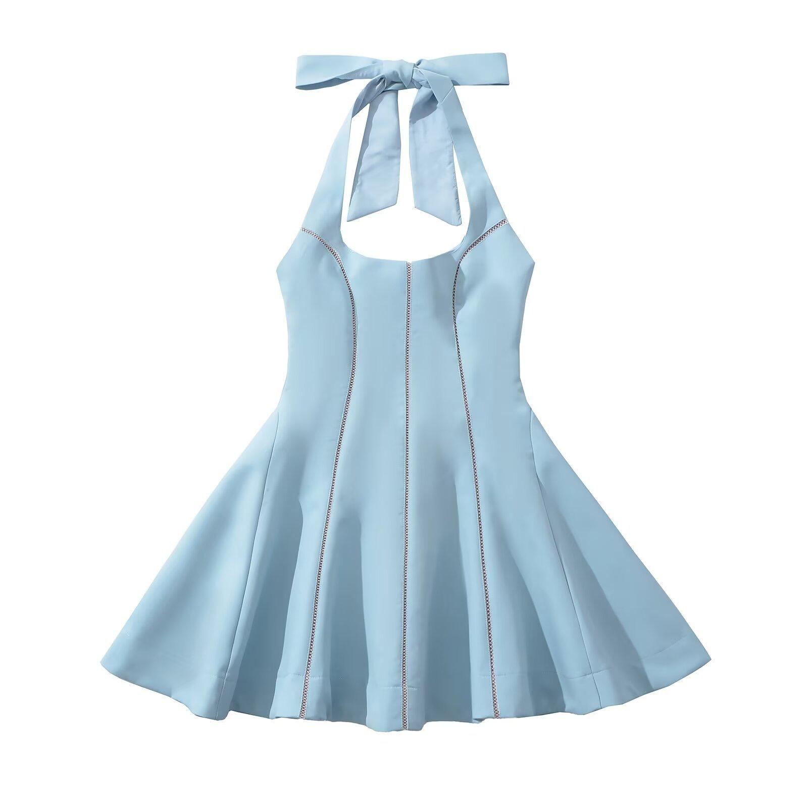 Vestido Estilo Casa Vestido de Verano Nuevo para Mujer Vacaciones Tirante al Cuello Espalda Descubierta Sexy Cintura Entallada Falda con Caída