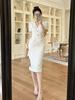 2026 Nuevo Estilo de Moda de Verano para Mujer Elegante Vestido Blanco de Ajuste Ceñido al Cuerpo con Cuello en V para Ocasiones Formales 21784