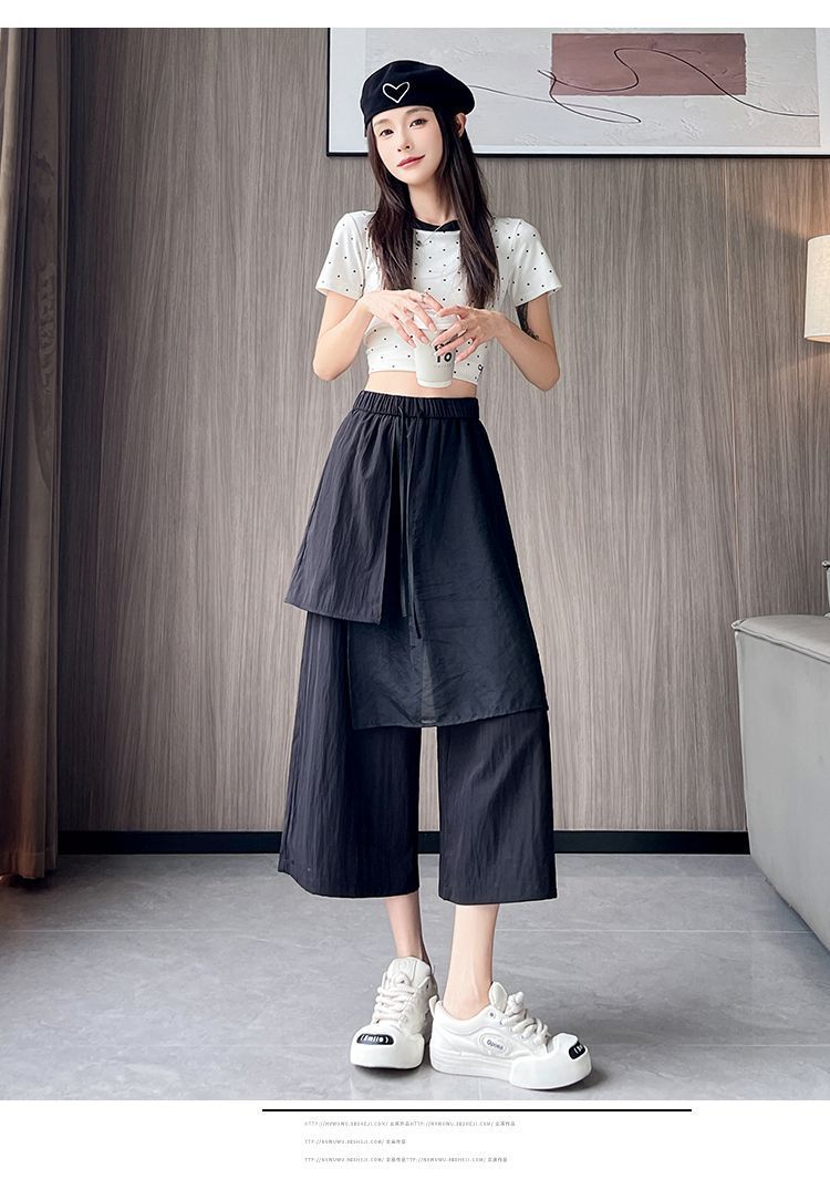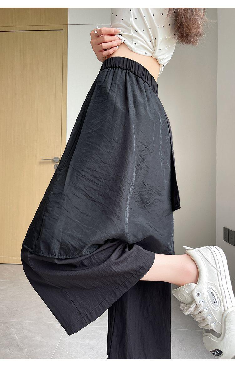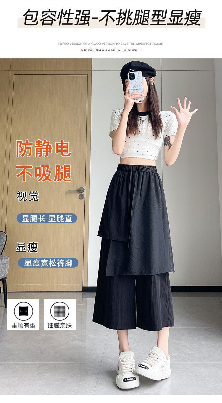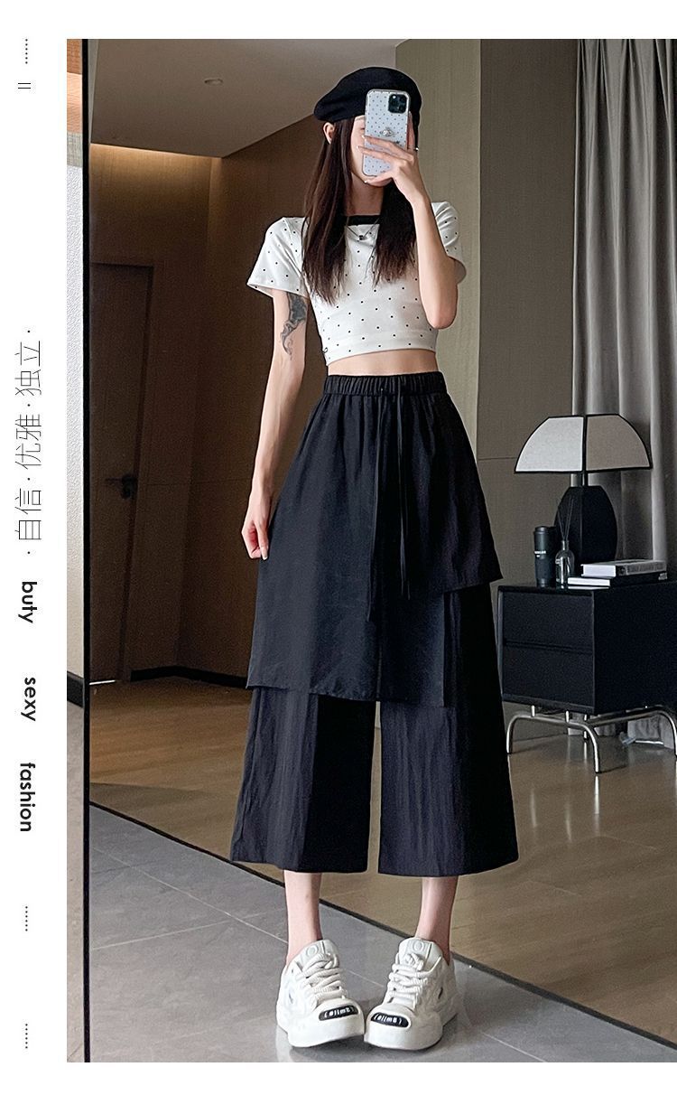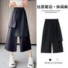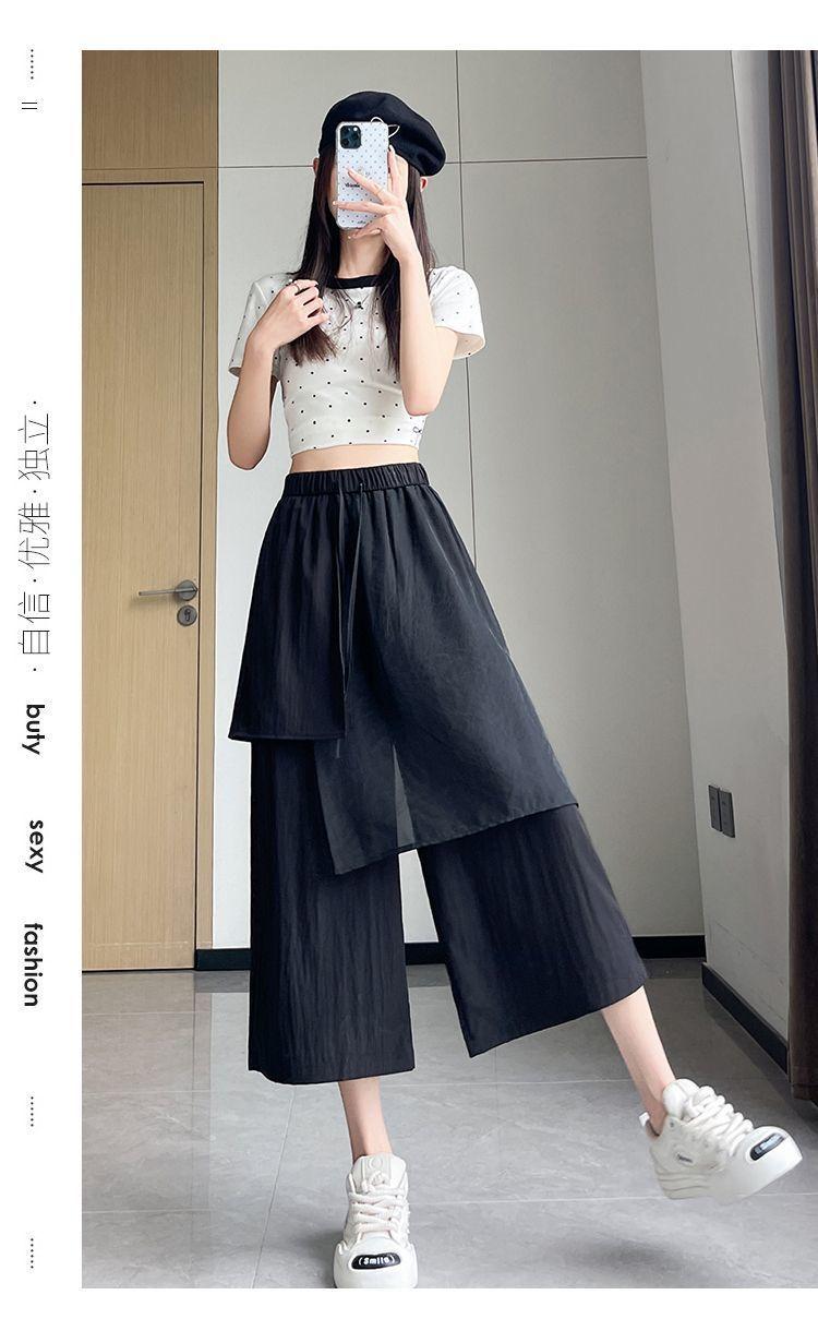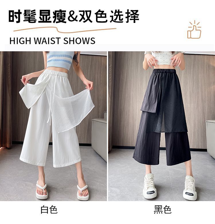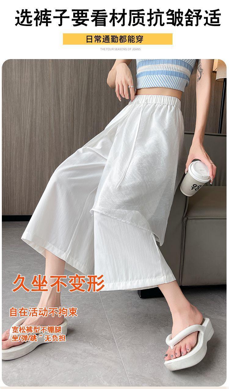 Pantalones Negros de Pierna Ancha Mujer Verano Delgados 2025 Nuevo Sentido del Diseño Costuras de Malla Solapa Trasera Casual Adelgazantes Pantalones Falda Nueve Puntos