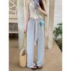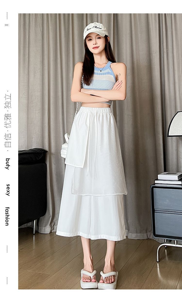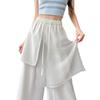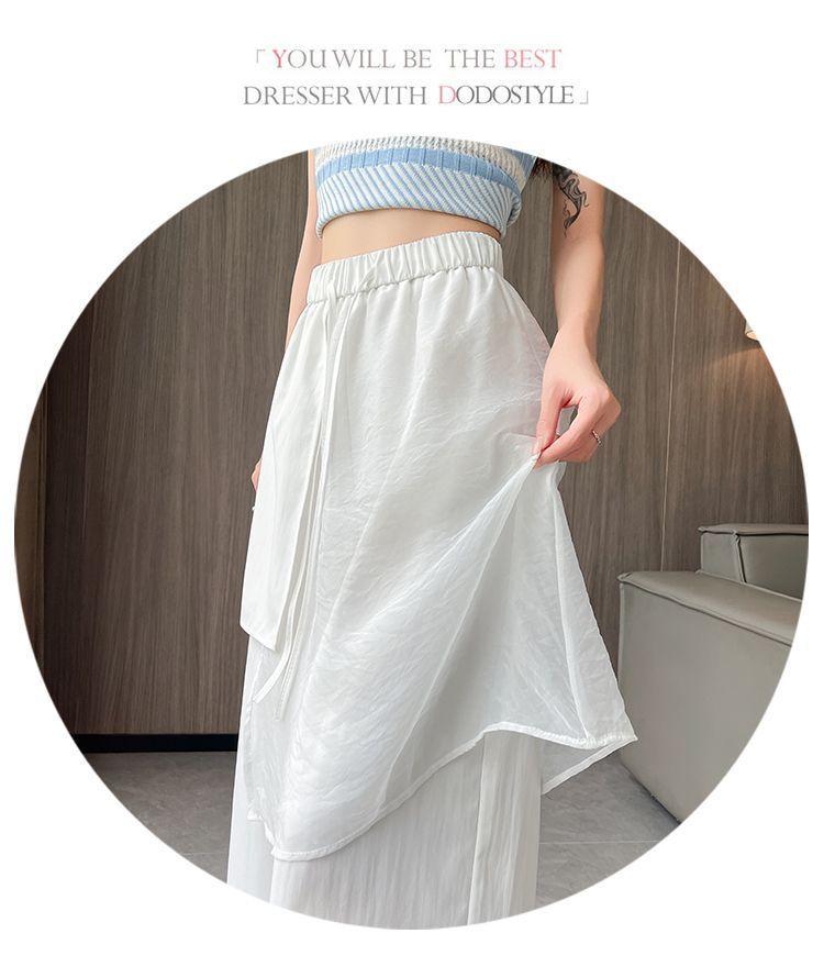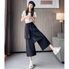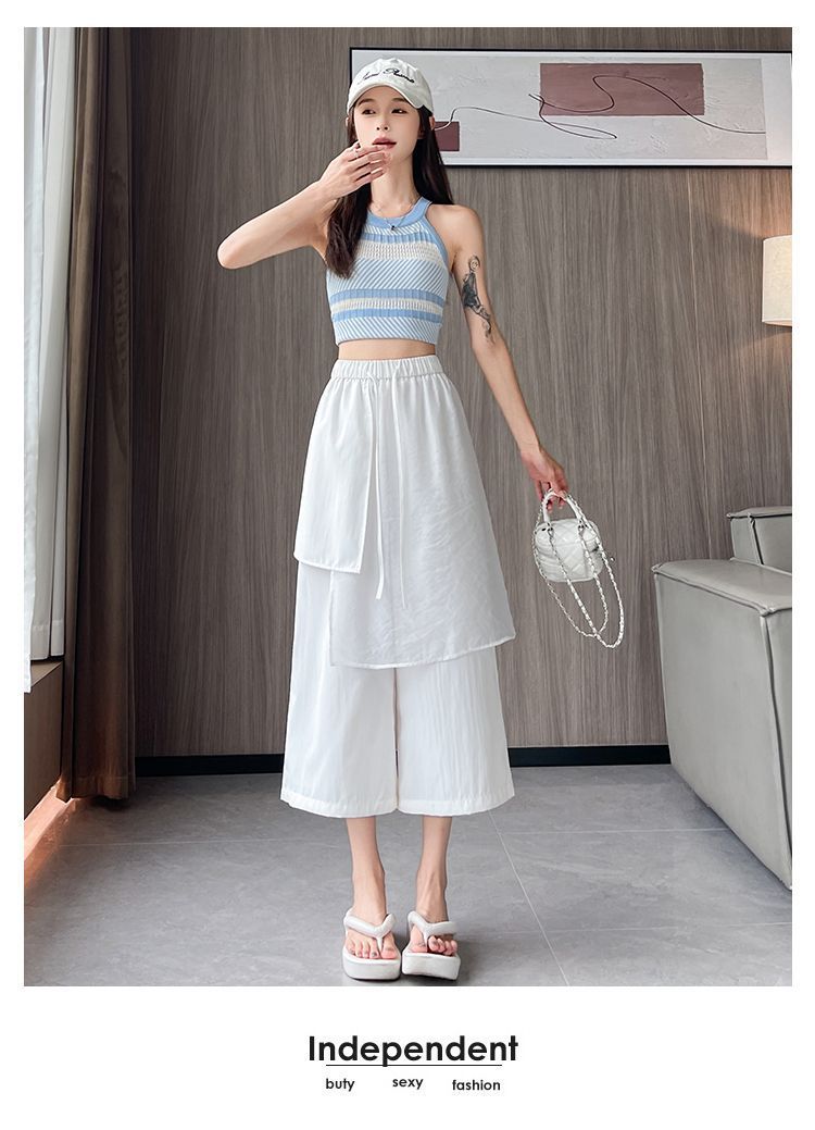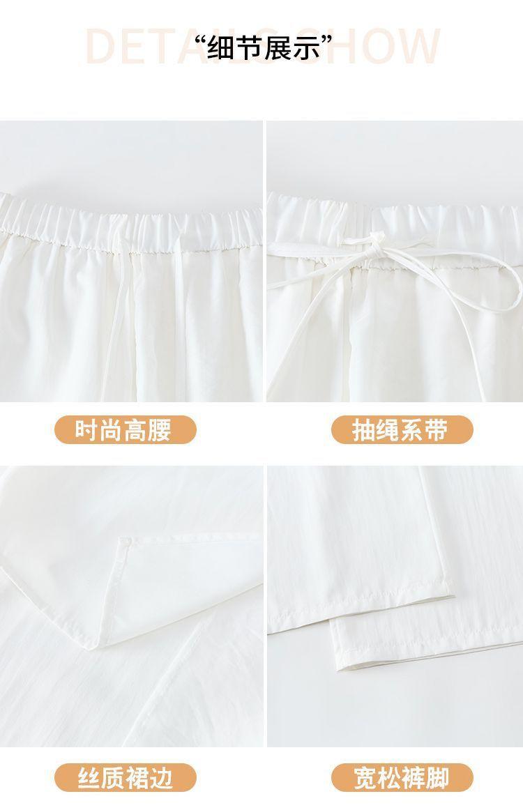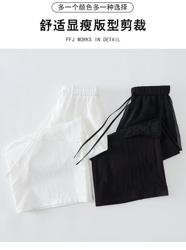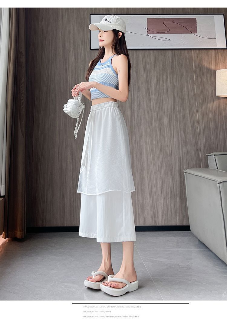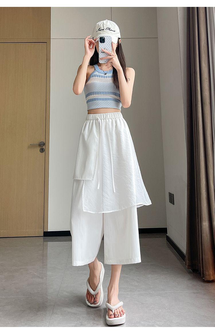 Pantalones Negros de Pierna Ancha Mujer Verano Delgados 2025 Nuevo Sentido del Diseño Costuras de Malla Solapa Trasera Casual Adelgazantes Pantalones Falda Nueve Puntos