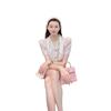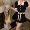 Traje de manga corta estilo retro francés Falda línea A 2025 Nuevo Casual Versátil Viajero Vestido rosa