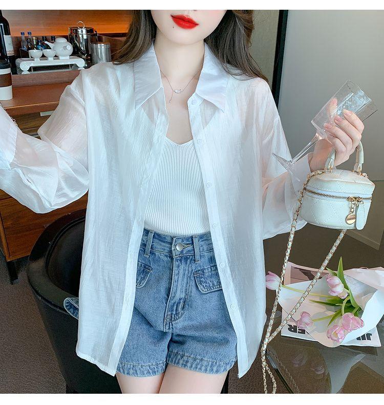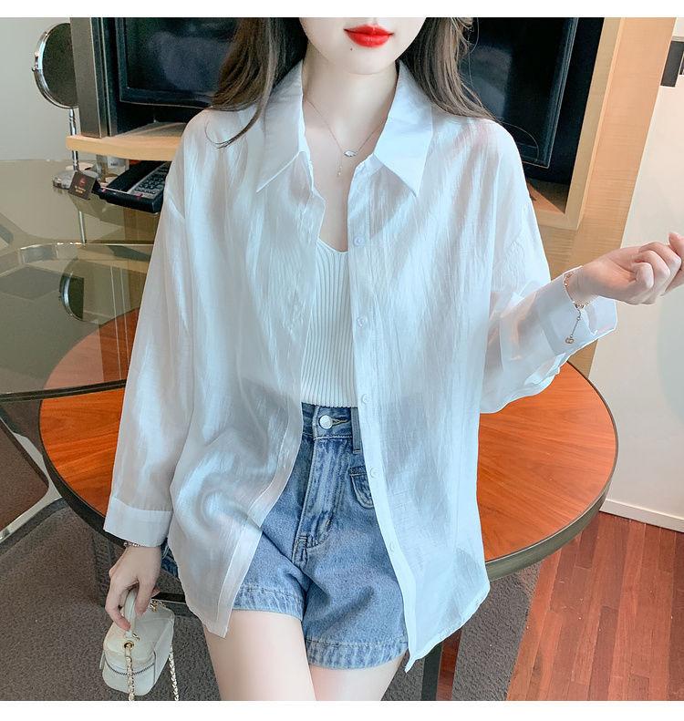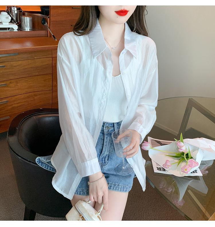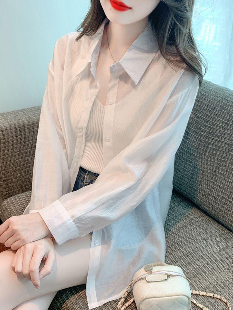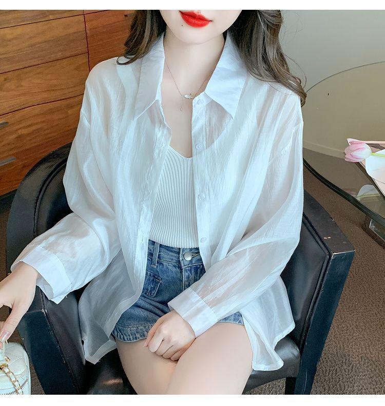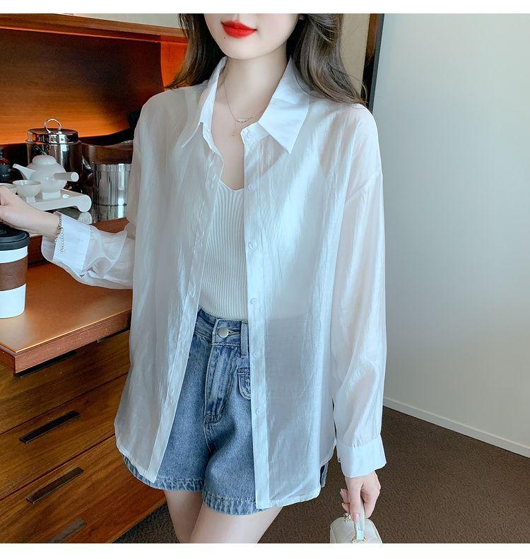 Camisa de Verano Nueva Fina Protectora Solar de Manga Larga para Mujer, Camisa Versátil de Exterior con Cuello Polo para Viajeros, Chaqueta Camisa para Aire Acondicionado a la Moda