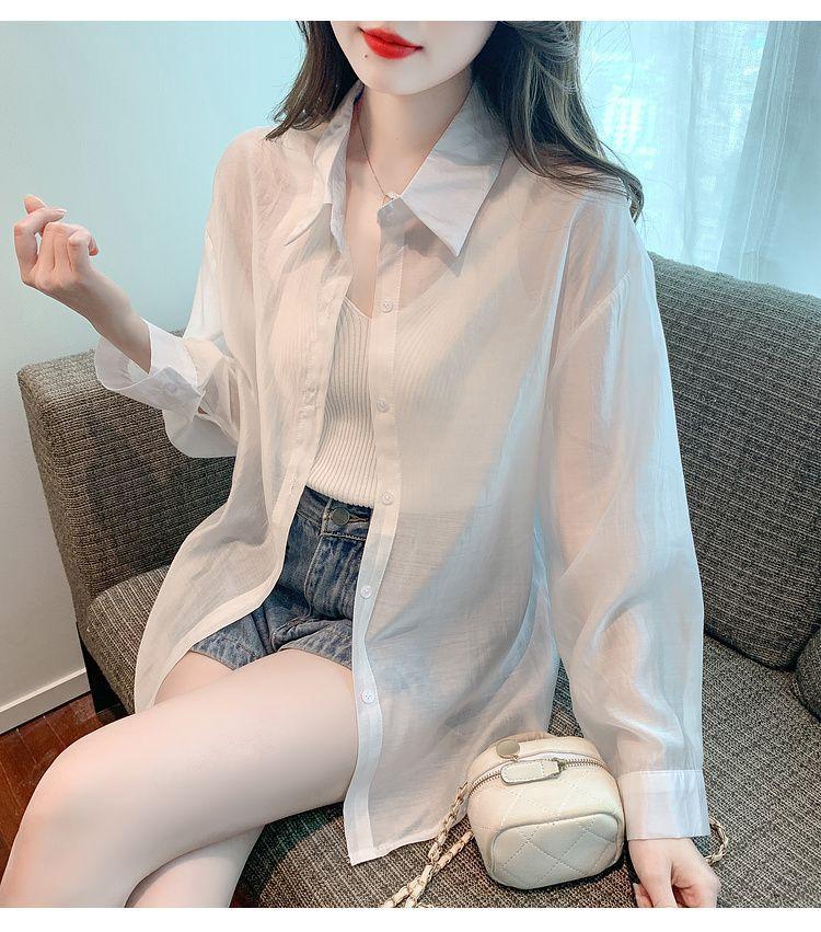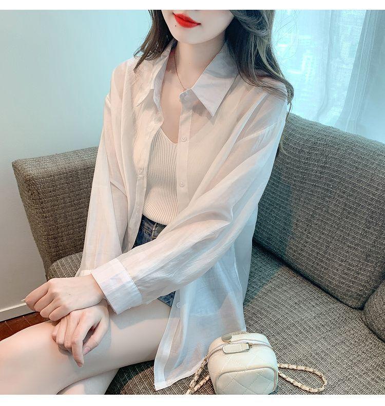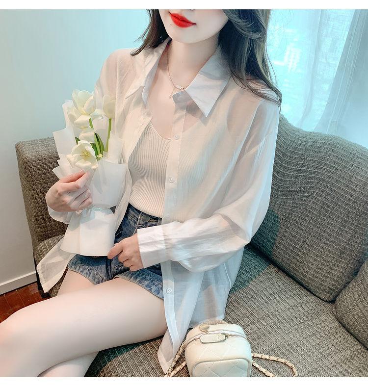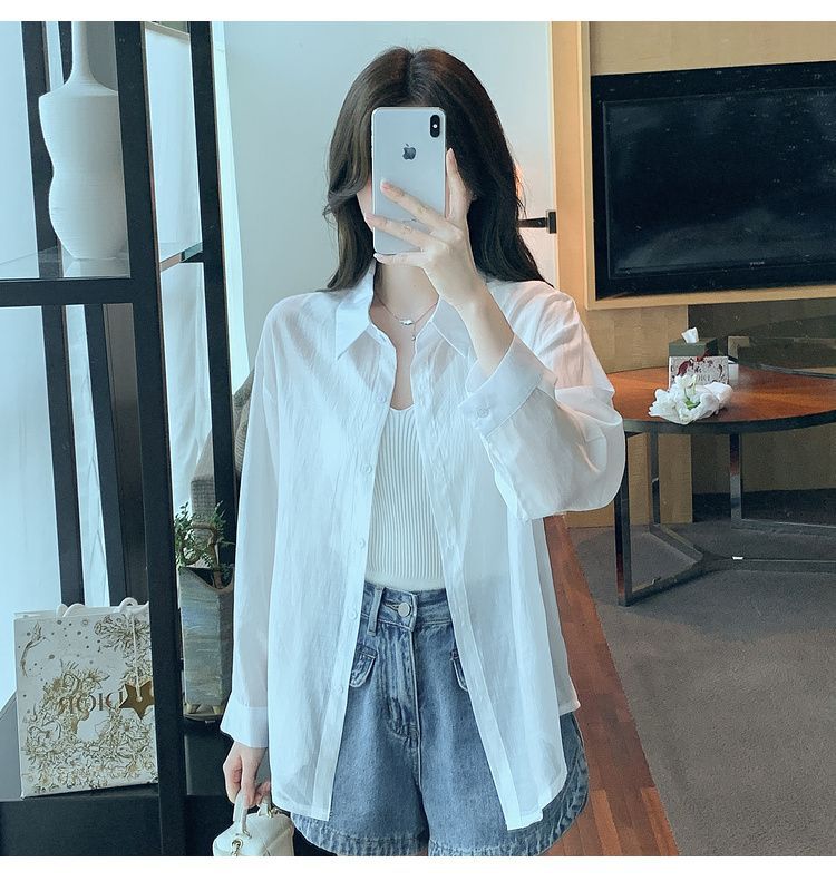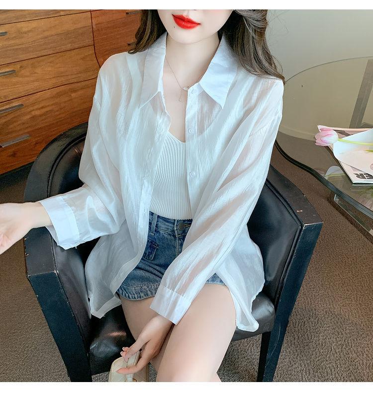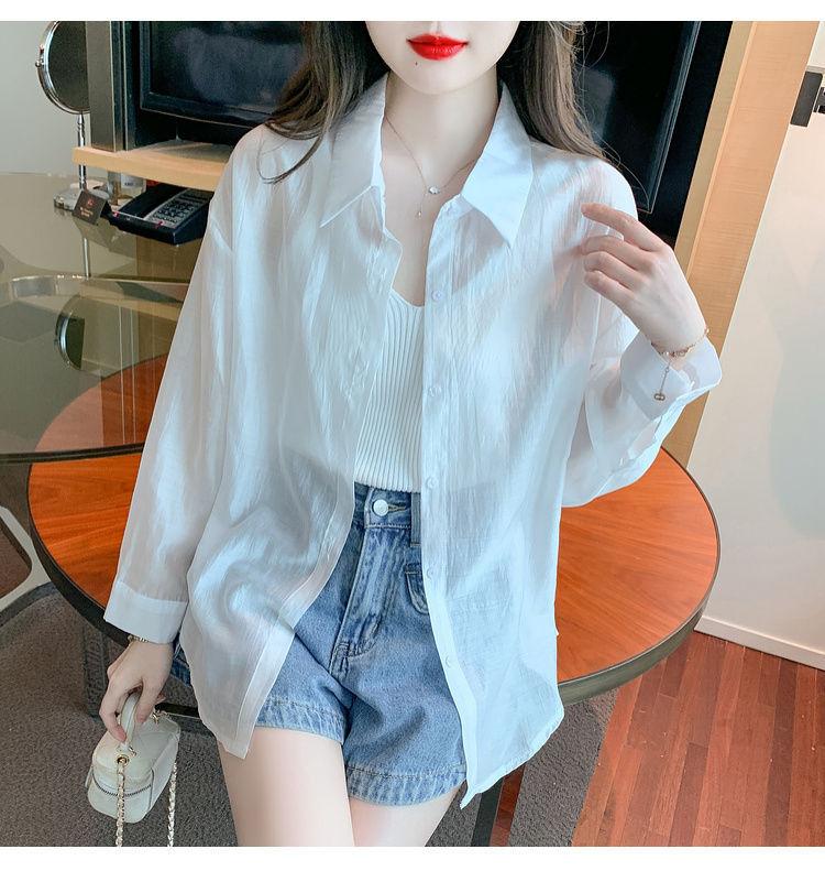Camisa de Verano Nueva Fina Protectora Solar de Manga Larga para Mujer, Camisa Versátil de Exterior con Cuello Polo para Viajeros, Chaqueta Camisa para Aire Acondicionado a la Moda