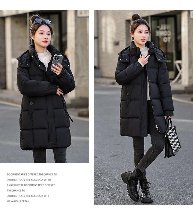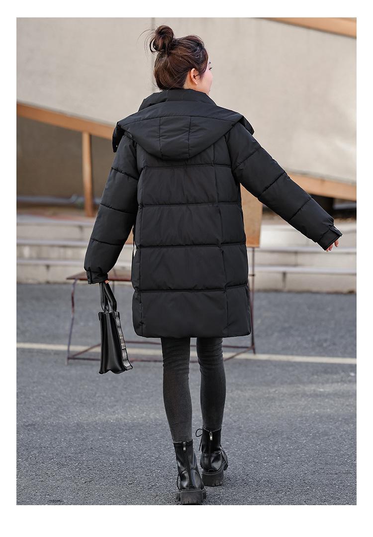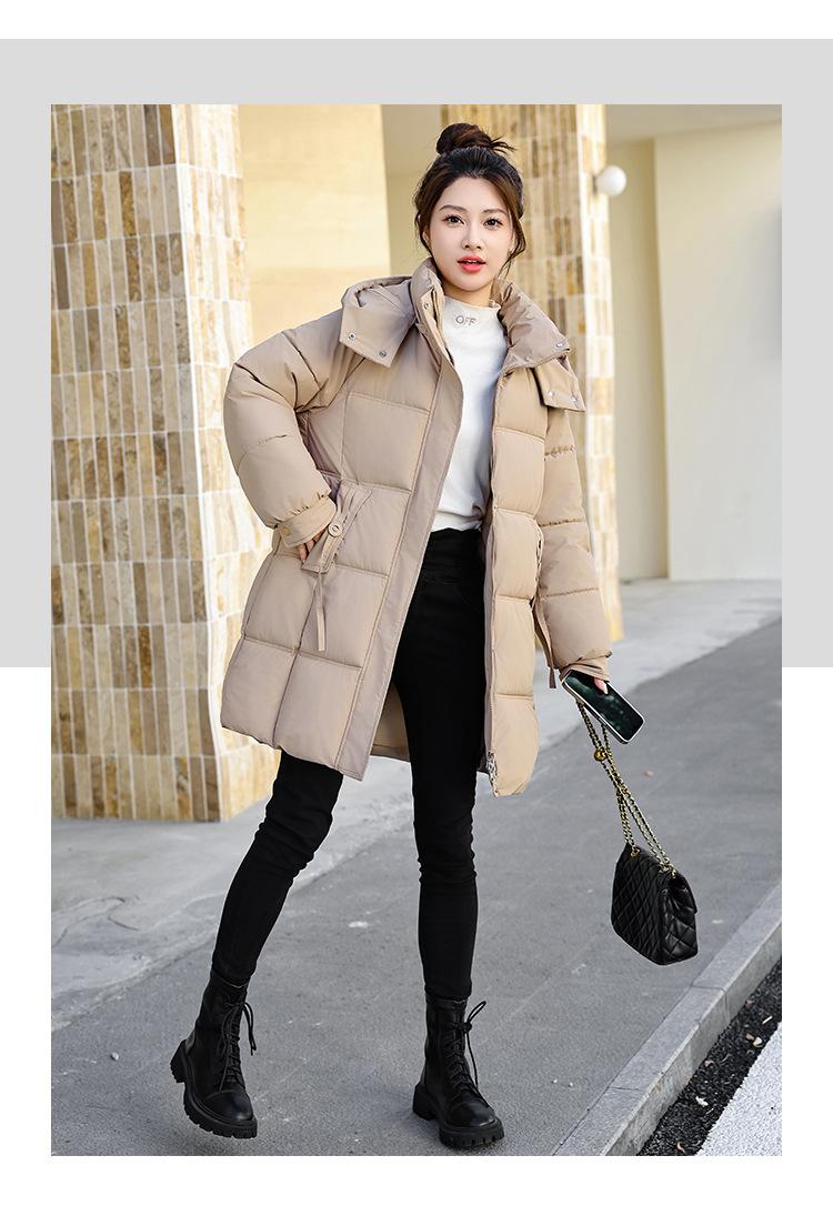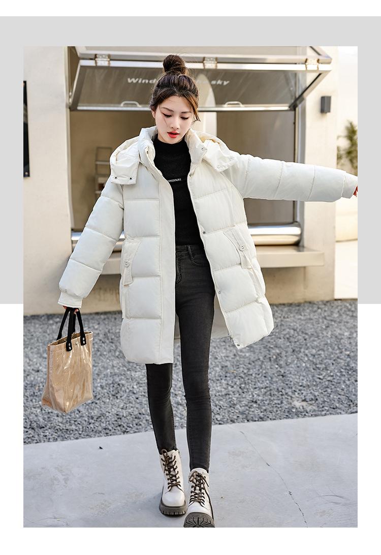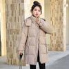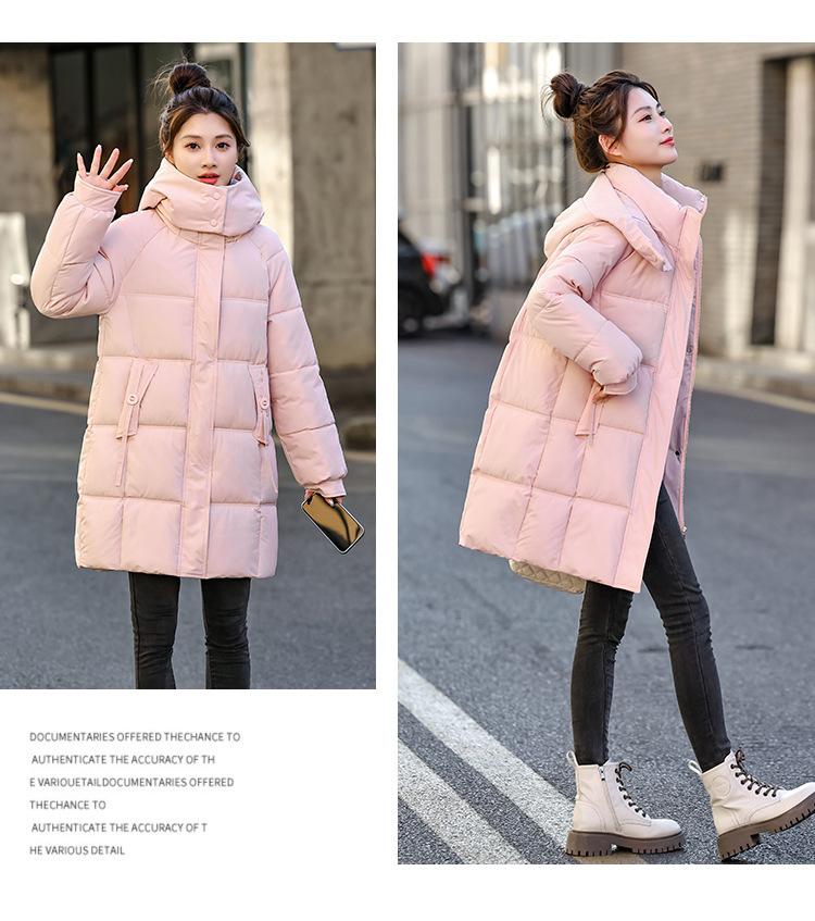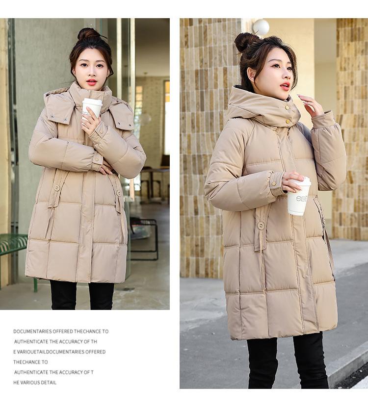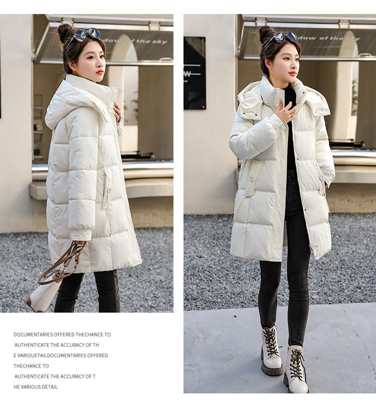 Abrigo de algodón plumón invierno nuevo abrigo de algodón para mujer largo medio moda cálido estilo coreano suelto grueso con capucha chaqueta de algodón