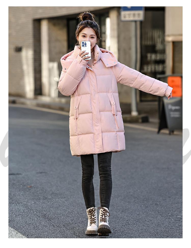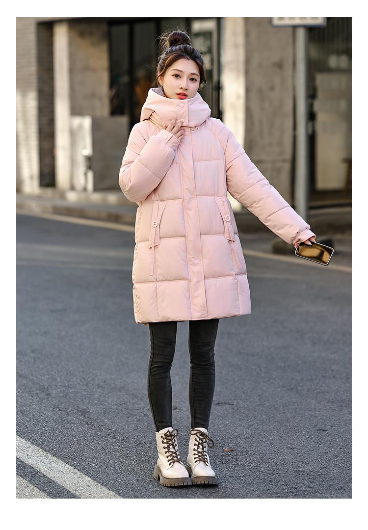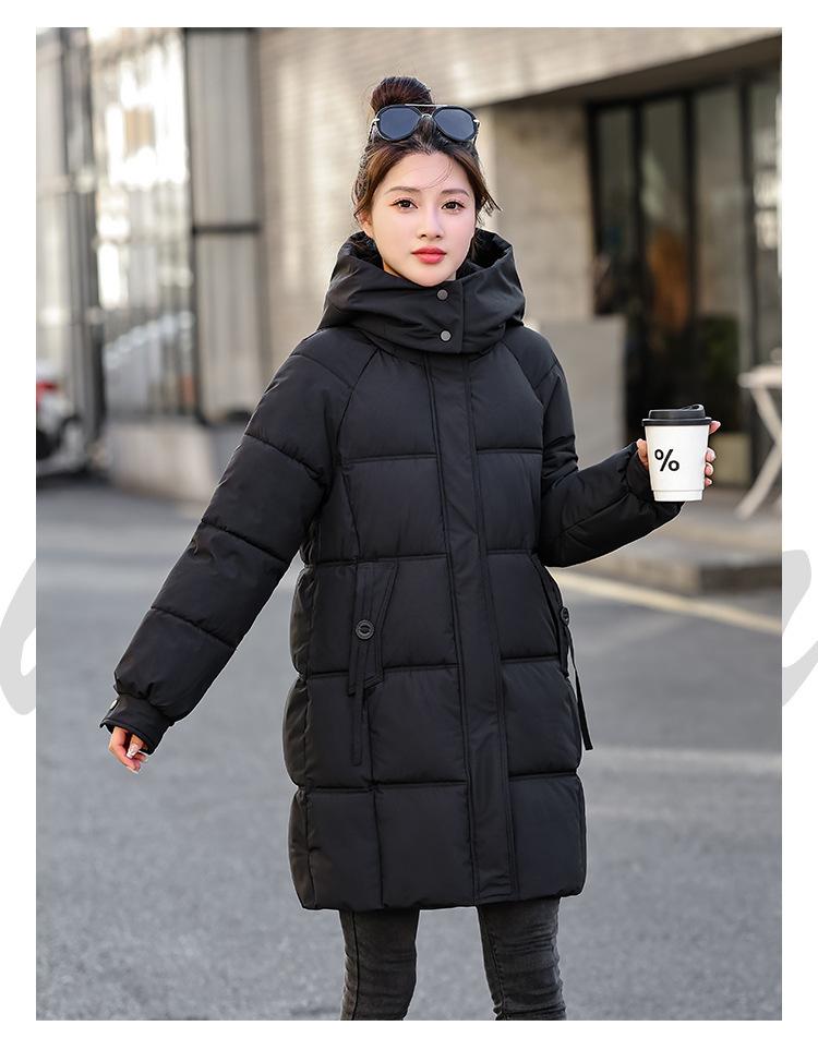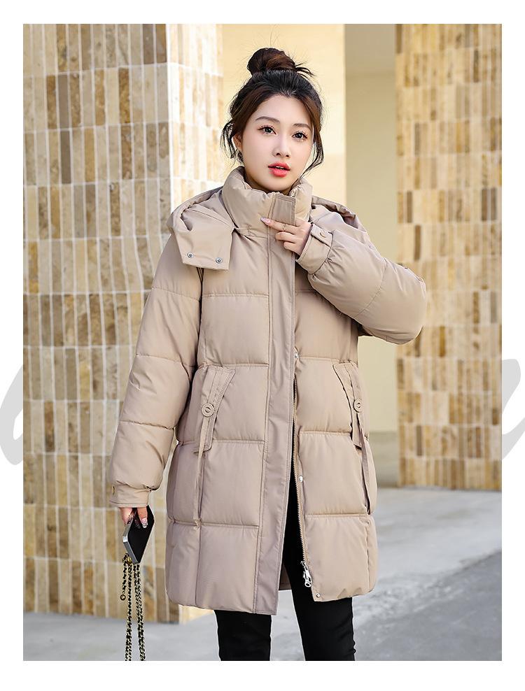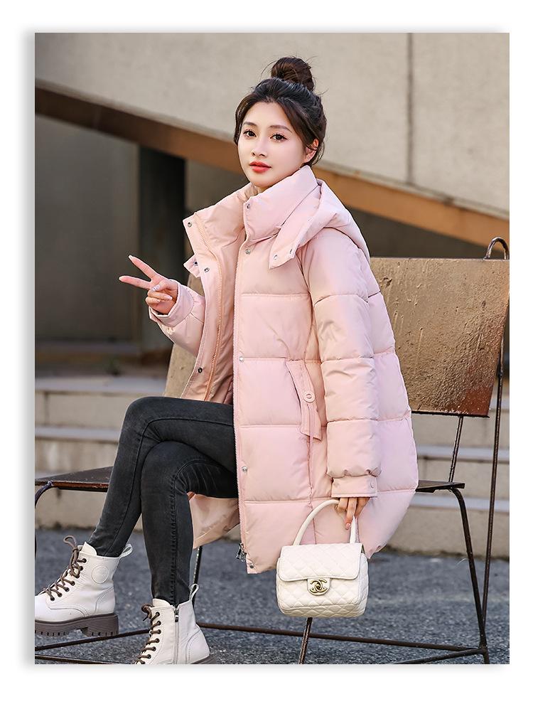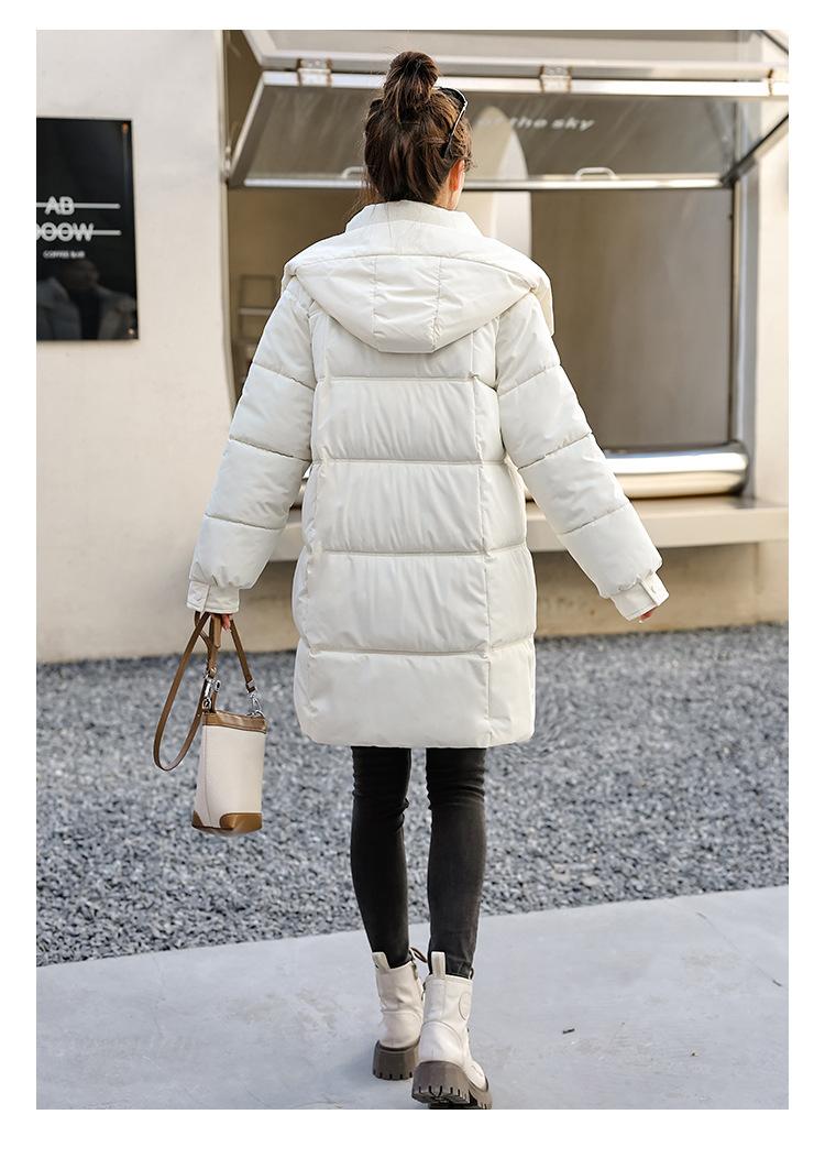 Abrigo de algodón plumón invierno nuevo abrigo de algodón para mujer largo medio moda cálido estilo coreano suelto grueso con capucha chaqueta de algodón