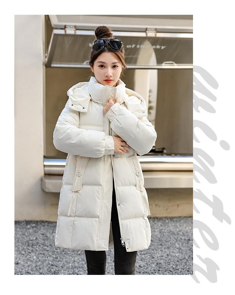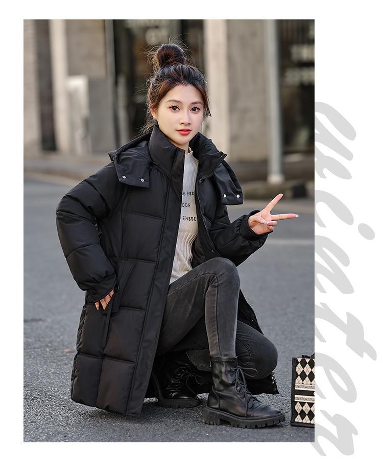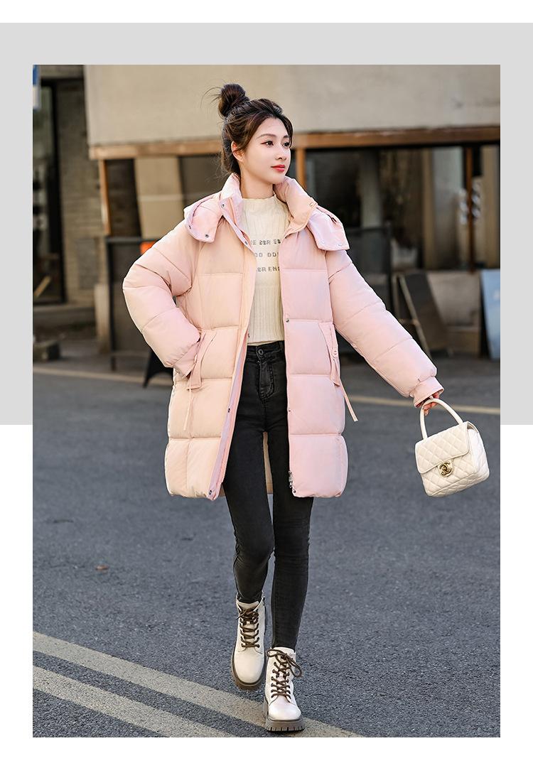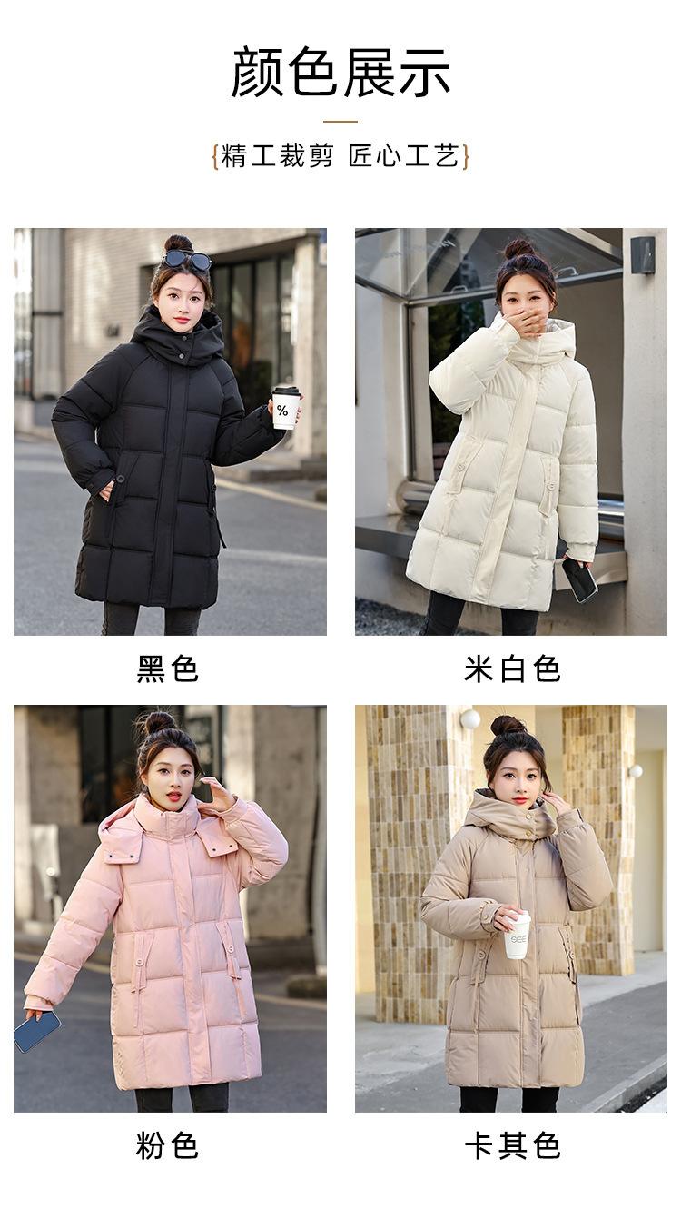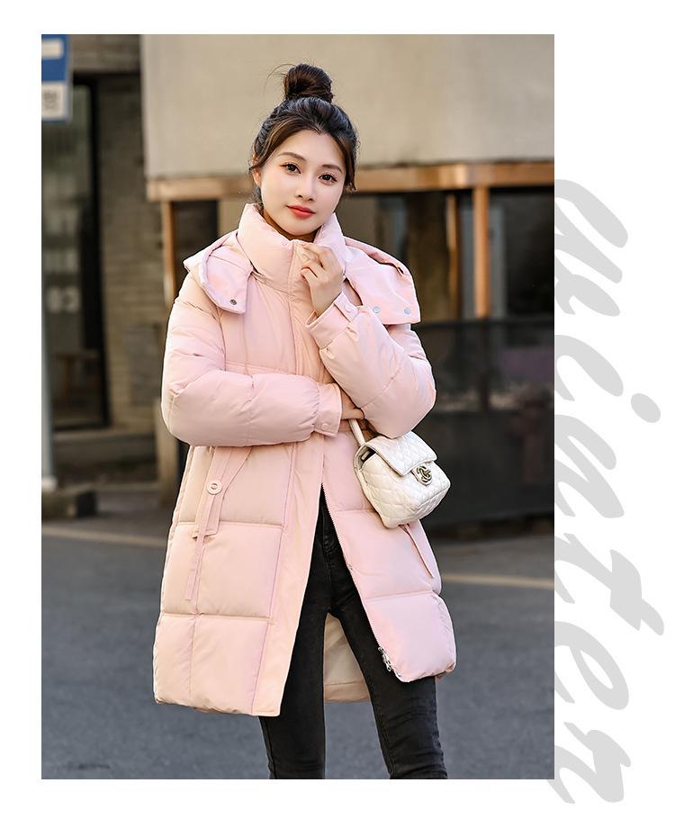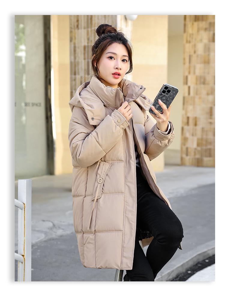 Abrigo de algodón plumón invierno nuevo abrigo de algodón para mujer largo medio moda cálido estilo coreano suelto grueso con capucha chaqueta de algodón