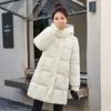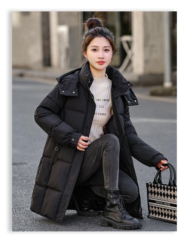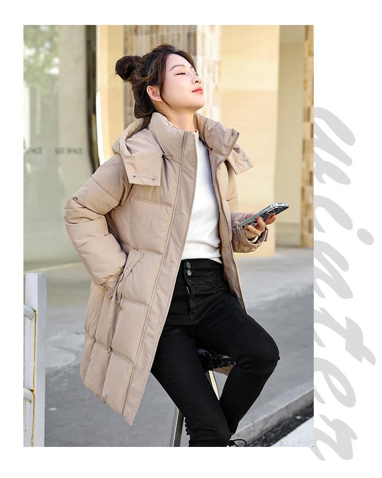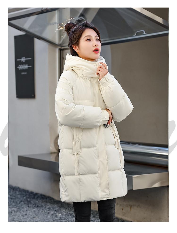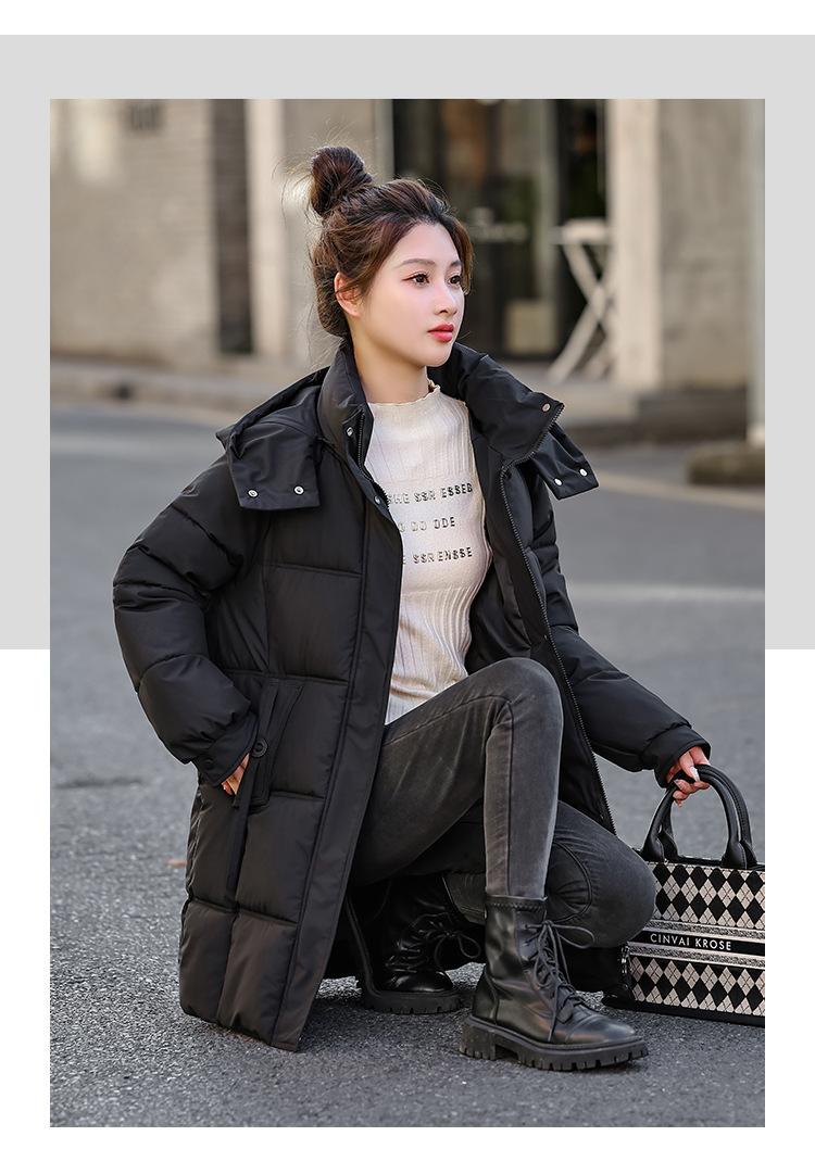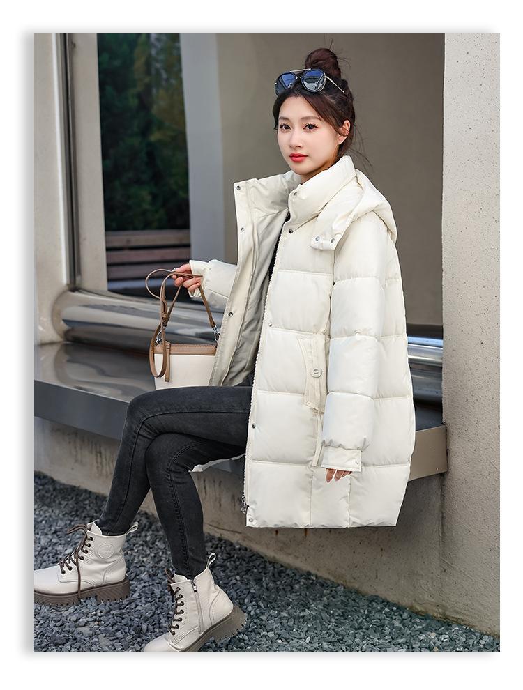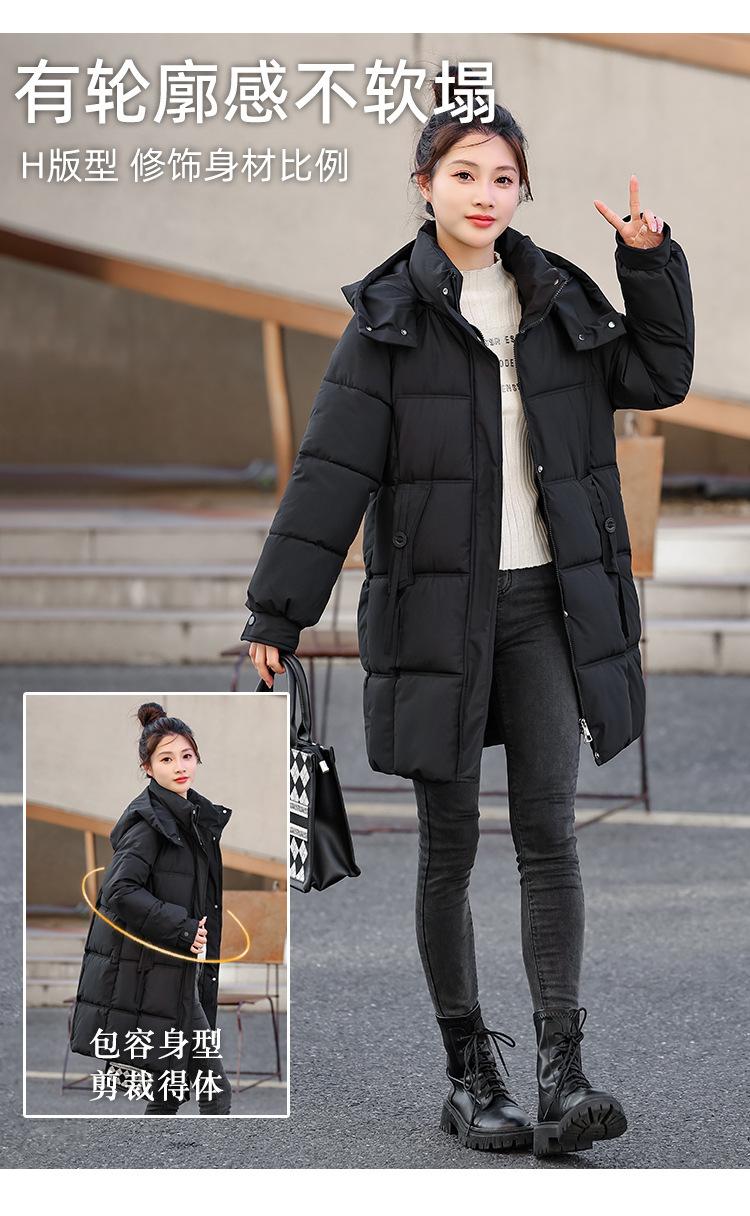 Abrigo de algodón plumón invierno nuevo abrigo de algodón para mujer largo medio moda cálido estilo coreano suelto grueso con capucha chaqueta de algodón