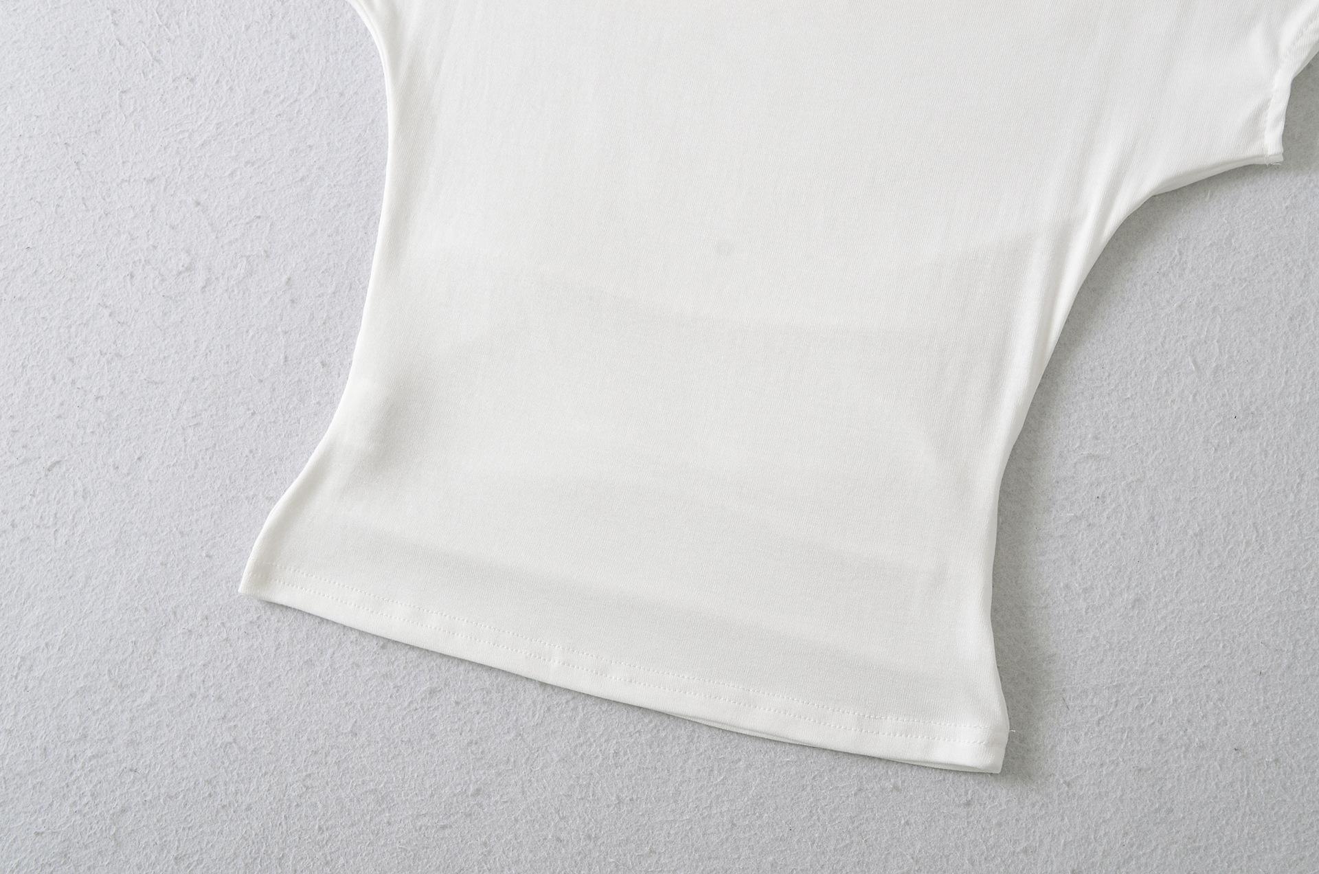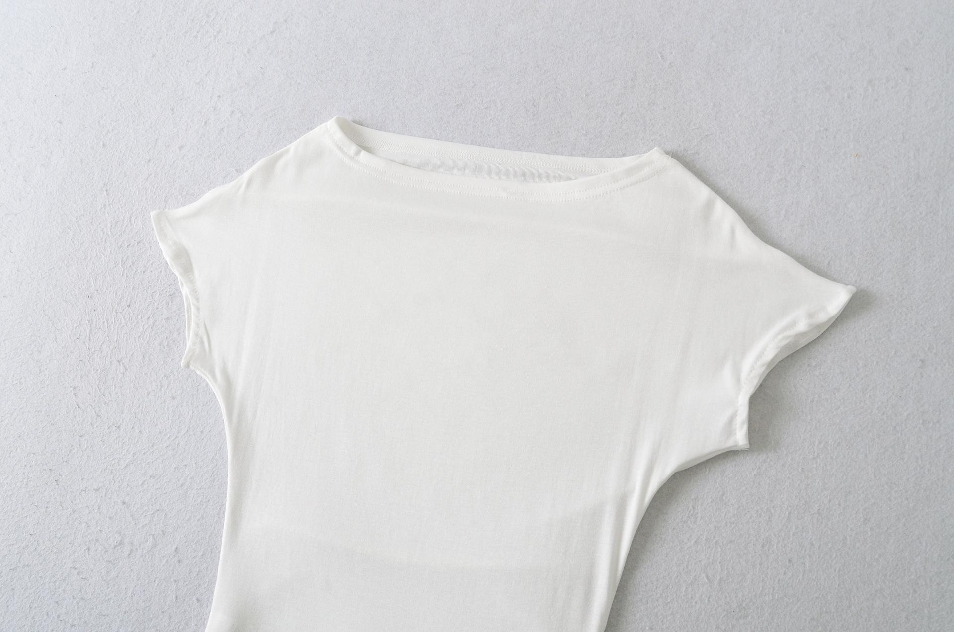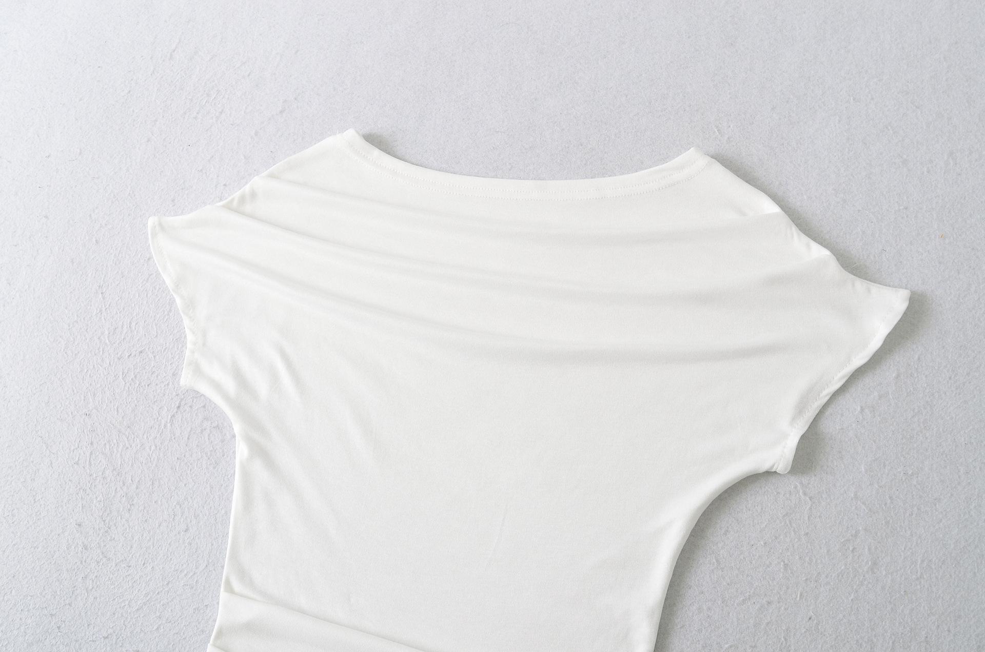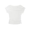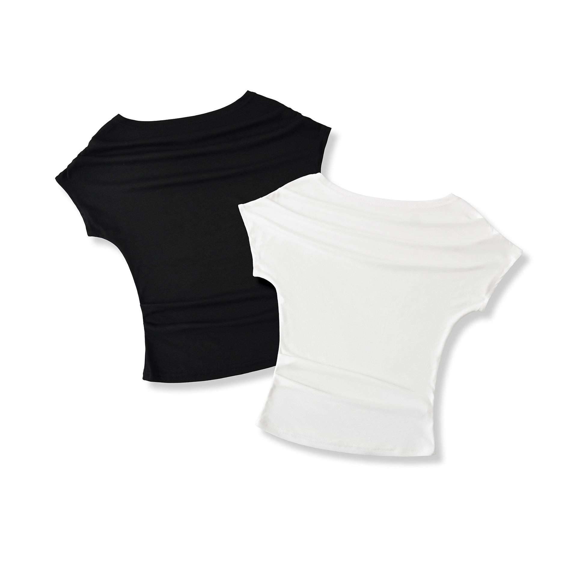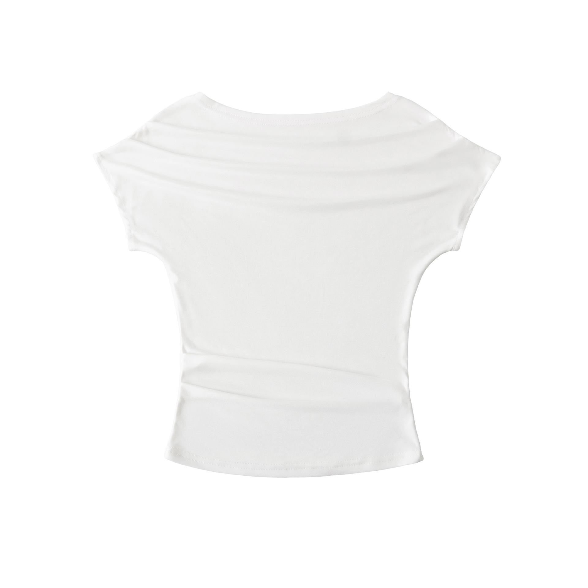 Playera de Estilo Holgazán con Hombro Caído y Cintura Ajustada de Manga Corta para Mujer 2025 Verano Nuevo Aspecto Adelgazante Cuello de una Línea Top Corto