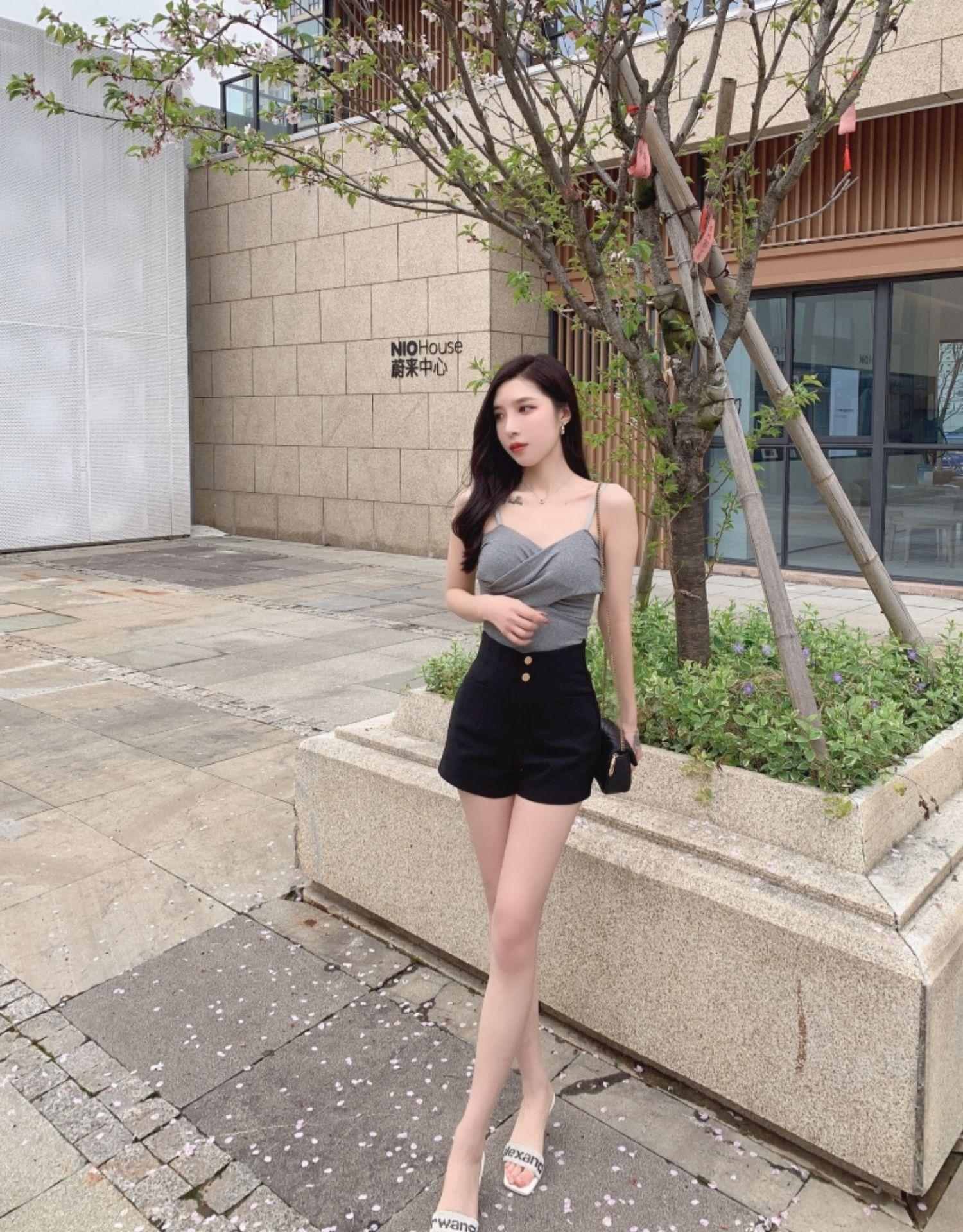 Verano Cintura Alta Negro Adelgazante Versátil A-Line Traje Ropa Exterior Pantalones Cortos Calientes 2025 Nuevo Ropa Exterior Shorts Elásticos Mujer