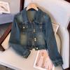 Chaqueta de Trabajo Nueva de Personalidad Estilo Coreano Primavera y Otoño 2025 Top Suelto Petite Moda Chaqueta Corta de Mezclilla para Mujer