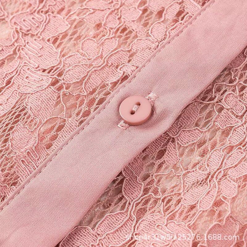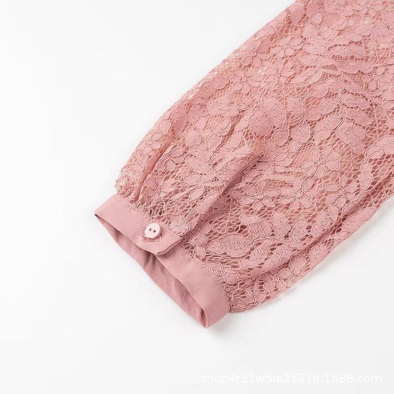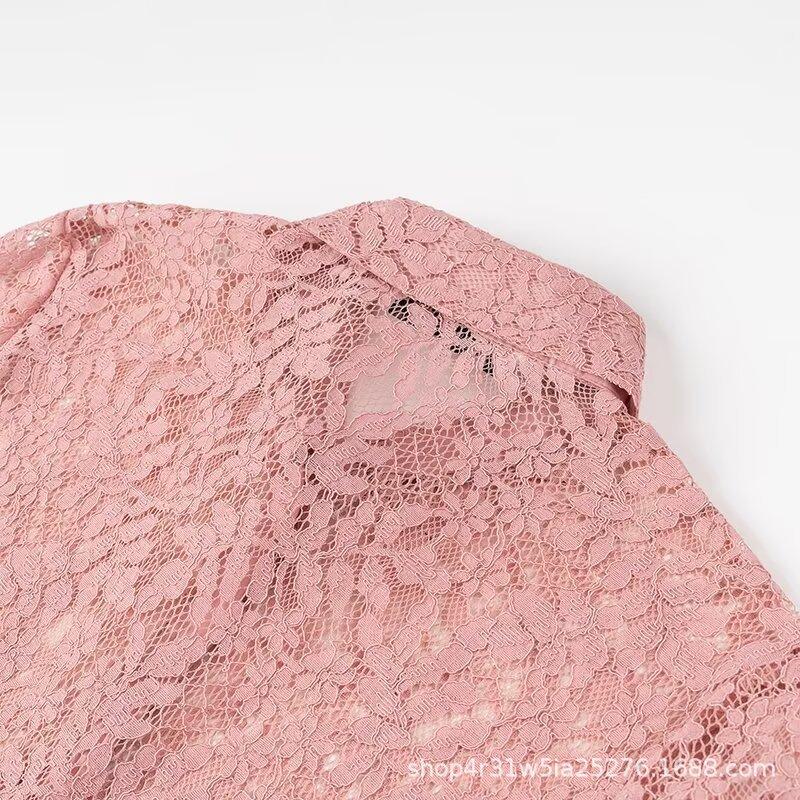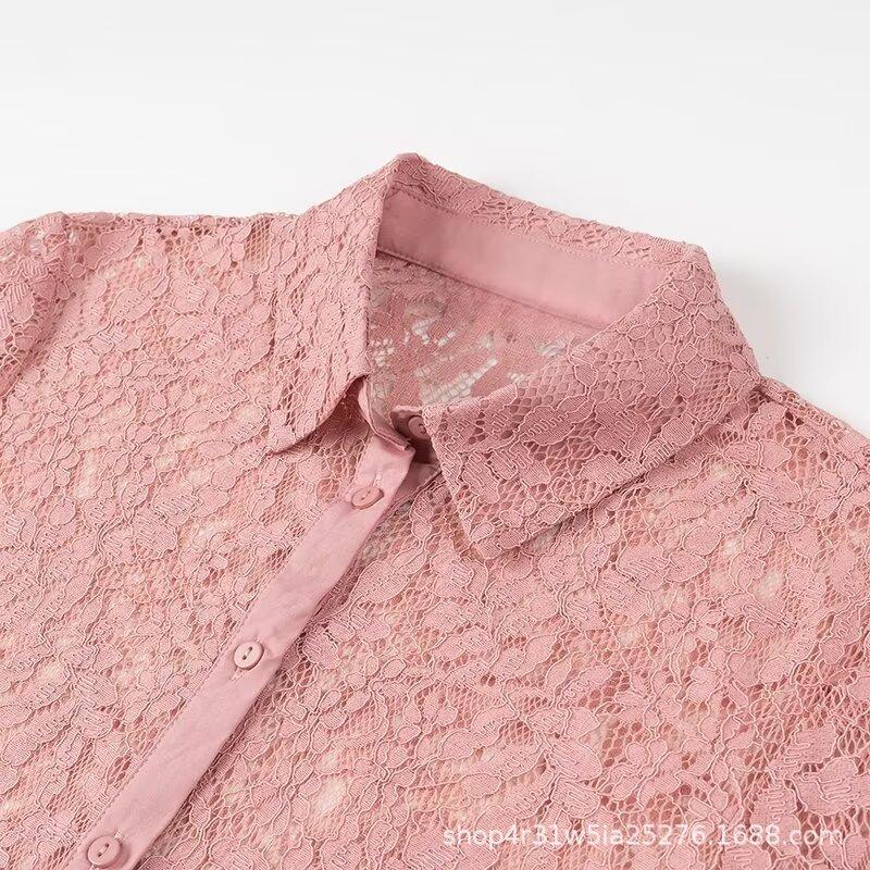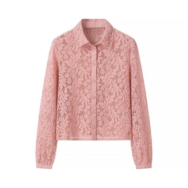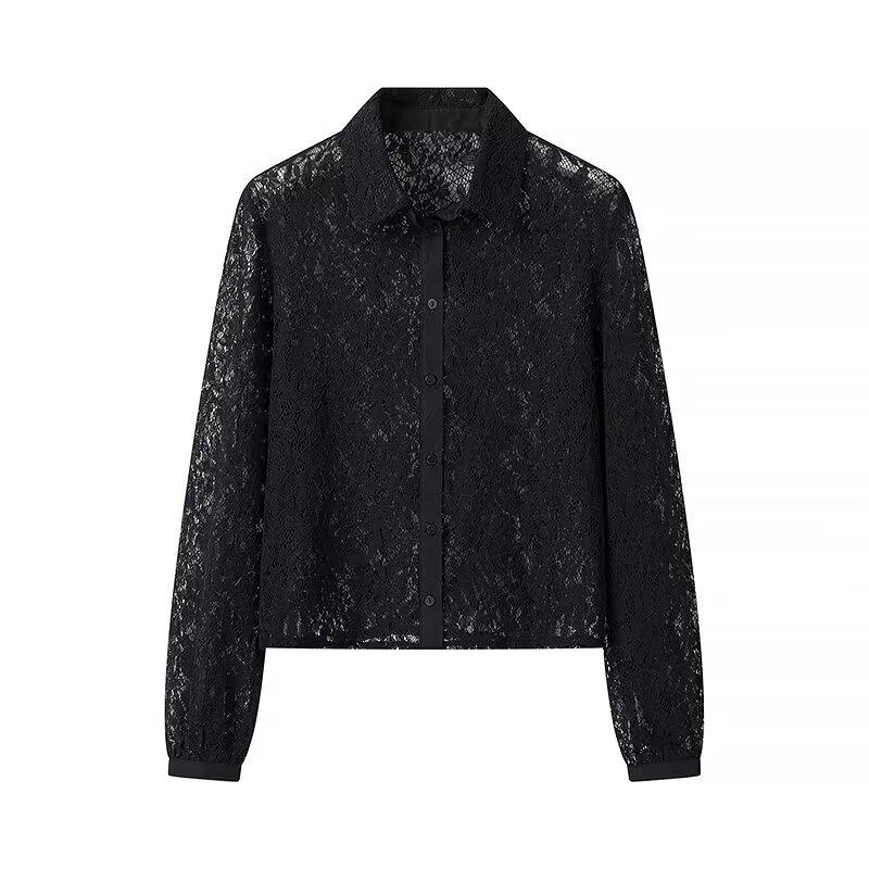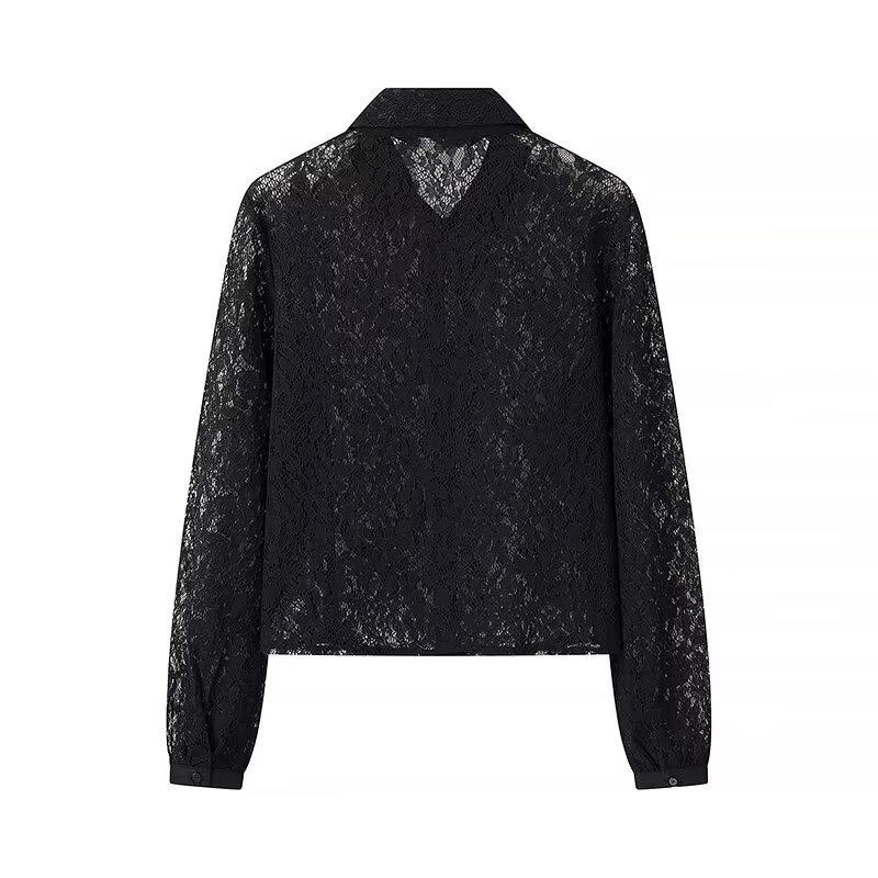 Ropa de Otoño para Mujer Nueva Europea y Americana 2024 Moda Simple Versátil Elegante Solapa Manga Larga Camisa de Encaje