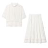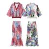 Estilo europeo y americano Amazon AliExpress más vendido tendencia de moda versátil color metálico estampado de líneas camisa conjunto falda media