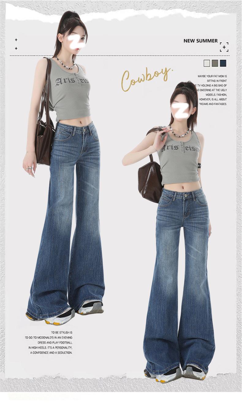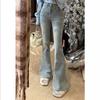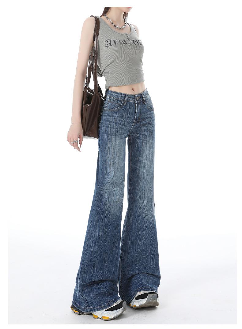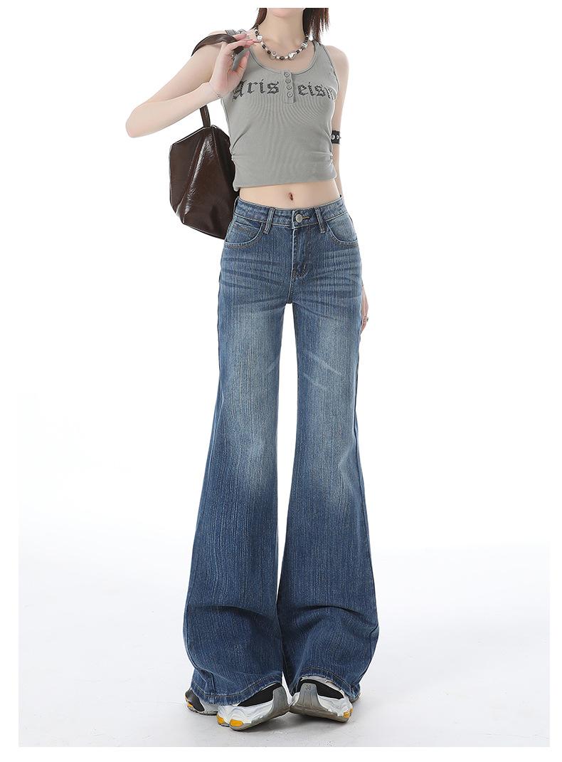 Jeans acampanados micro acampanados azules retro americanos para mujer otoño e invierno 2025 nuevos de cintura alta adelgazantes para dama pantalones acampanados de pierna ancha