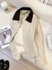 Chaqueta Corta Beige de Contraste de Color con Solapa Estilo Casual Elegante Nuevo de Primavera 2025 para Mujer Top de Moda Combinable