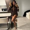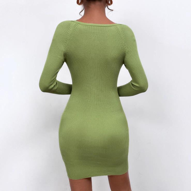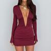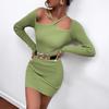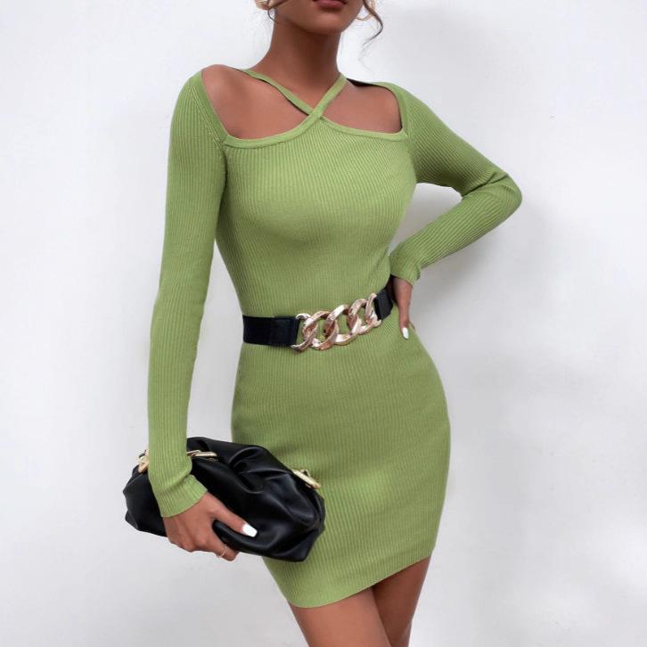 2025 Ropa Nueva Transfronteriza Europea y Americana para Mujer Amazon Color Sólido Sexy Halter Manga Larga Ajustado Vestido de Punto para Mujer