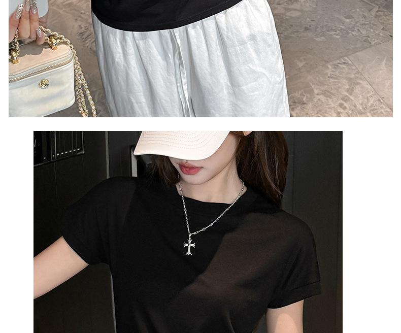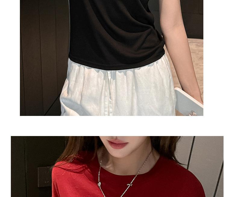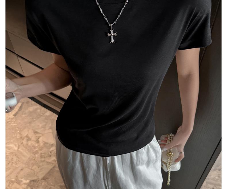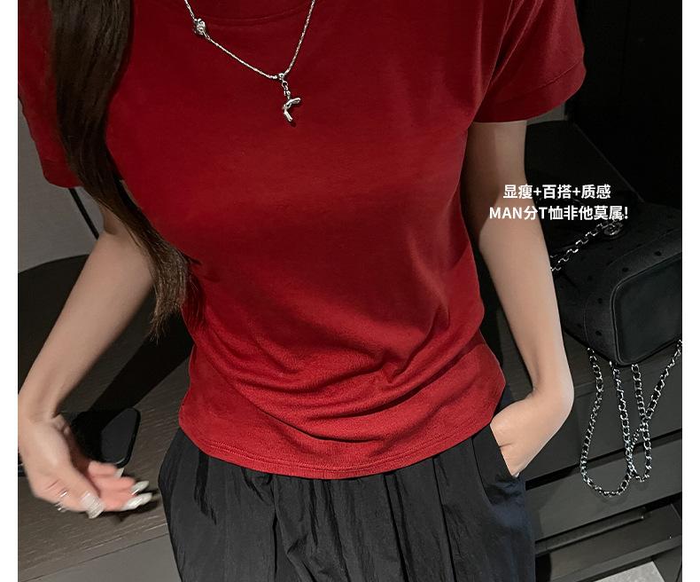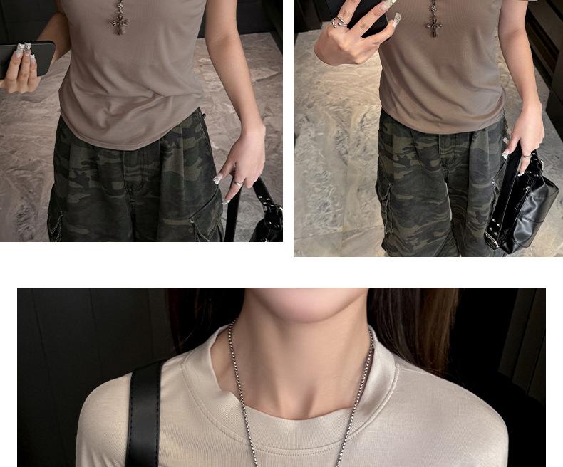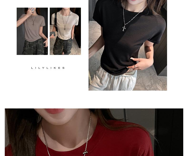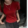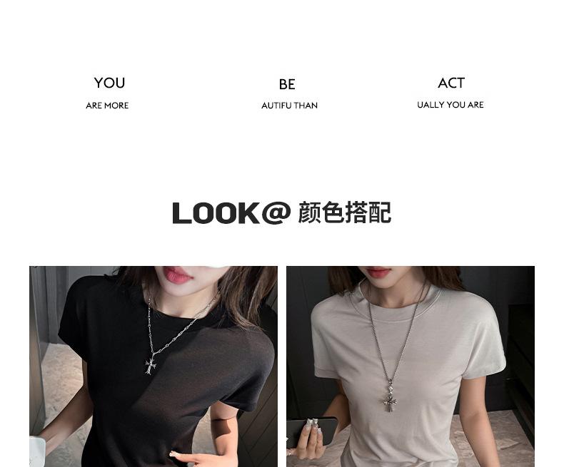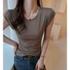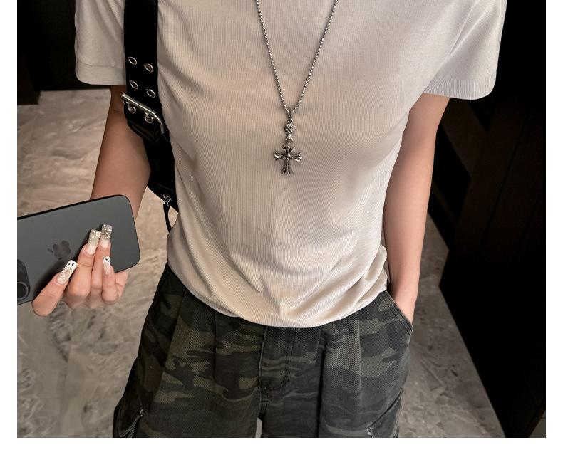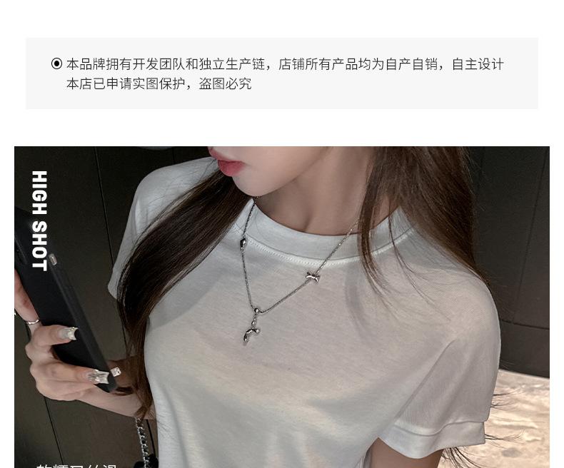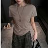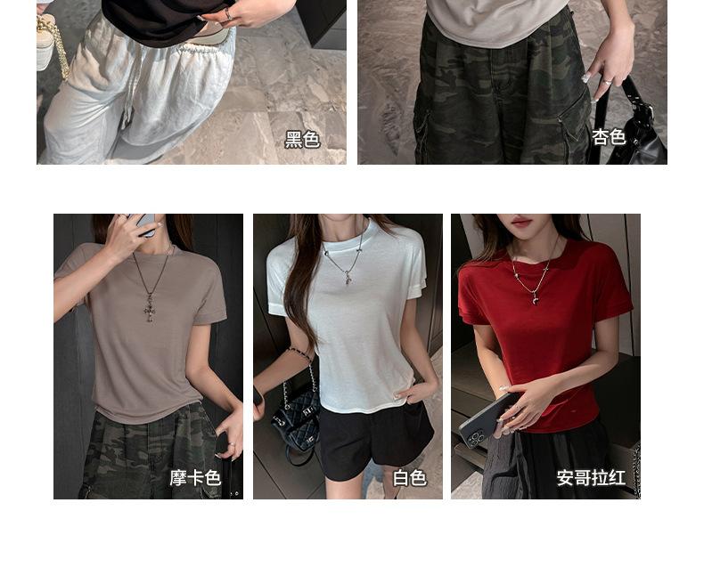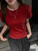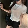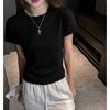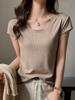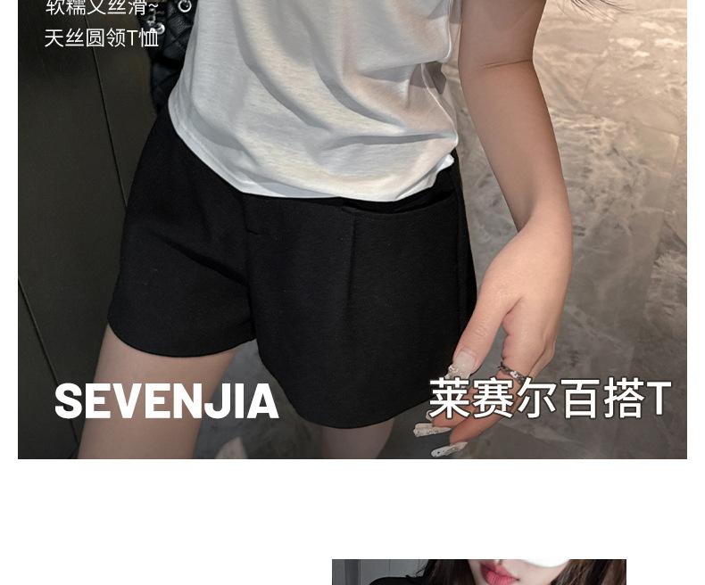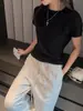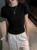 Playera Blanca de Manga Corta para Mujer Verano Hombro Recto Lyocell Tencel Ajuste Delgado Versátil Delgada de Alta Gama Top Chica Picante