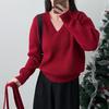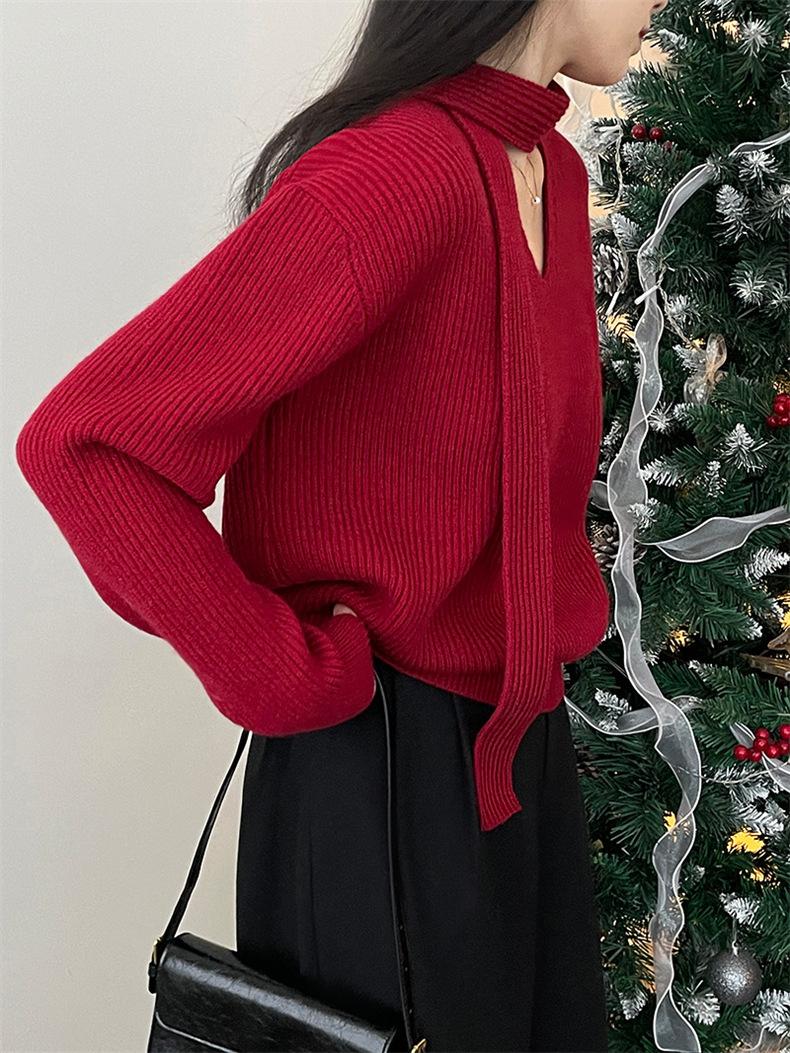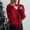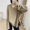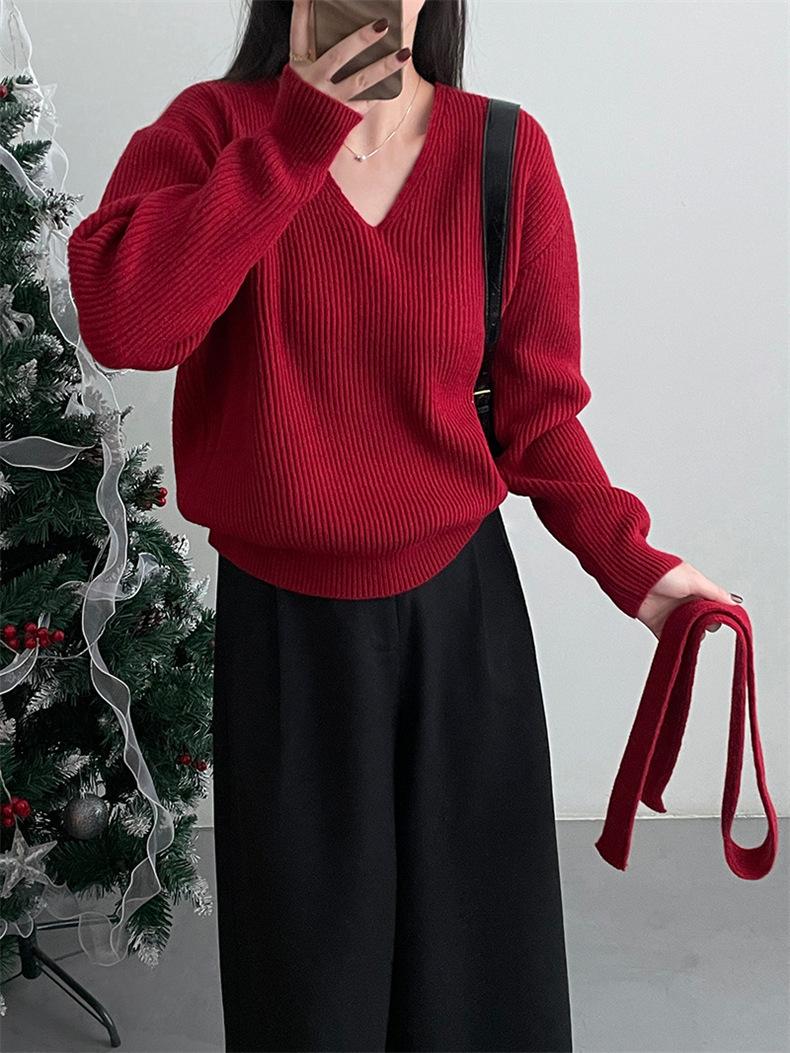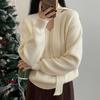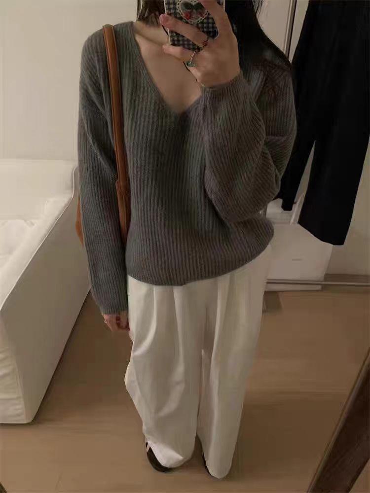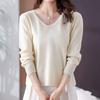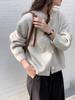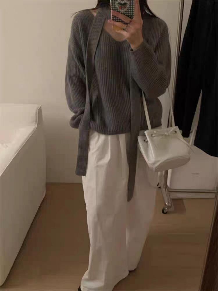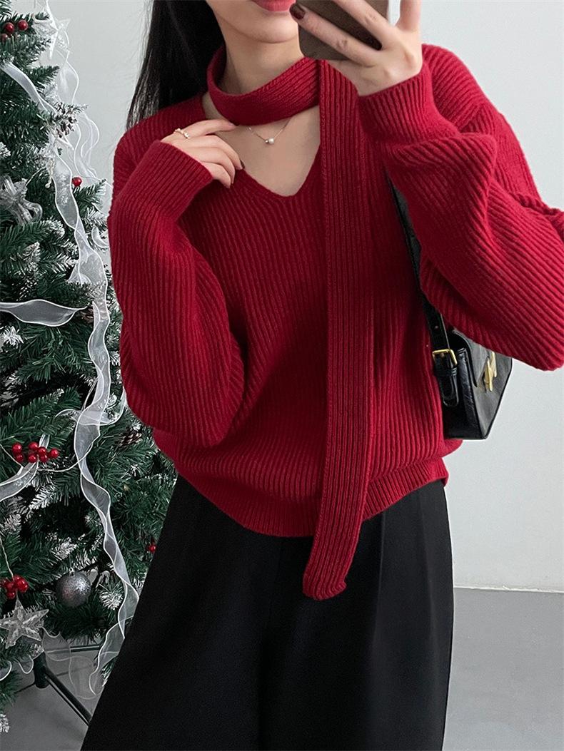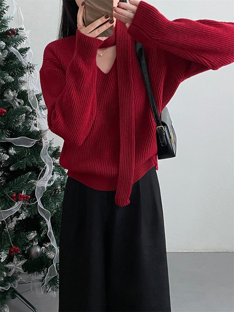 Suéter Abrigo de Punto para Mujer de Manga Larga Estilo Coreano Ins Otoño e Invierno Color Sólido Simple Temperamento Suave Cuello en V Bufanda