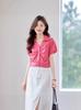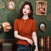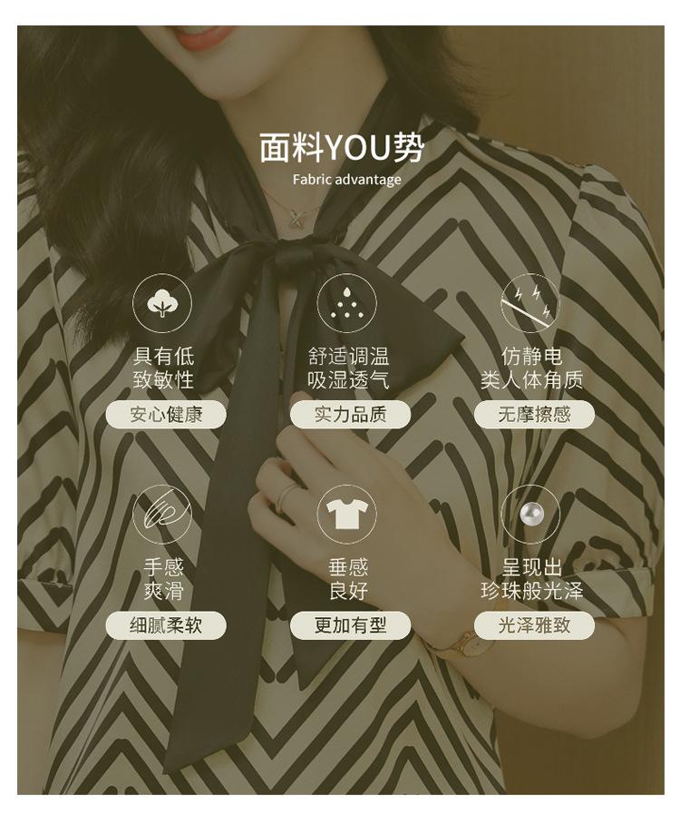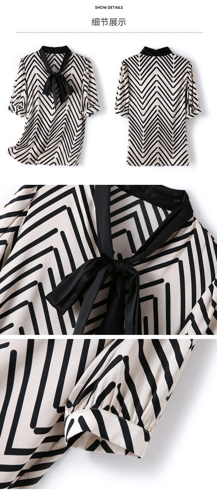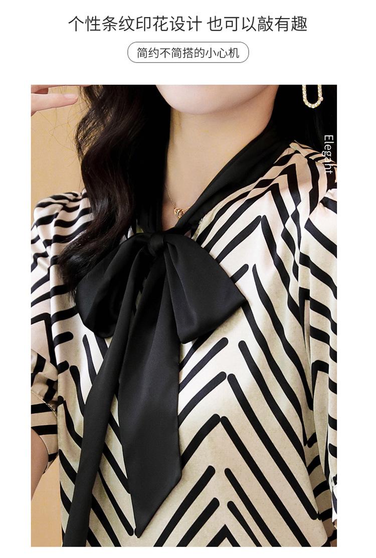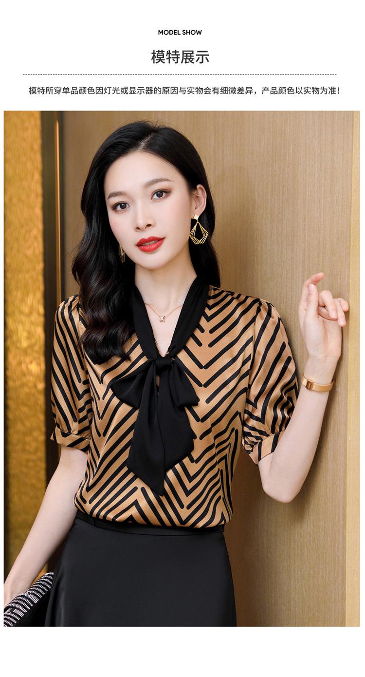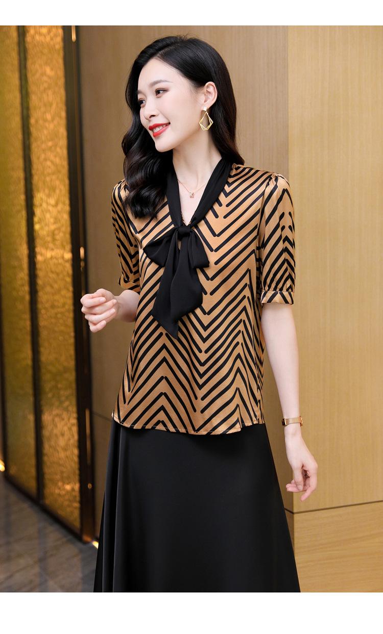 Camisa de Seda de Manga Corta con Lazo de Nuevo Estilo para Primavera y Verano, Elegante Camisa Rayada para Mujer, Top Sencillo y Elegante