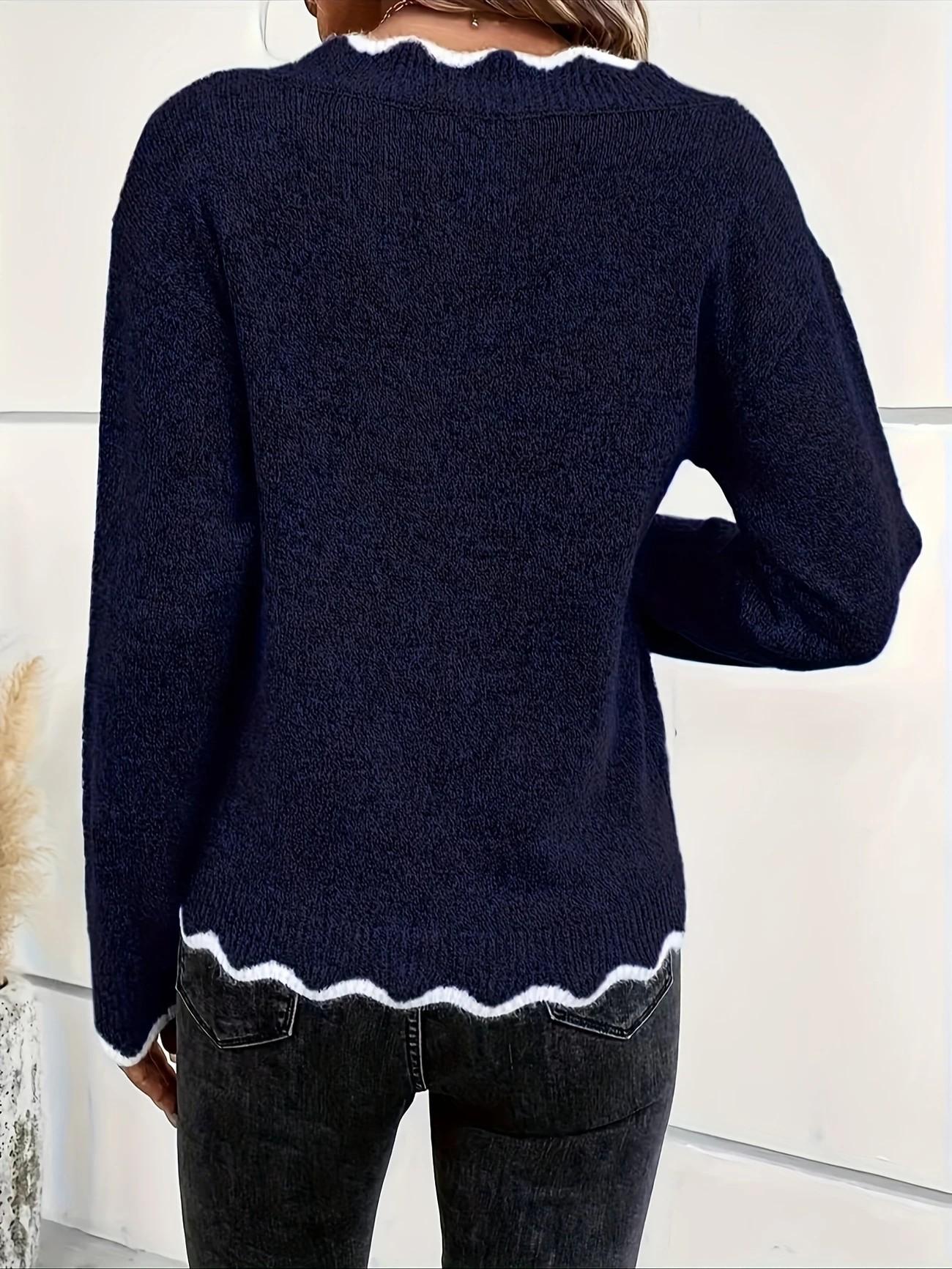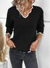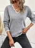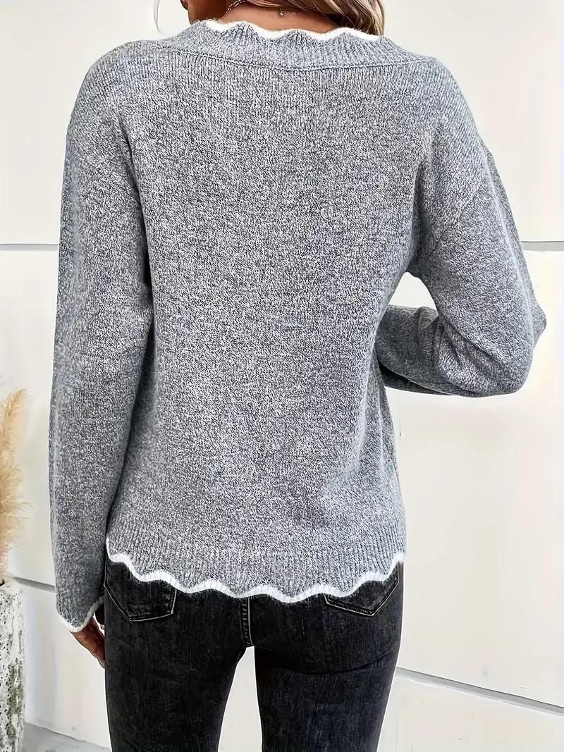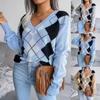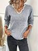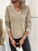 Suéter de Punto de Manga Larga con Cuello en V de Color Sólido Exclusivo Transfronterizo Europeo y Americano, Nuevo Estilo de Otoño e Invierno, Suéter Pulóver Elegante y Holgado para Mujer