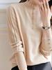 Moda Femenina Primavera y Otoño 2025 Suéter de Punto con Adorno de Encaje Casual Versátil Manga Larga Básico Moda Tendencia Estiloso Top