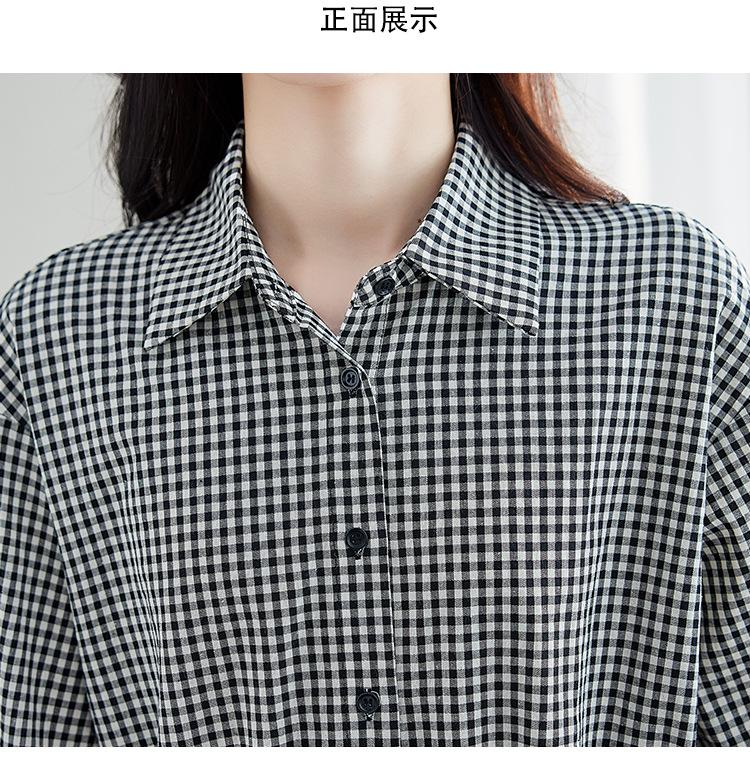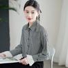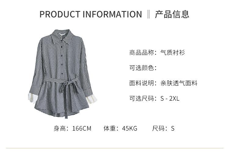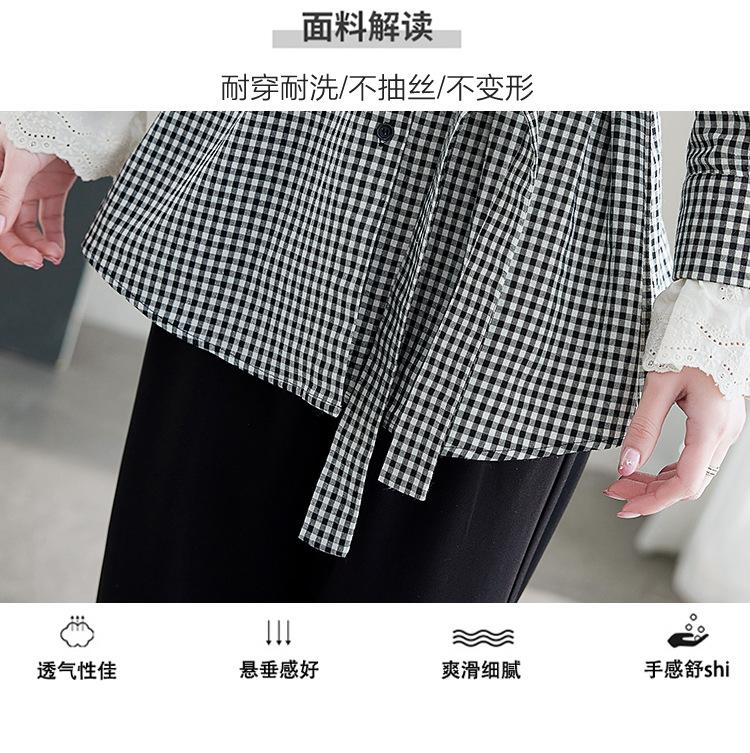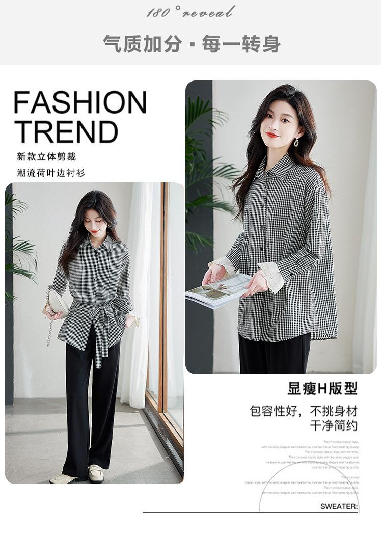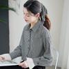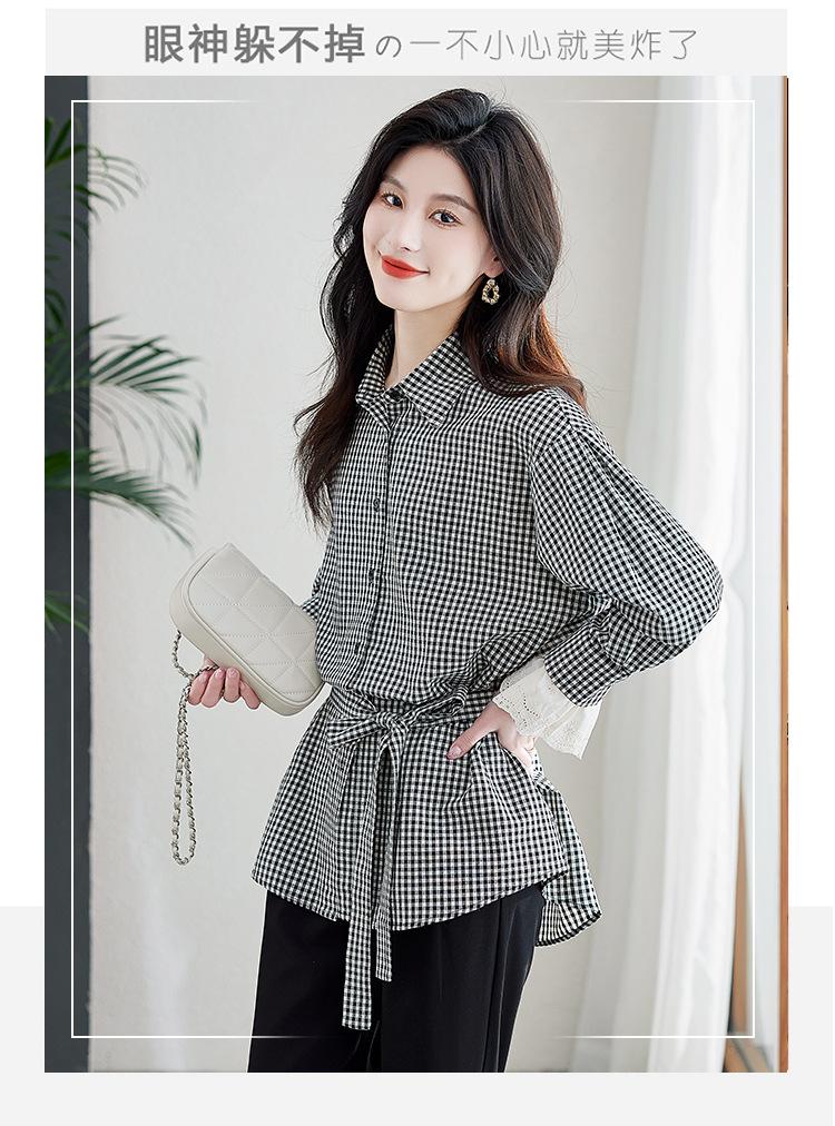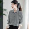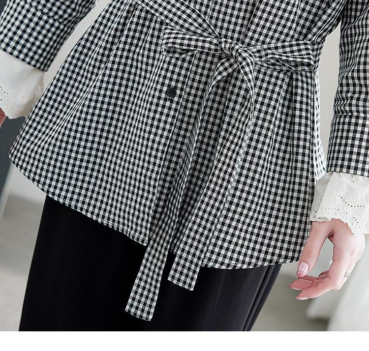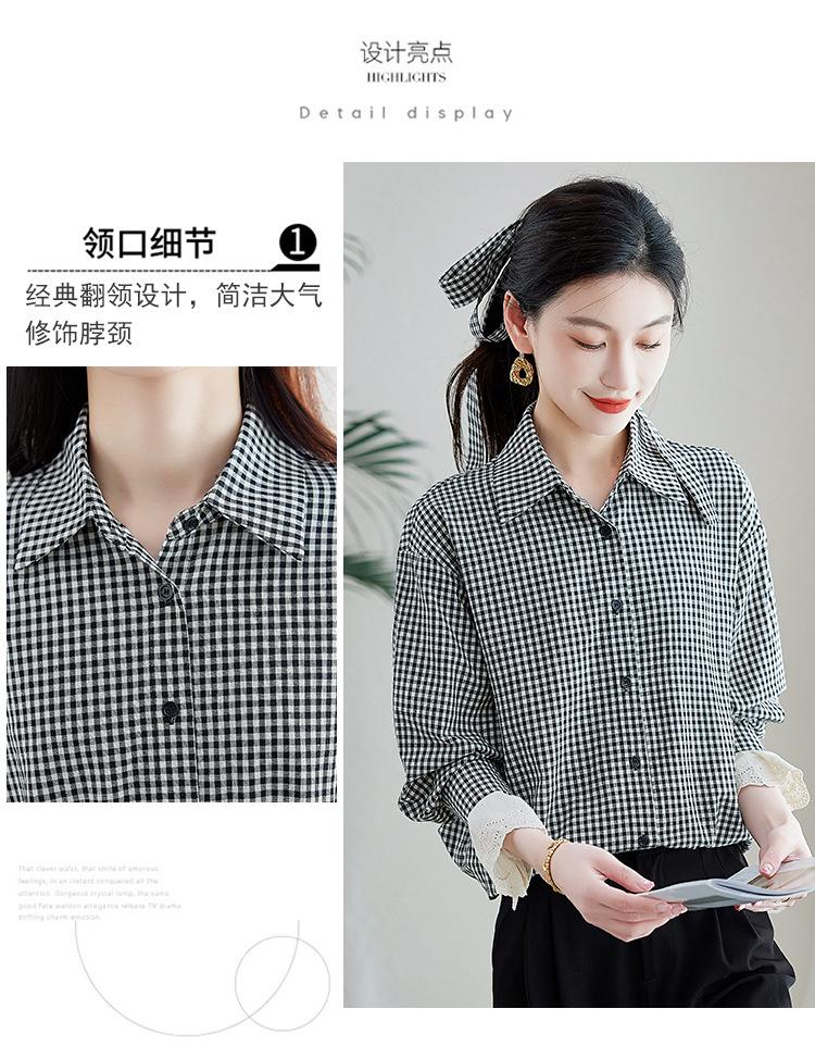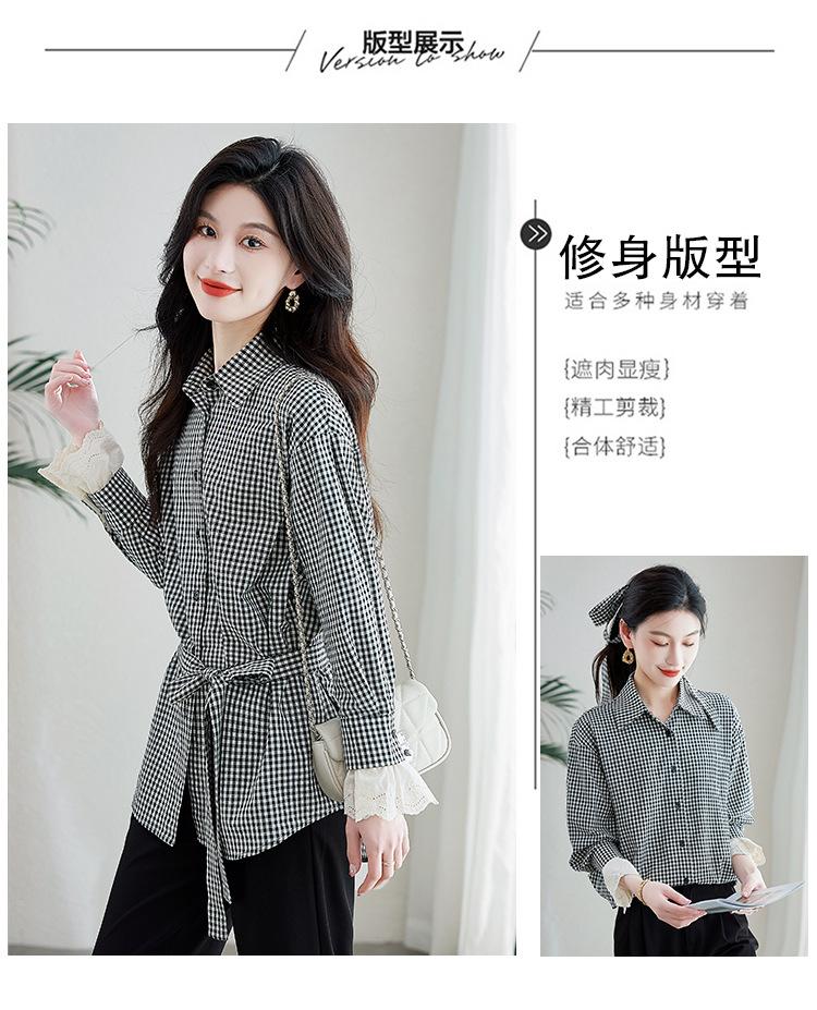 Puño Encaje Costuras Cuadros Elegante Camisa Personalizada para Mujer Primavera y Otoño Nuevo Diseño Holgado Nicho Camisa de Manga Larga