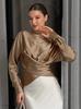 Top de Satén de Diseño Francés con Cuello Redondo para Mujer Otoño 2025 Elegante Simple Camiseta Pulóver Básica Exportación Ropa de Mujer