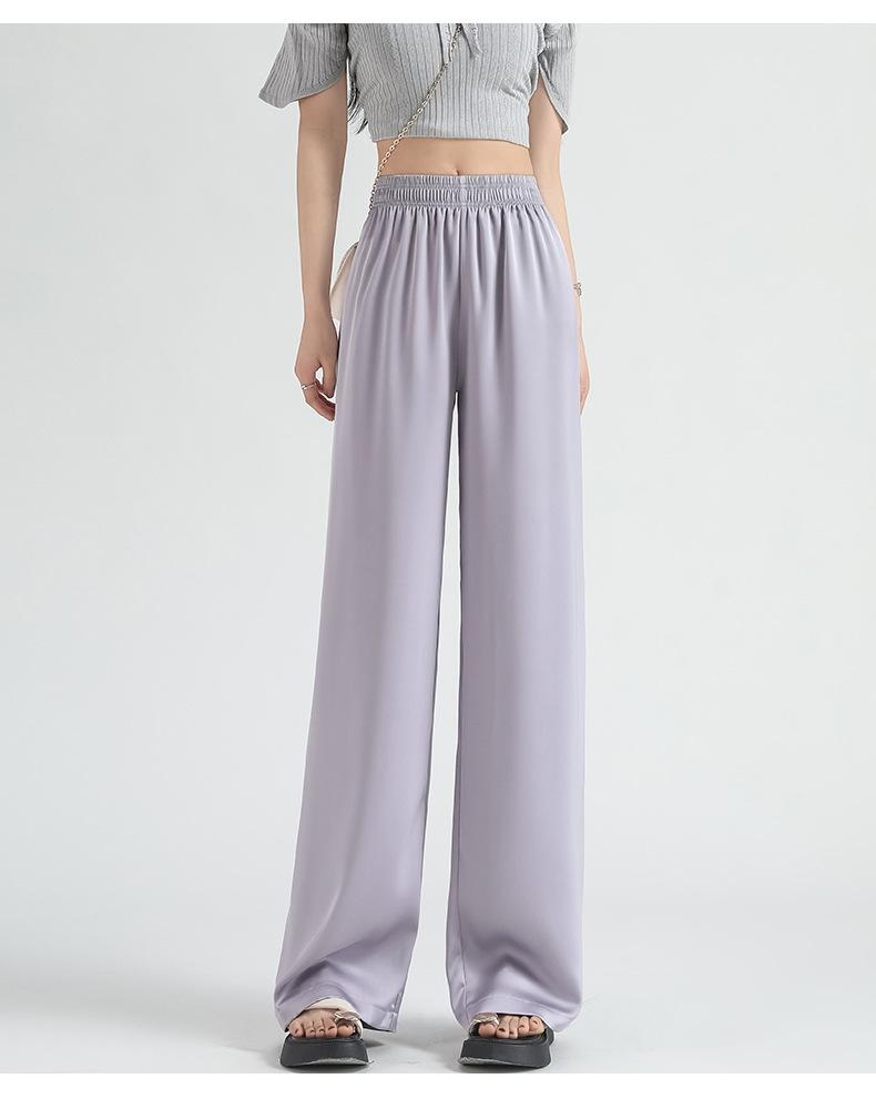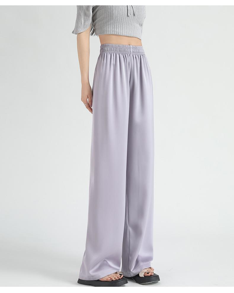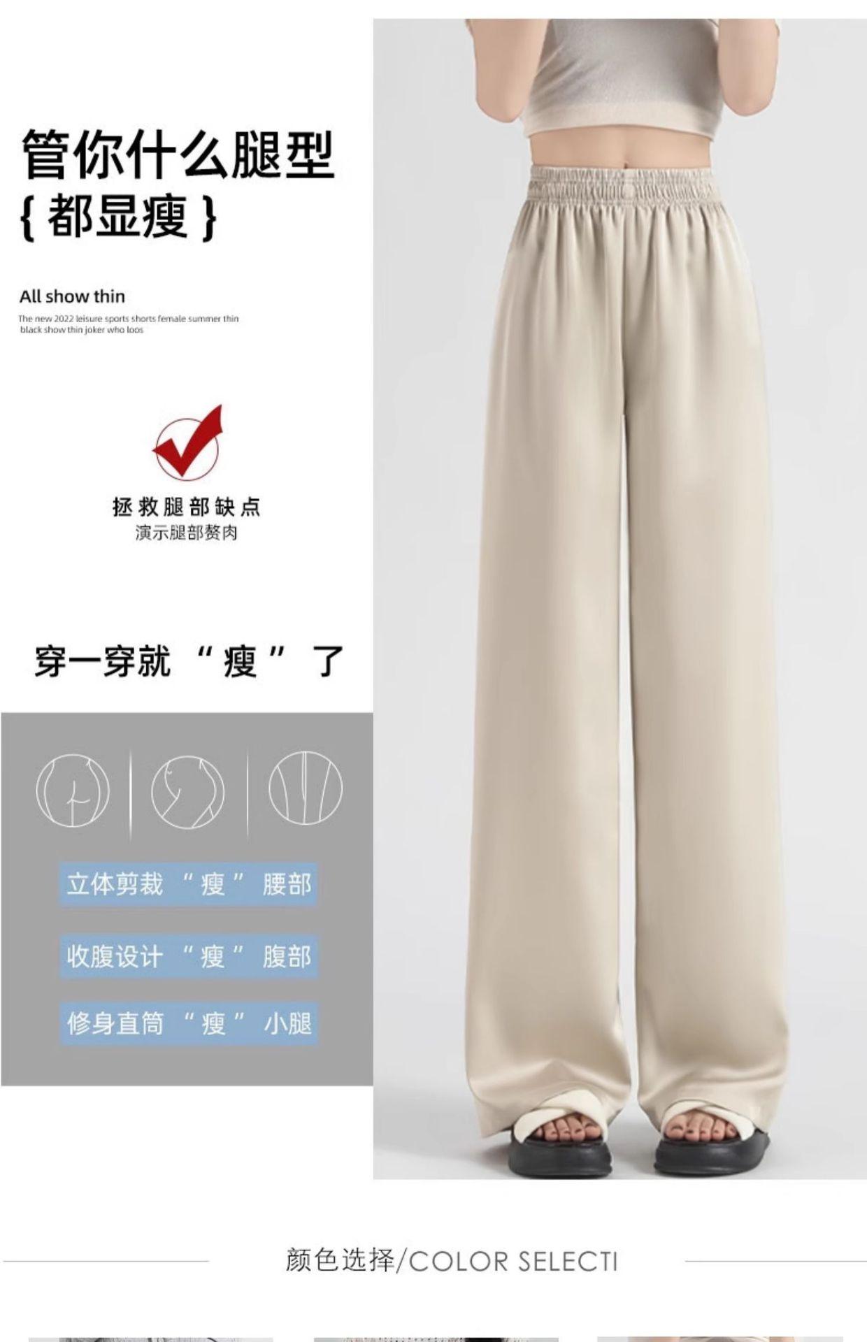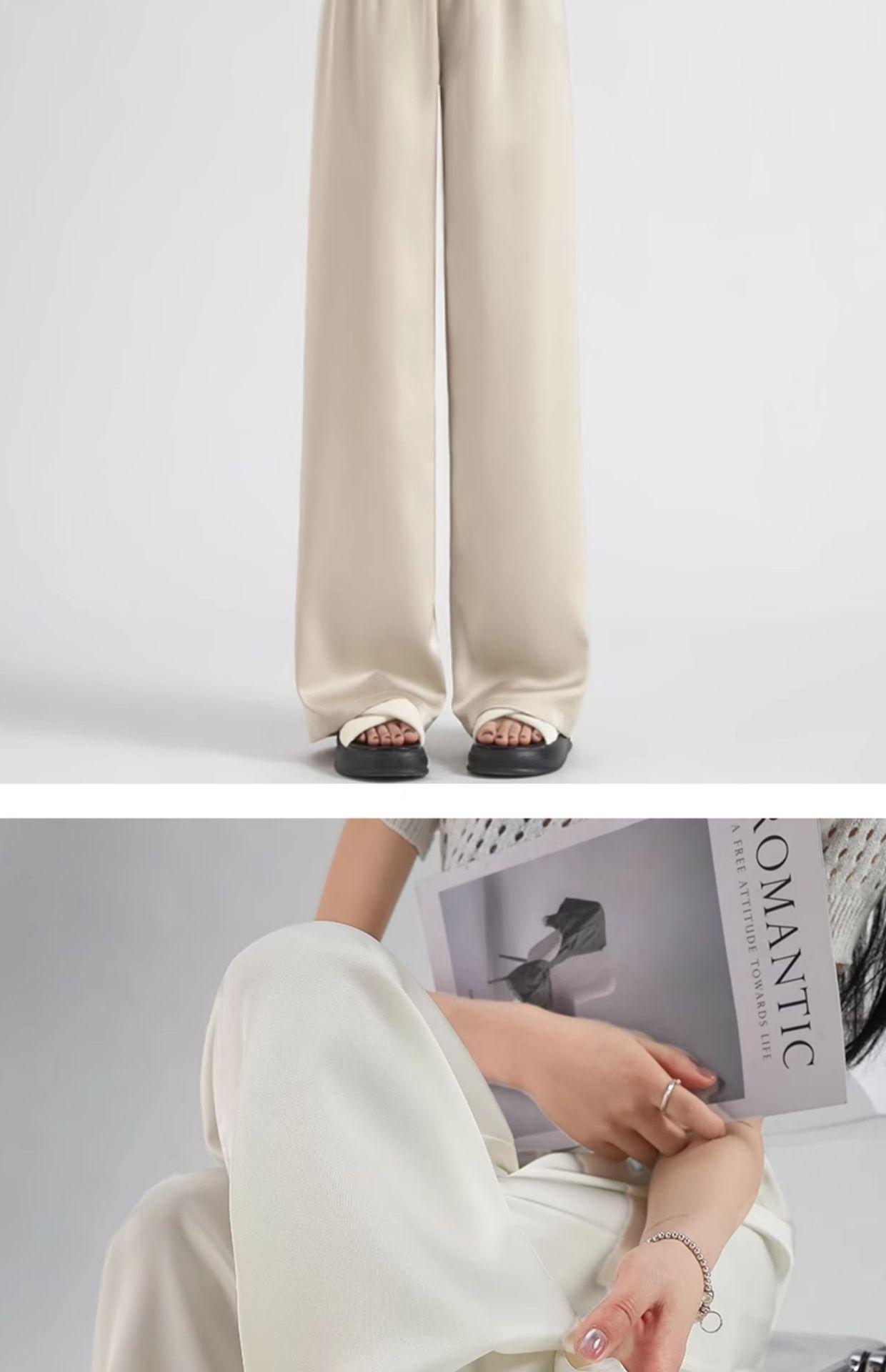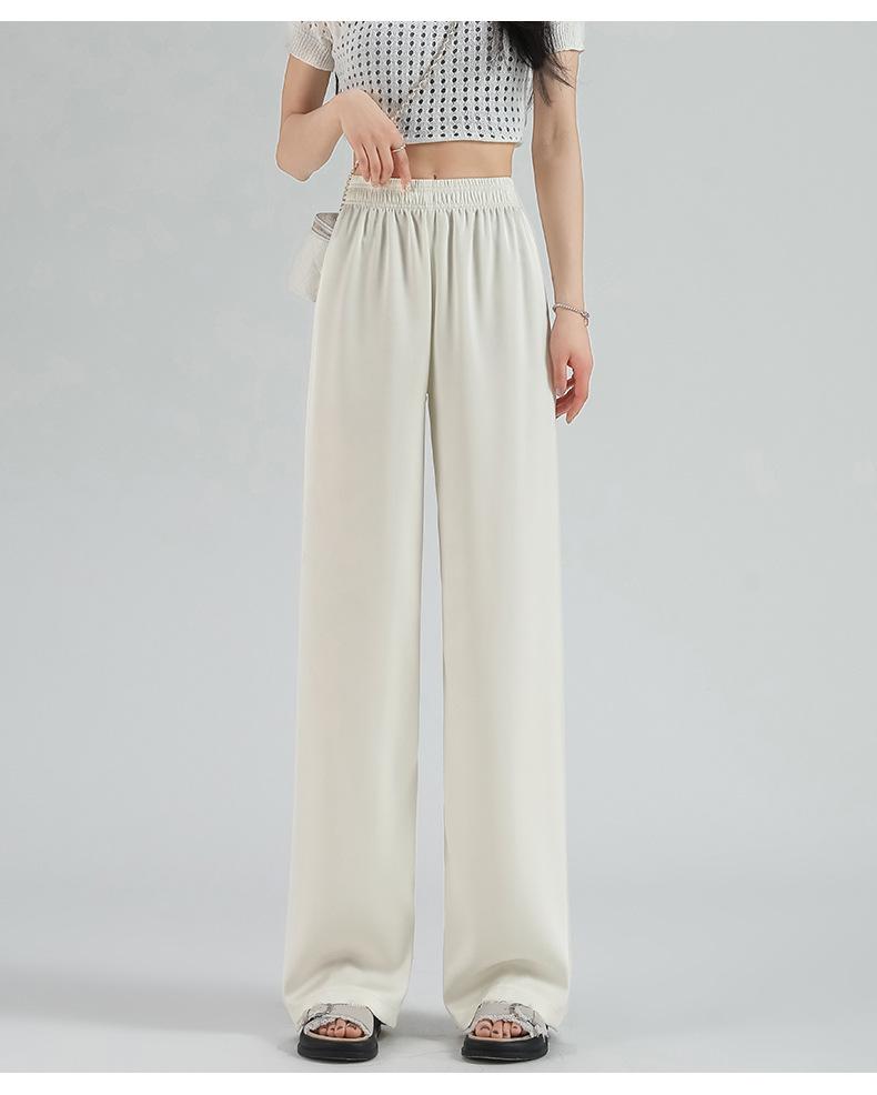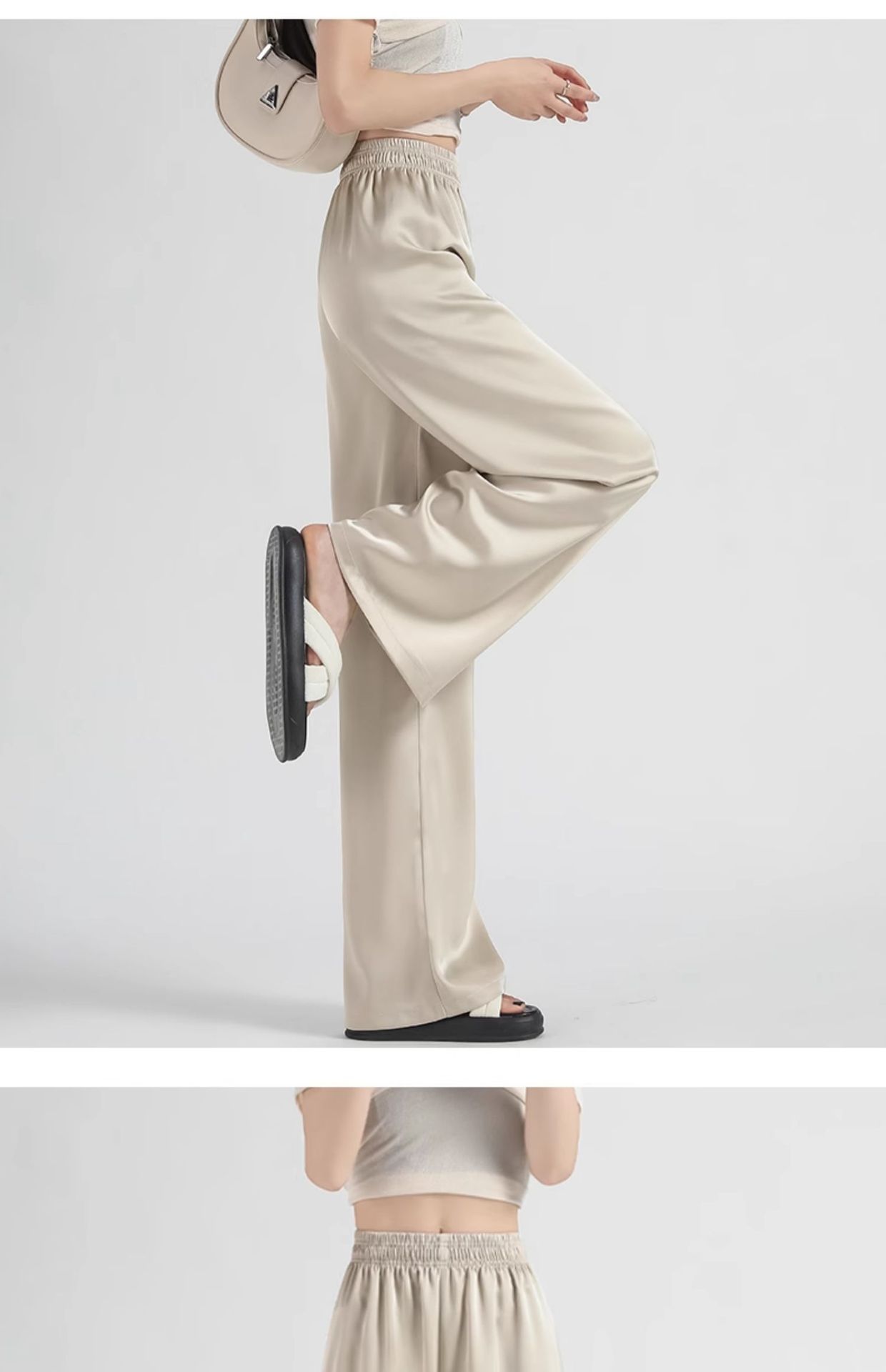 Pantalones delgados de satén de acetato de imitación para primavera y verano, de cintura alta drapeados y de pierna ancha para mujer 2025, nueva versión estrecha, pantalones rectos casuales