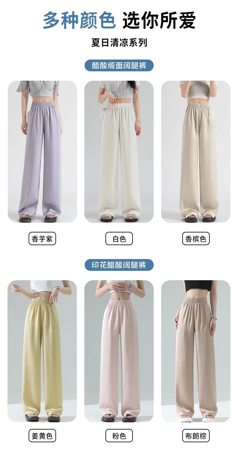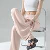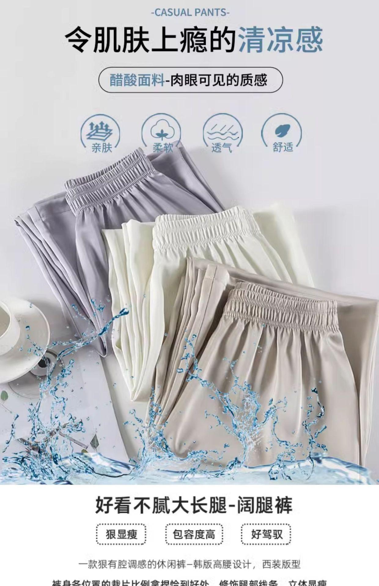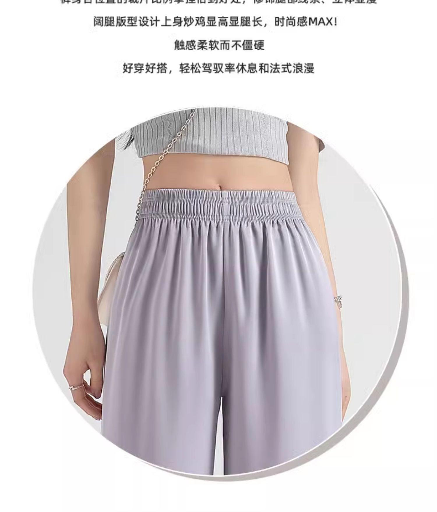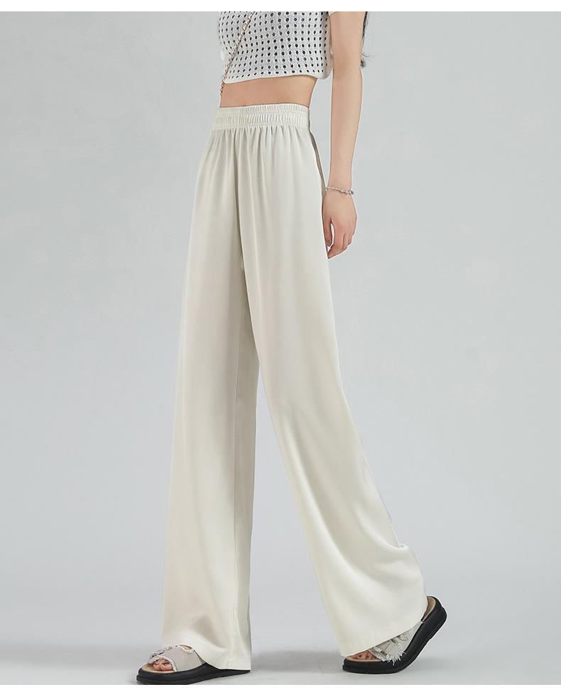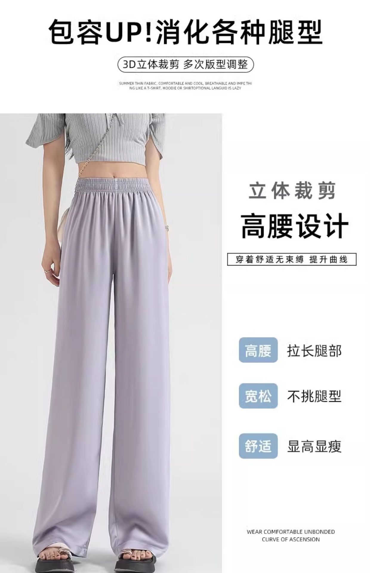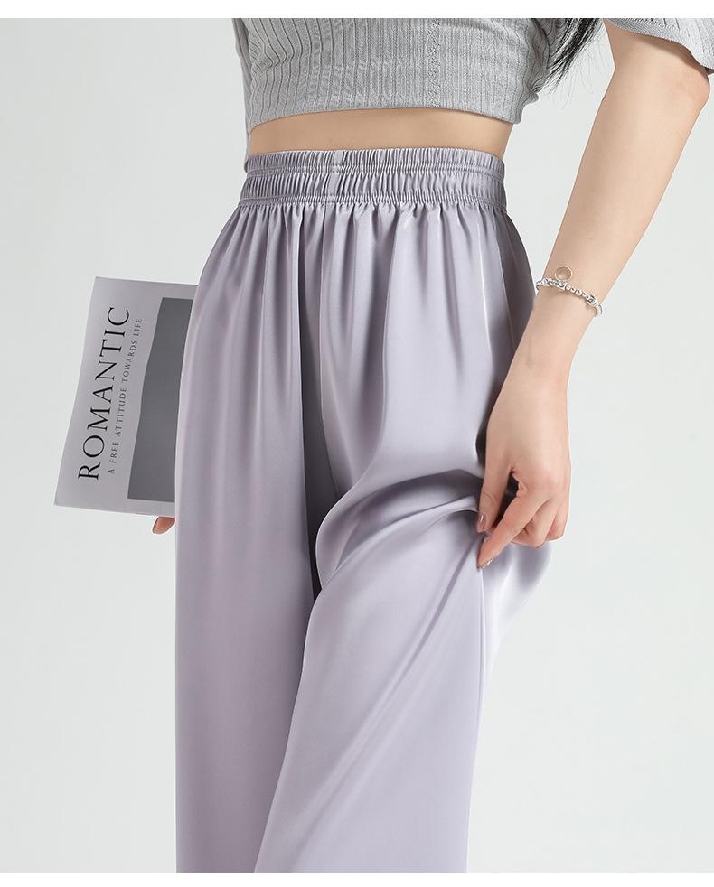 Pantalones delgados de satén de acetato de imitación para primavera y verano, de cintura alta drapeados y de pierna ancha para mujer 2025, nueva versión estrecha, pantalones rectos casuales