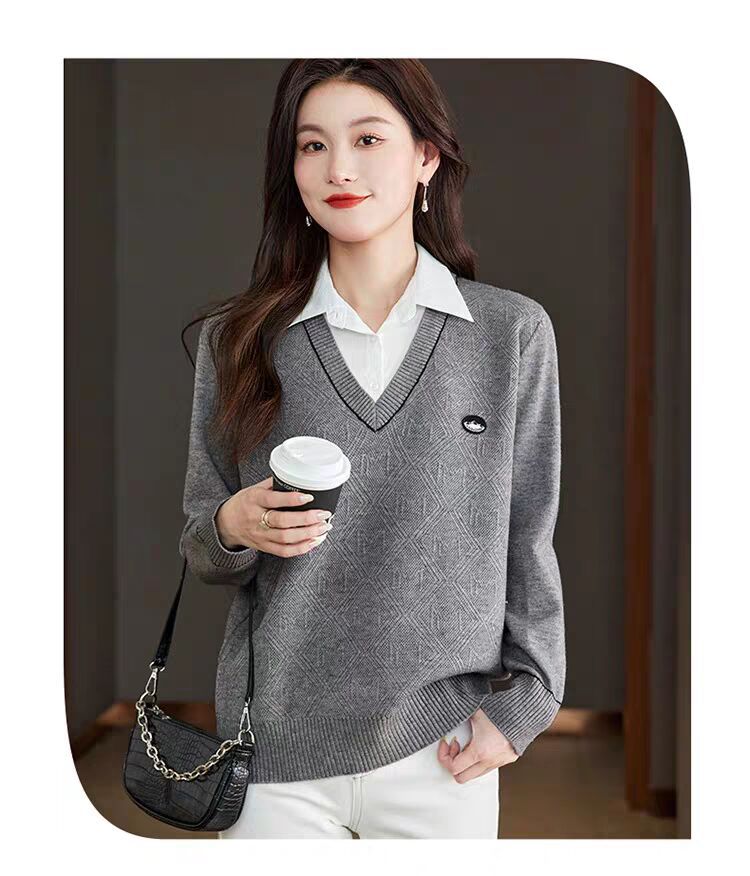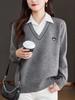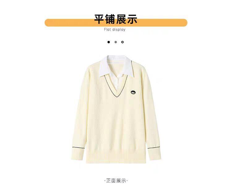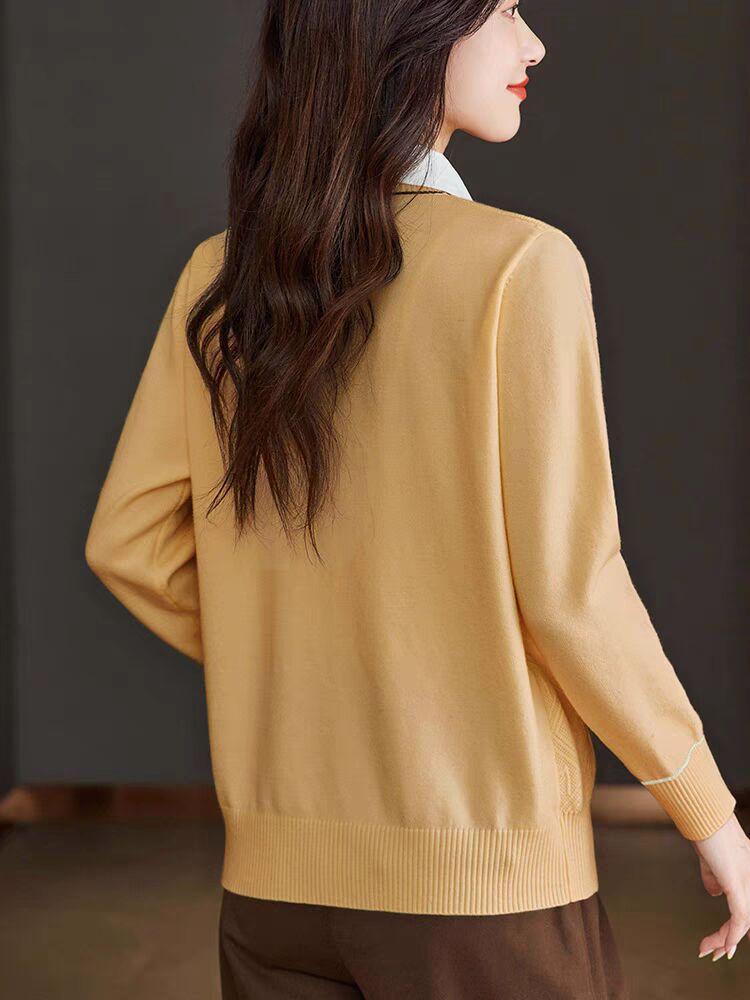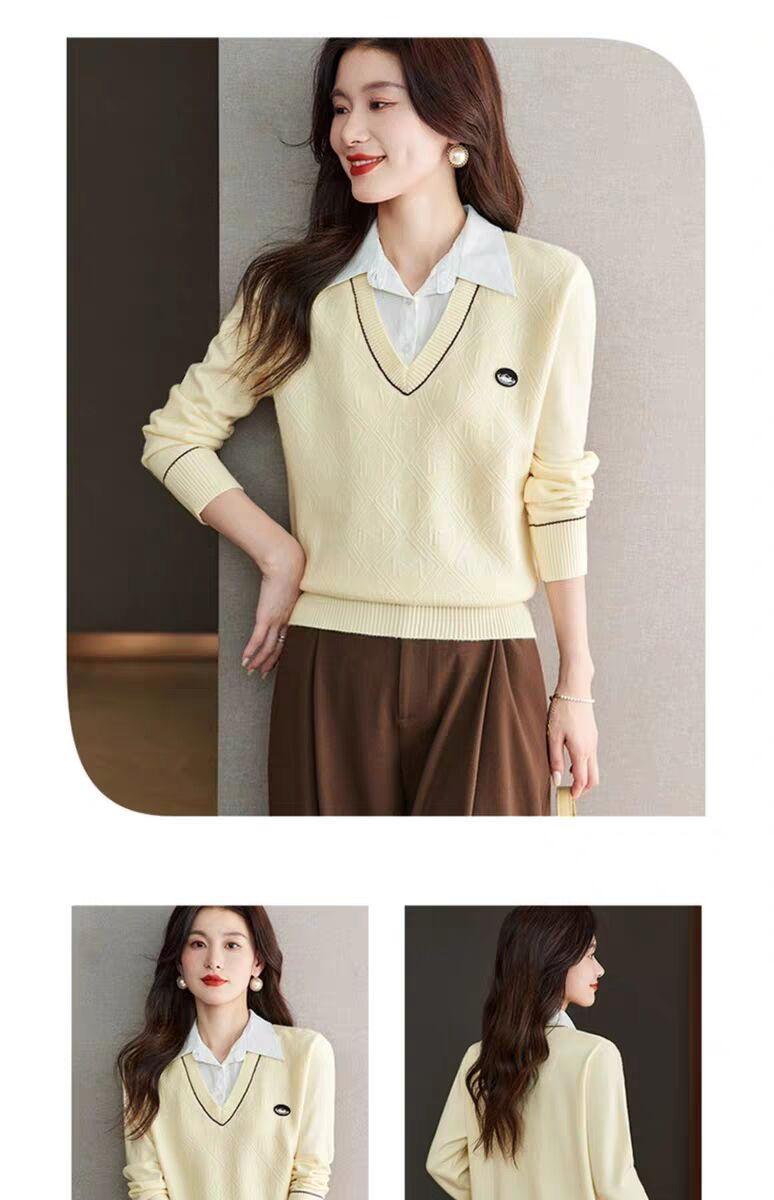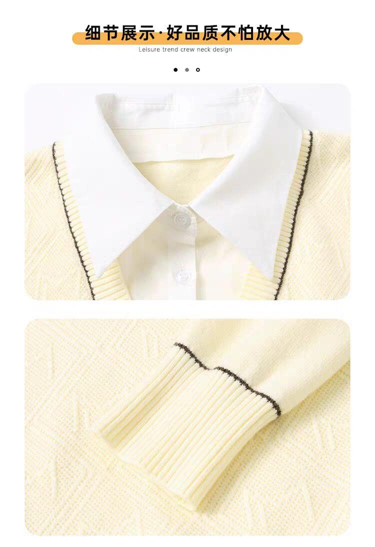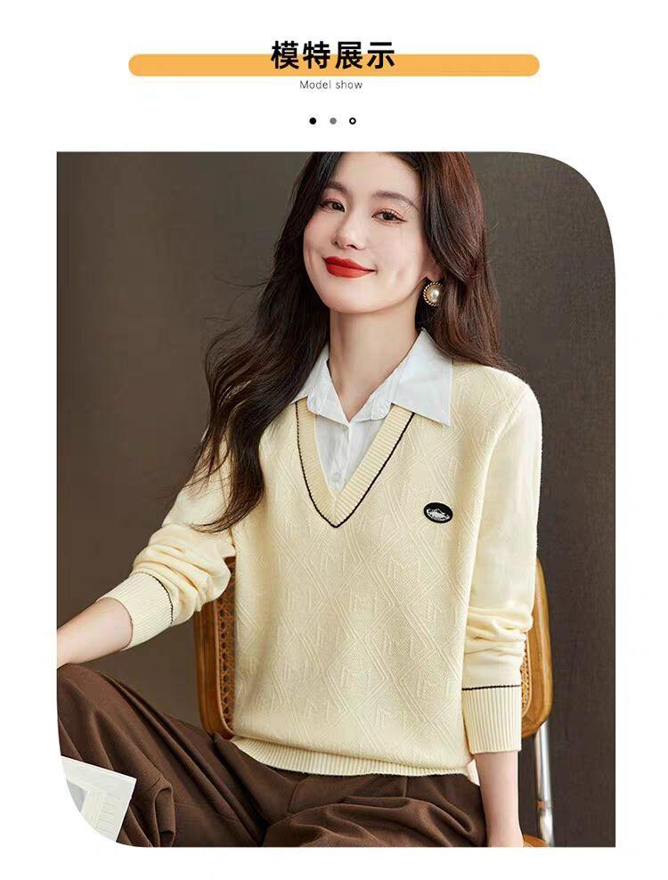 Top de Suéter Falso de Dos Piezas para Mujer Moda de Primavera y Otoño Camiseta Base Elegante Suéter con Cuello Camisa Casual