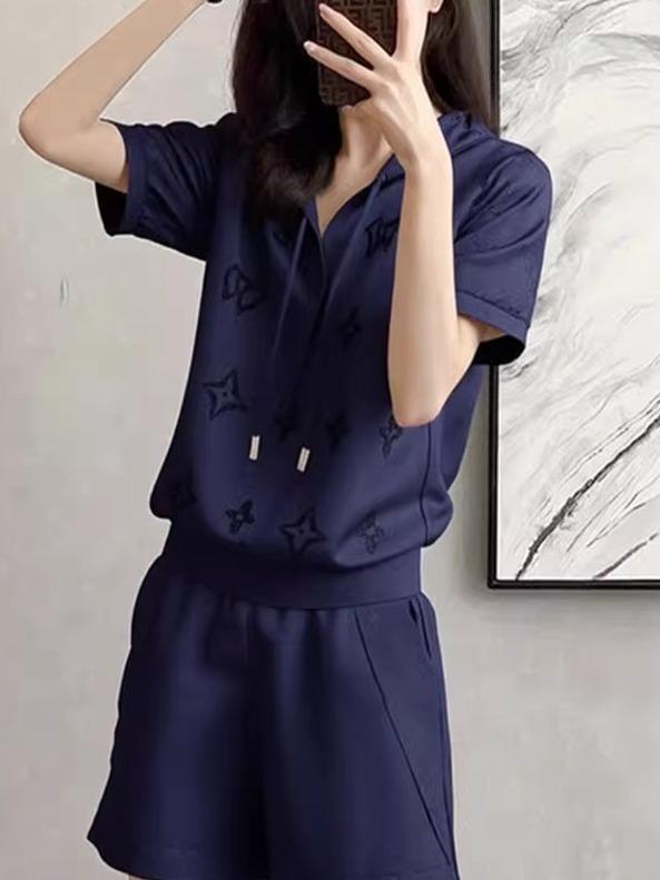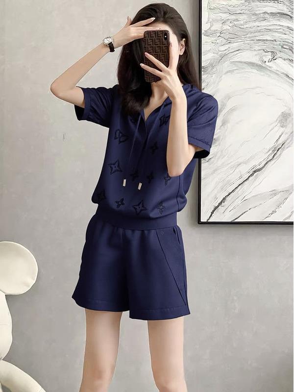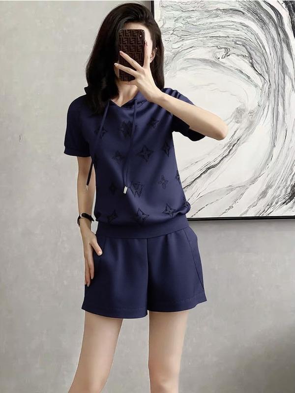 Ropa de Verano para Mujer 2025 Nuevo Estilo Pequeño Fresco Deportivo Casual Moda Sudadera con Capucha de Manga Corta Shorts Traje de Dos Piezas