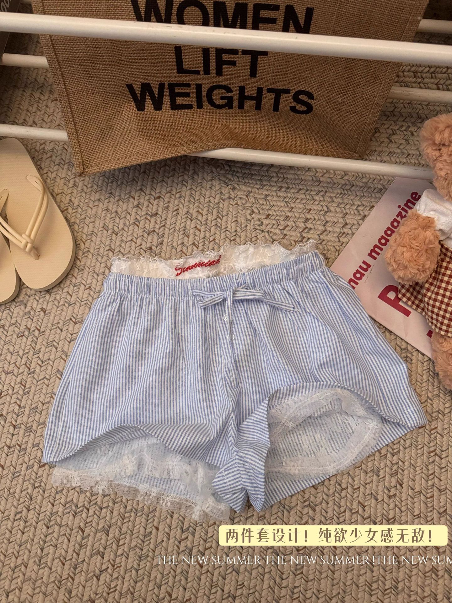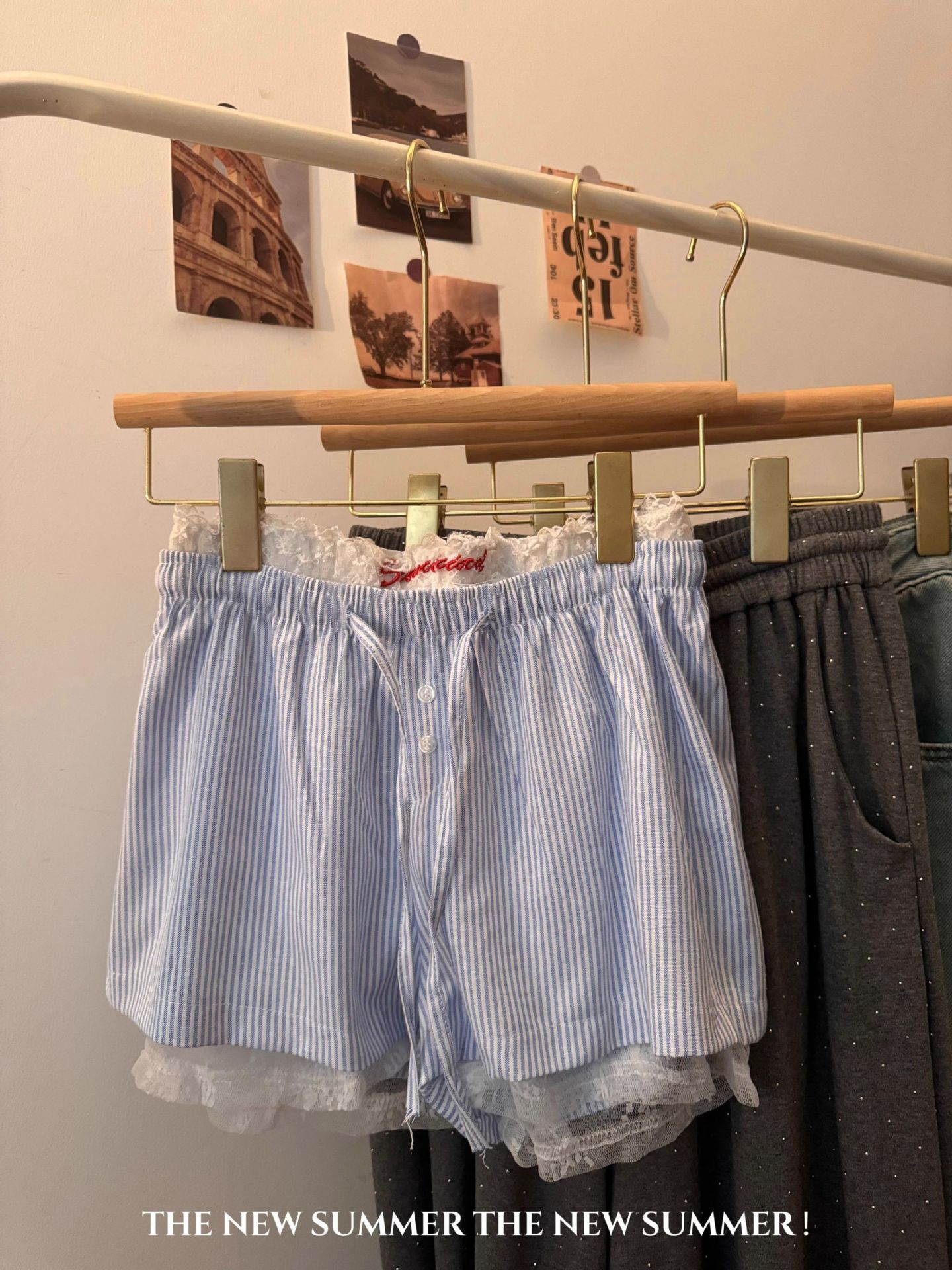 Shorts super look a rayas estilo coreano para mujer verano nuevo diseño cordón cintura alta adelgazantes a la moda casual sueltos hot pants
