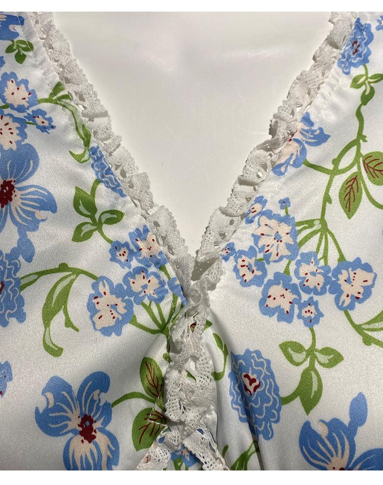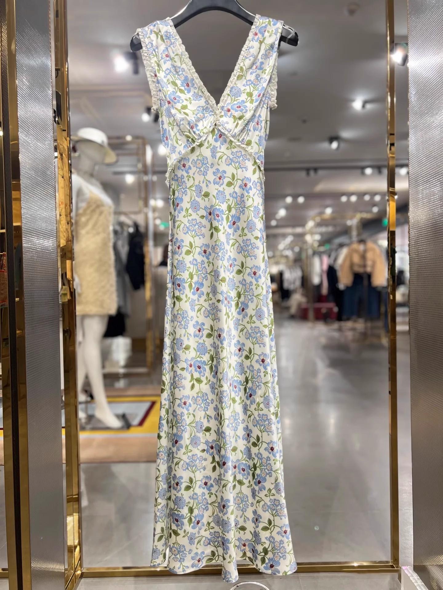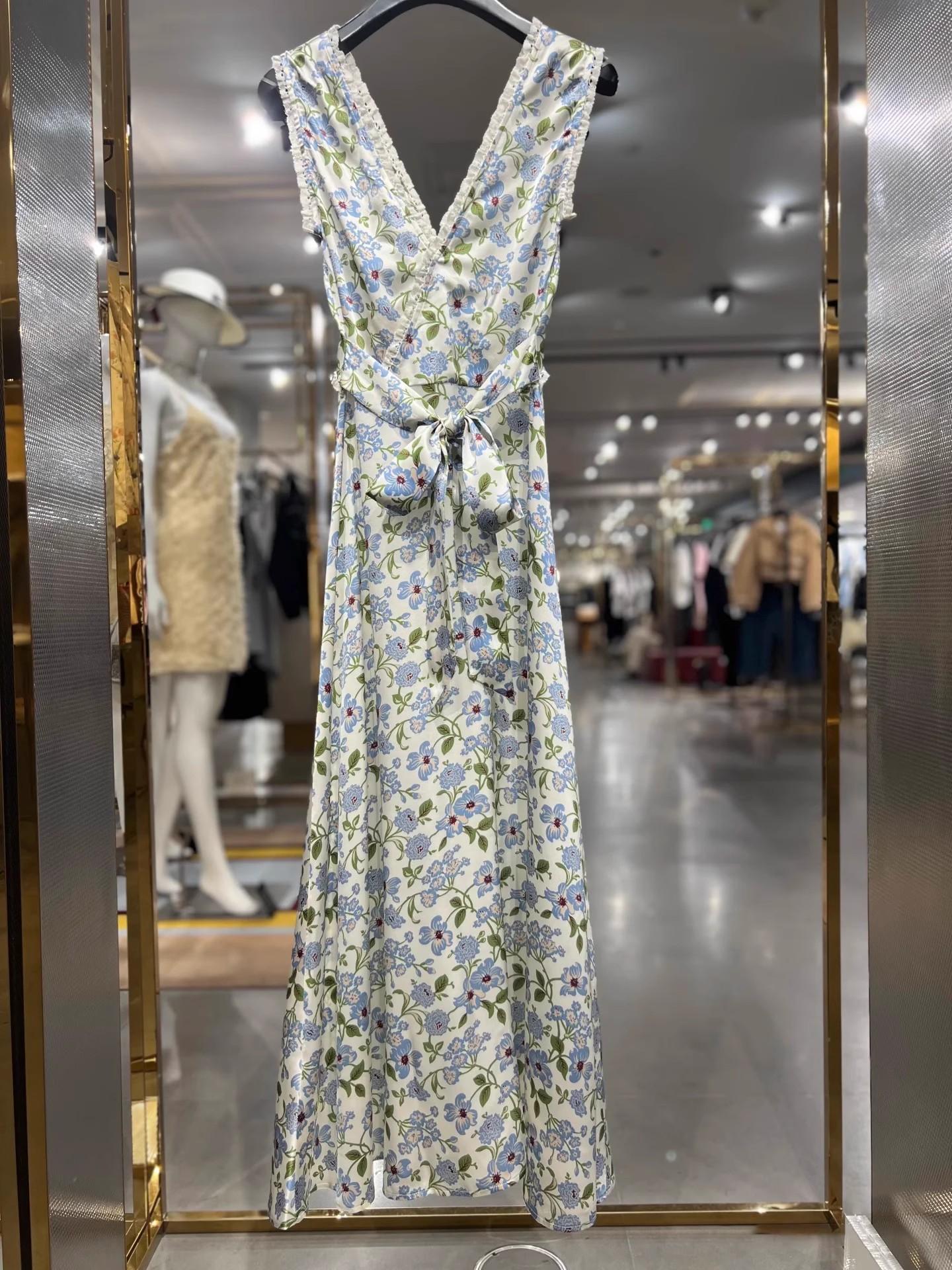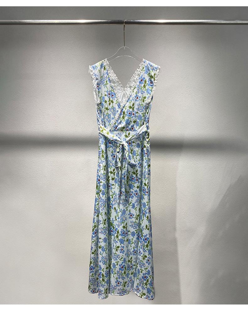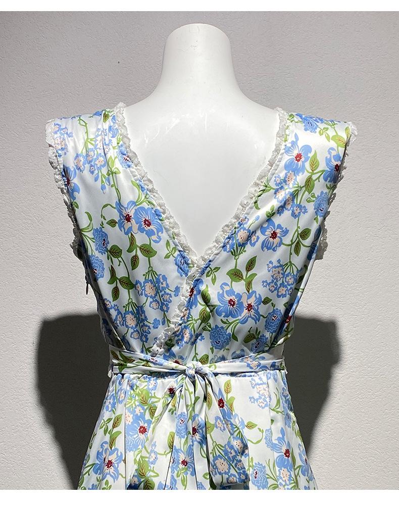 Ahora 2025 Nuevo Estilo Verano Francés Dulce Vestido sin Mangas con Cuello en V y Falda Larga Floral Adelgazante de Cintura para Mujer