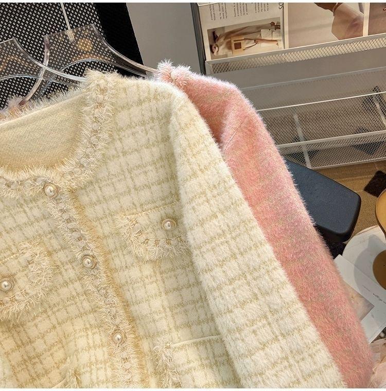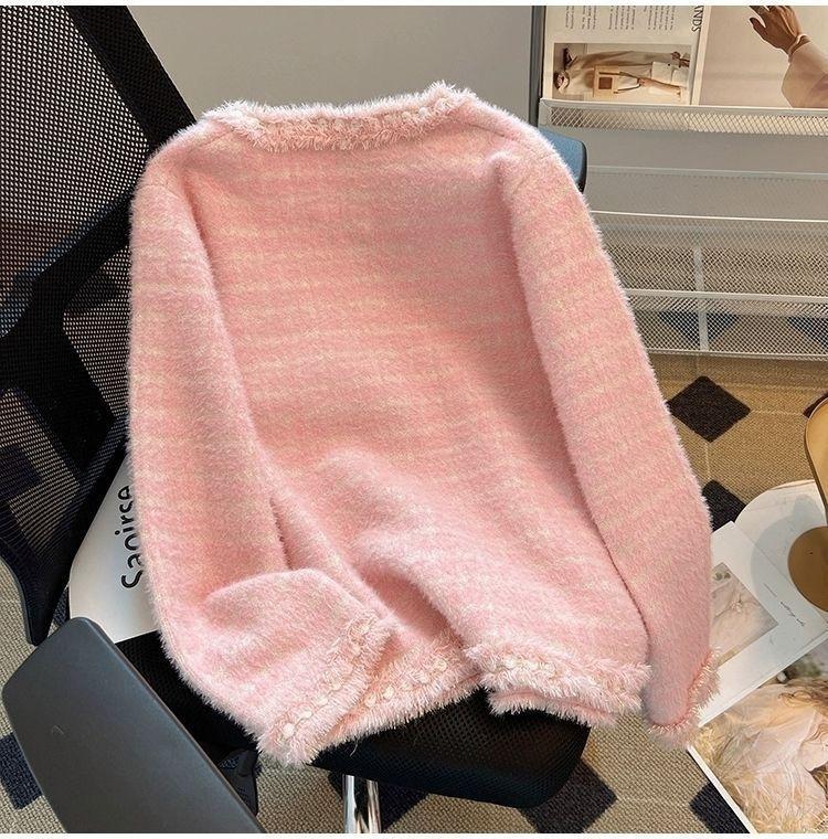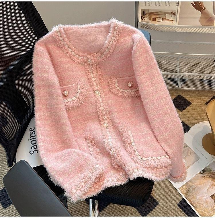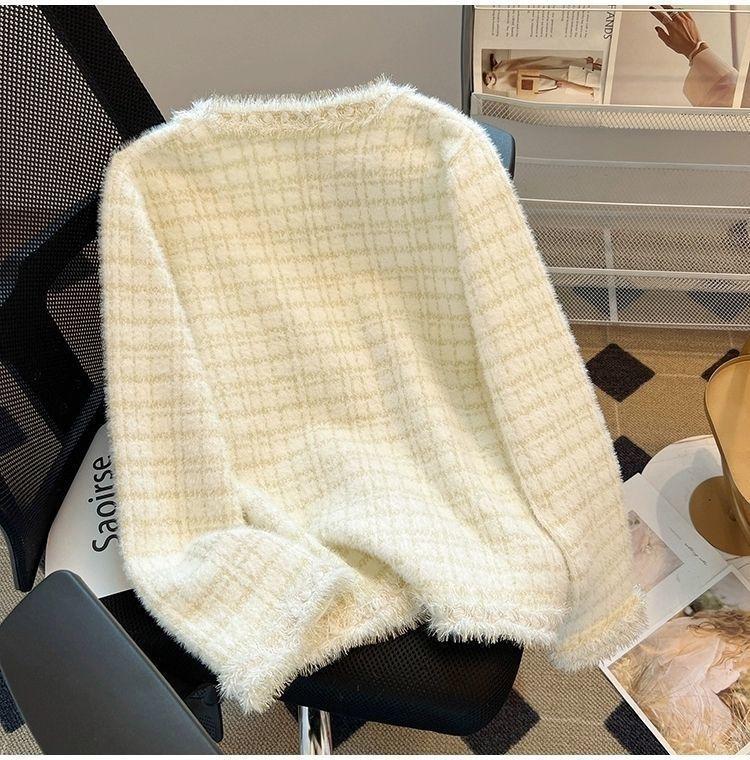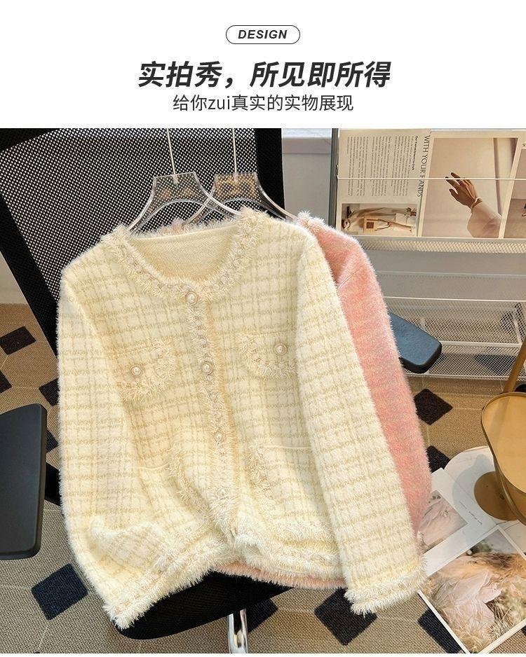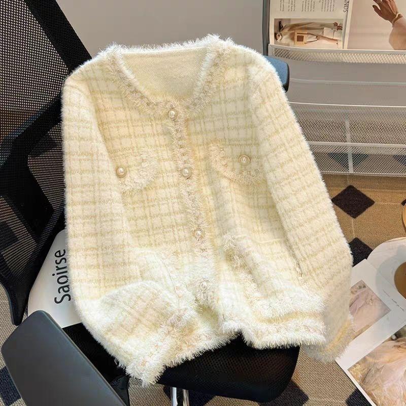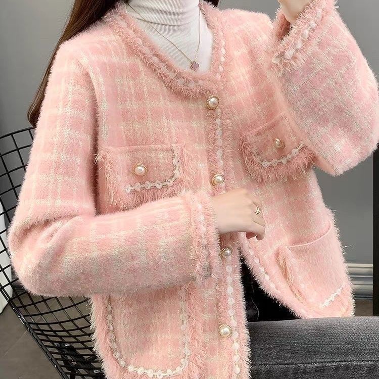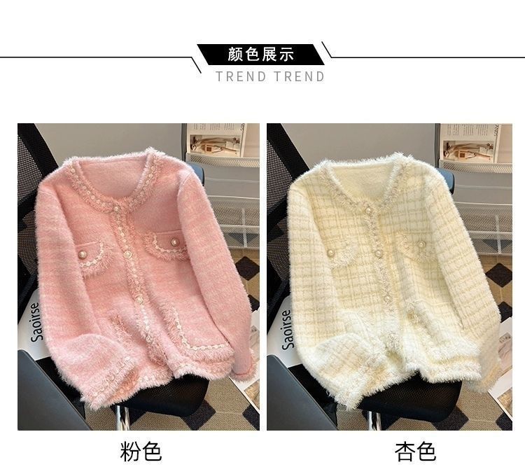 Abrigo Cárdigan de Punto Viento Fragante Otoño Invierno Temperamento Manga Larga Visón Francés Alta Gama 2025 Top Nuevo