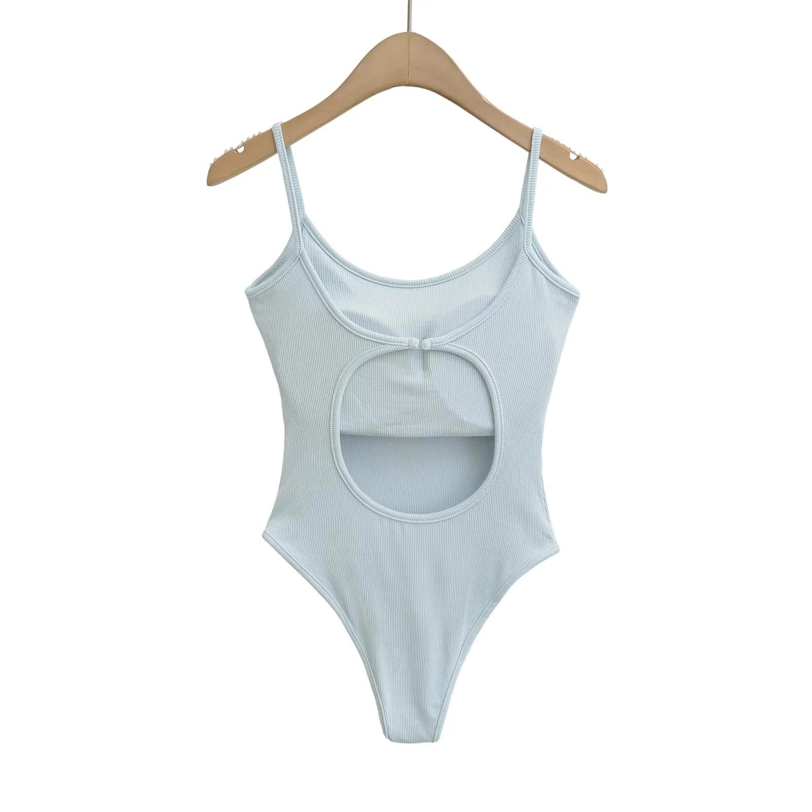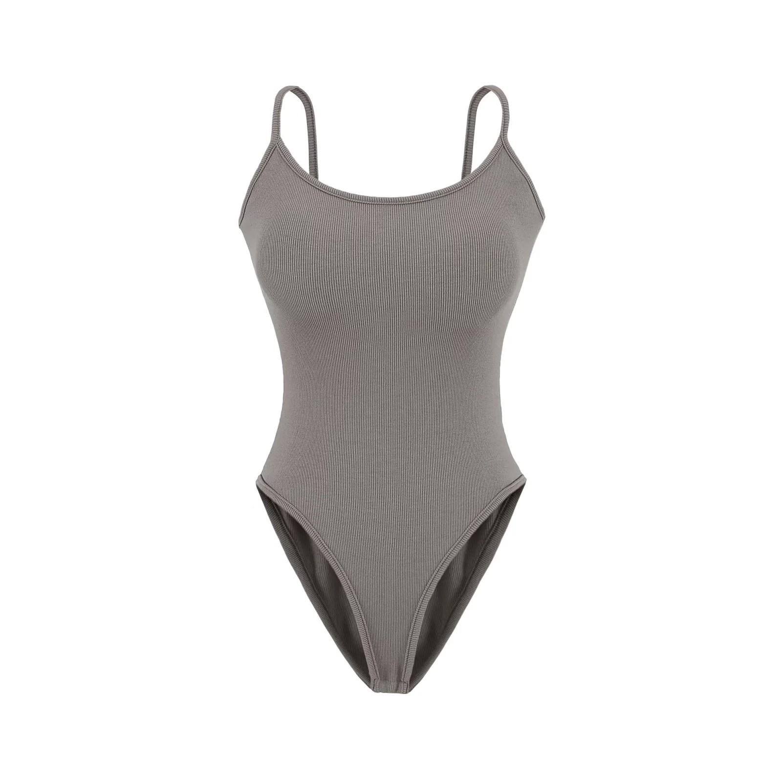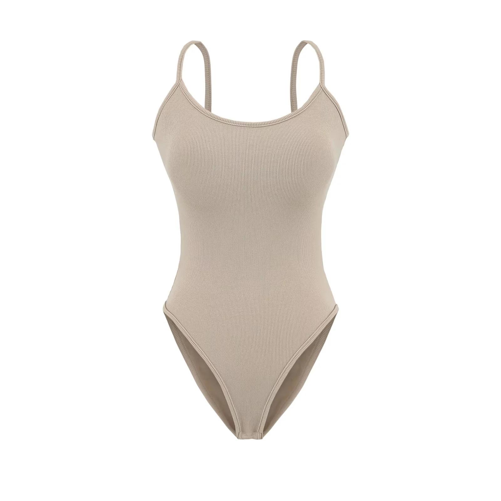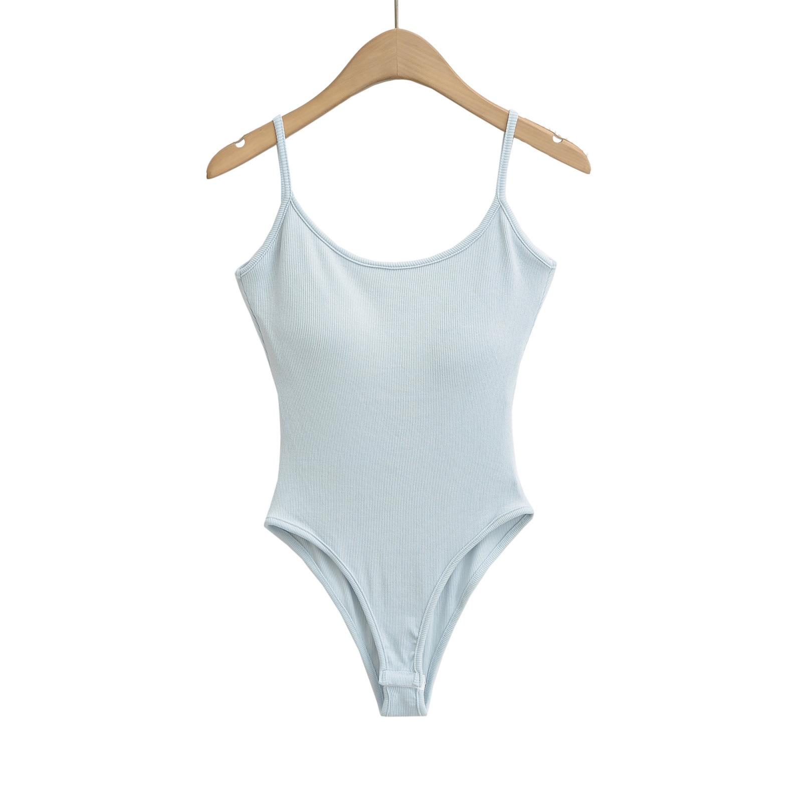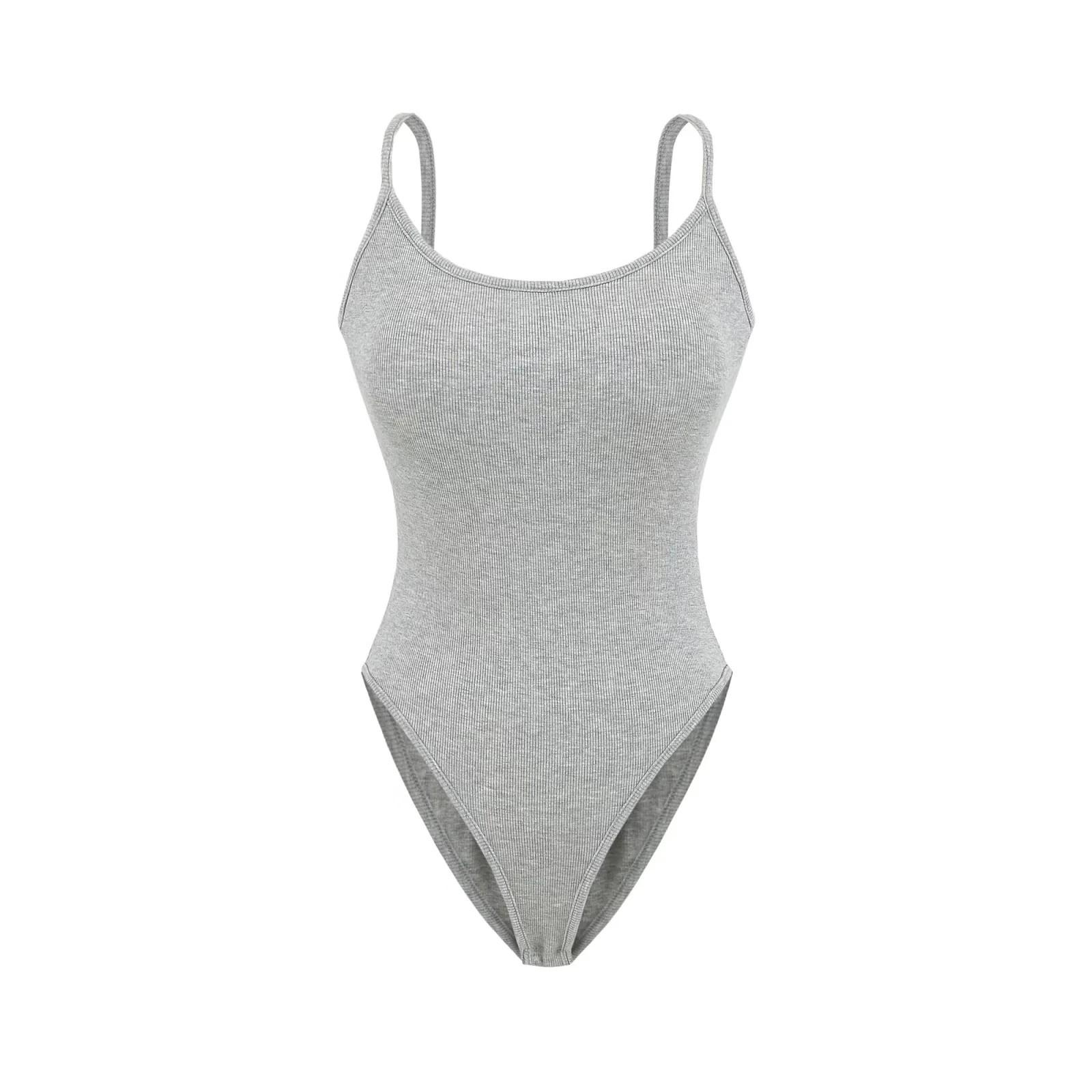 Chica Caliente Americana Sexy Slim Top de Tirantes de Una Pieza Verano Adelgazante Color Sólido Chaleco Interior Sin Entrepierna Espalda Hermosa para Mujer