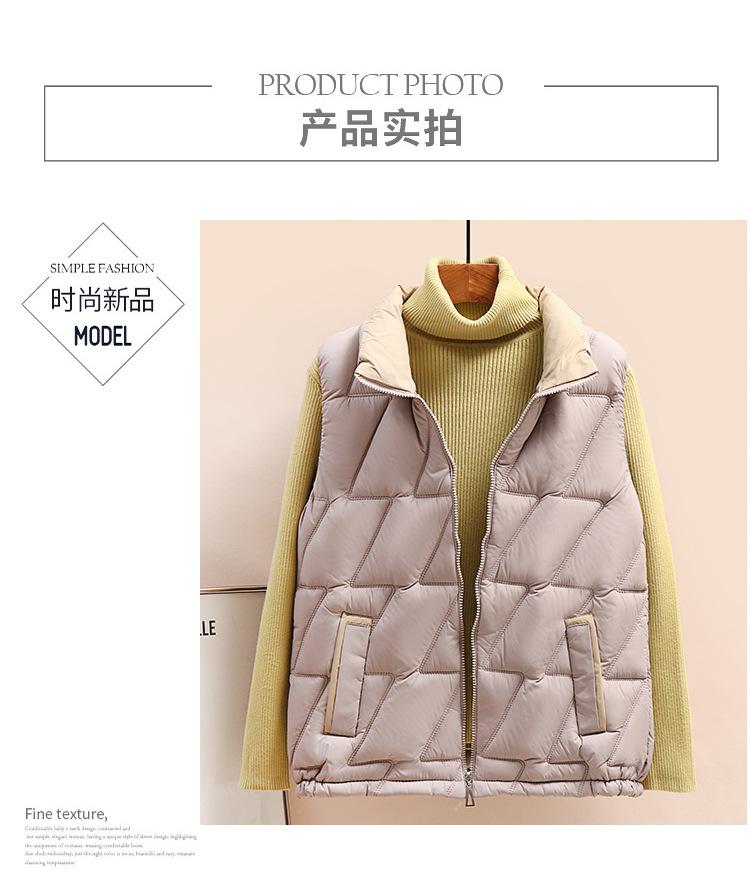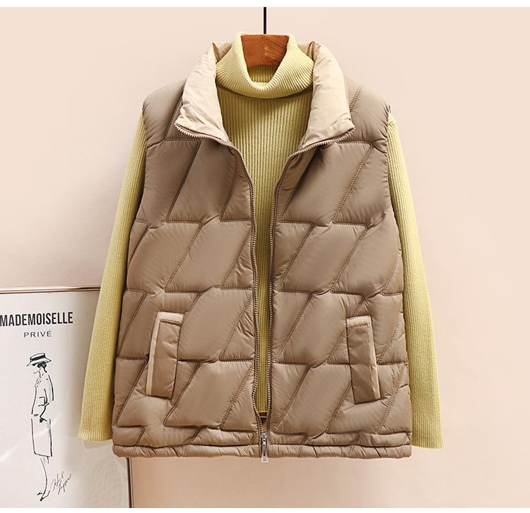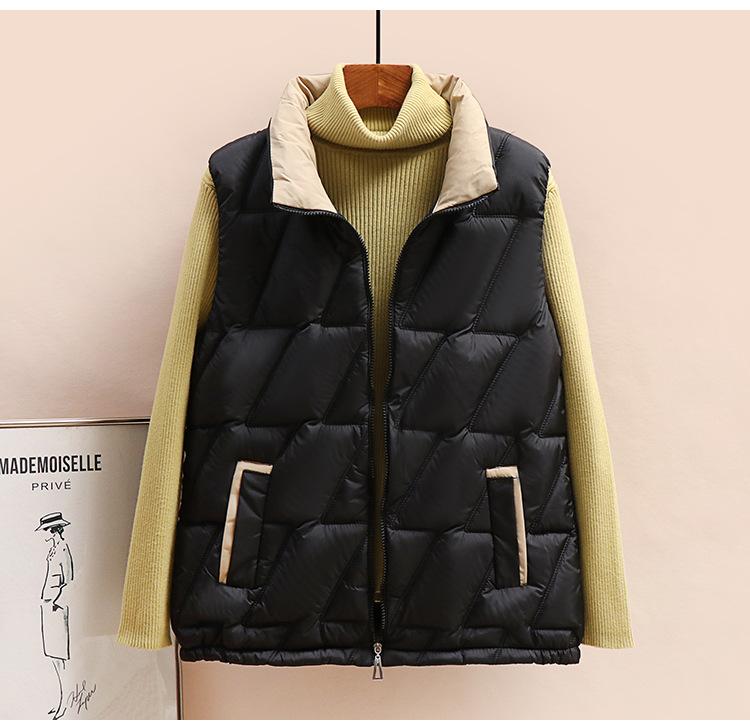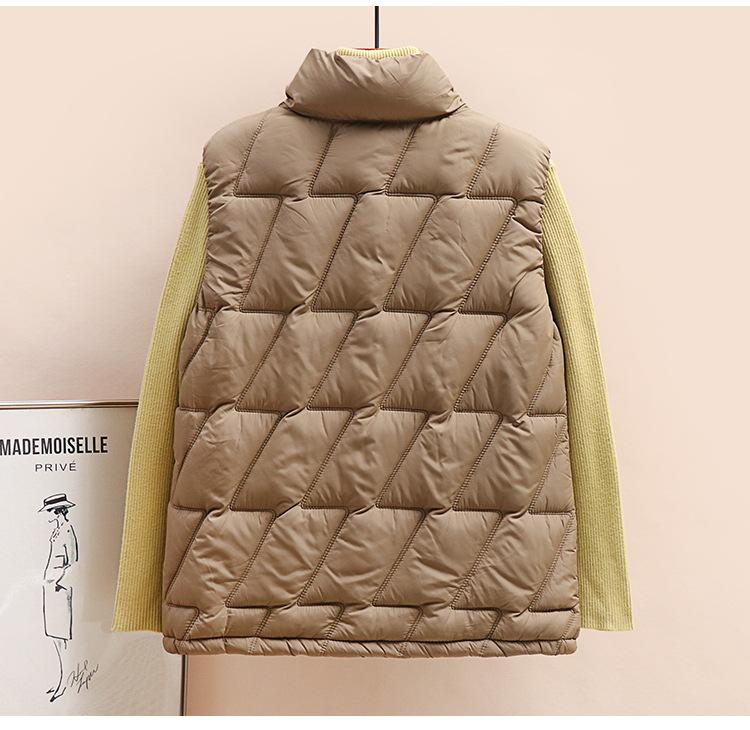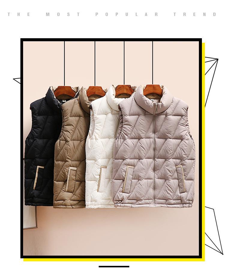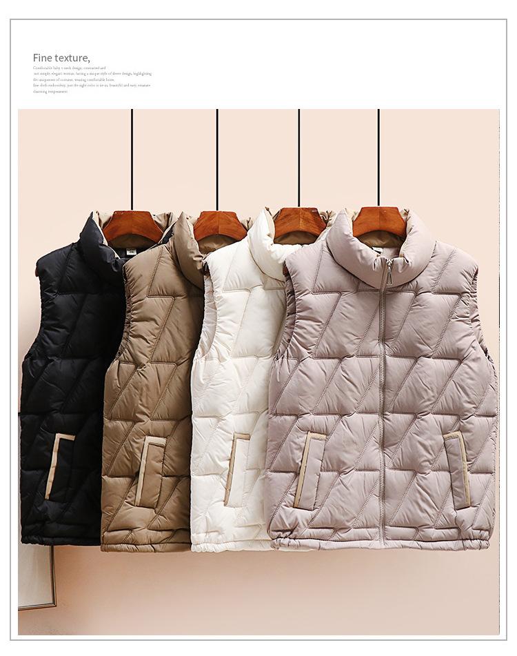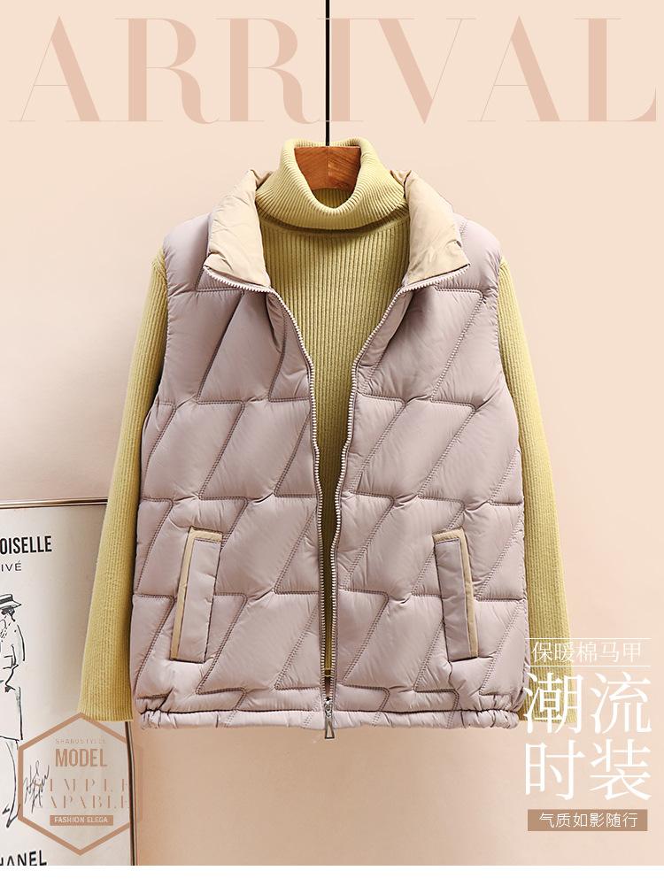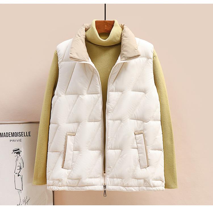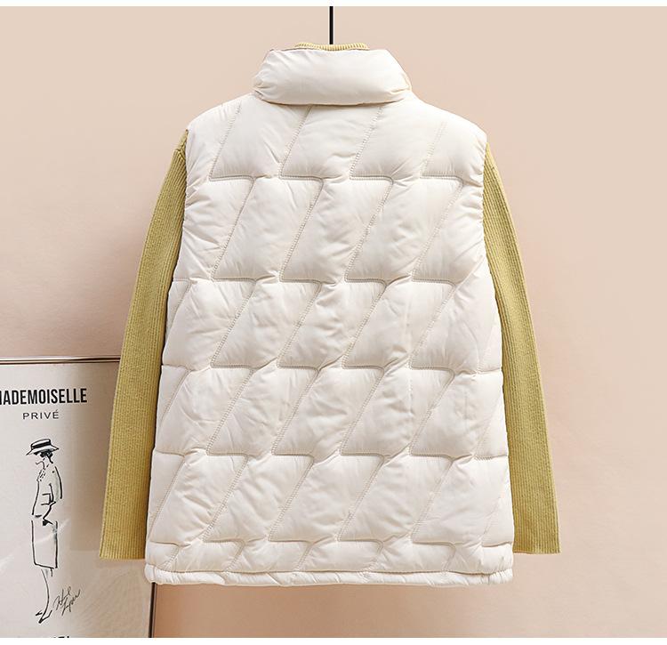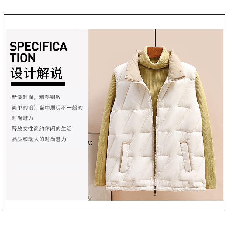 2024 otoño e invierno nuevo chaleco corto cálido de cuello alto estilo extranjero Joker de algodón plumón para mujer talla grande chaleco