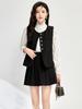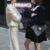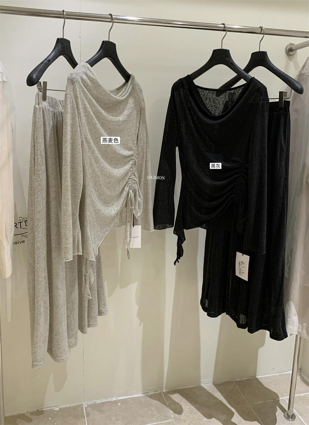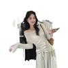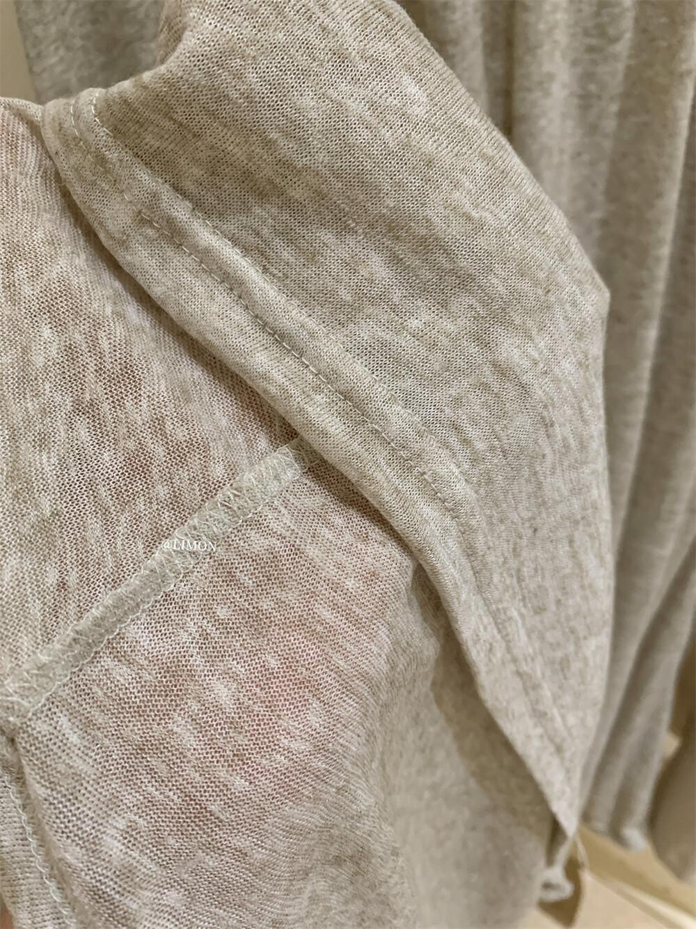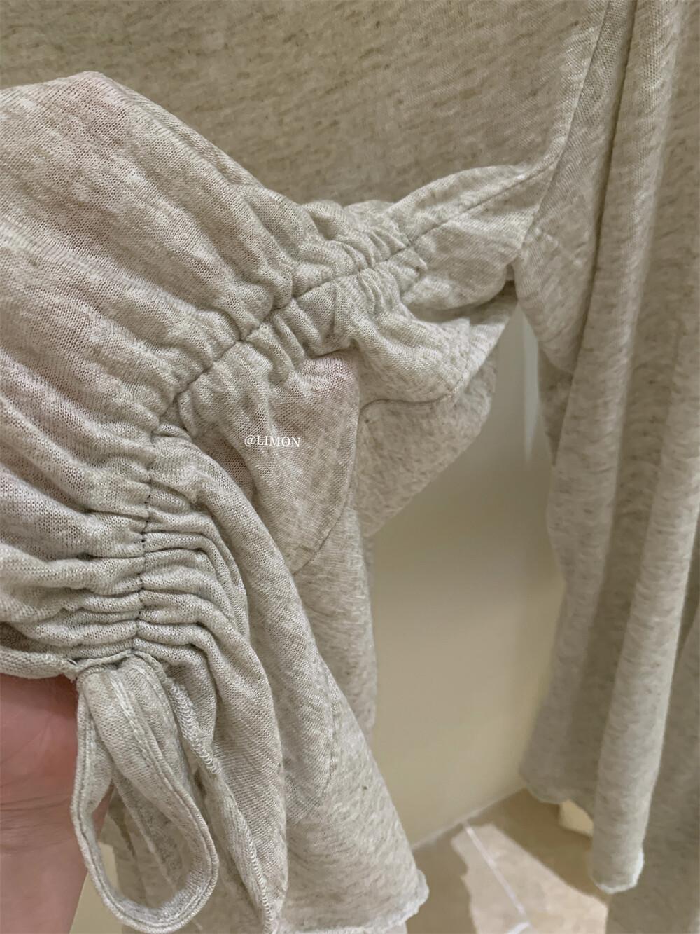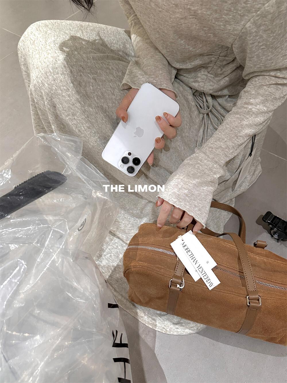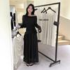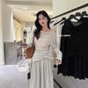 THE LIMON Camiseta de Manga Larga con Hombro Descubierto con Diseño de Otoño de Té Verde Limón + Falda Midi Larga Conjunto de Dos Piezas