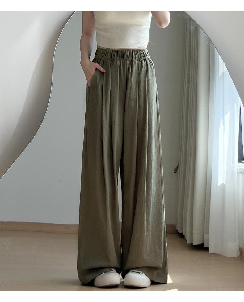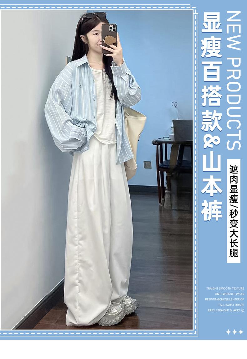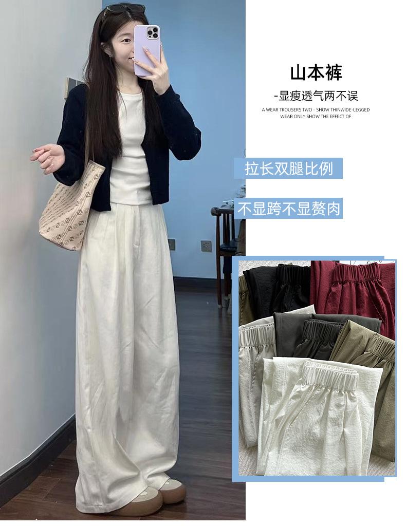 Pantalones Yamamoto de Seda de Hielo Blanco para Mujer, Verano Delgados 2025 Nuevo Cintura Alta Drapeados Sueltos Casuales Texturizados de Pierna Ancha