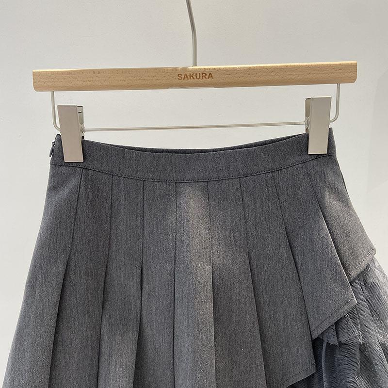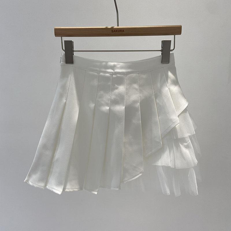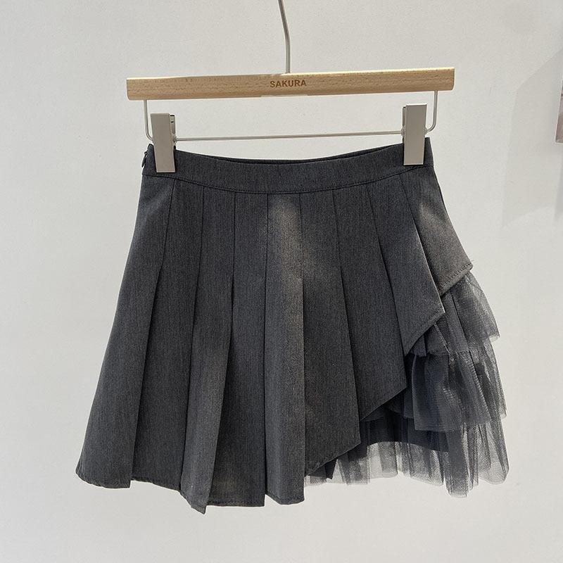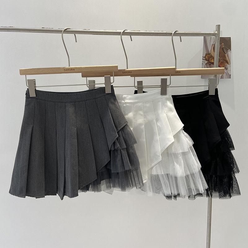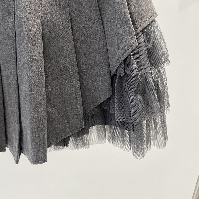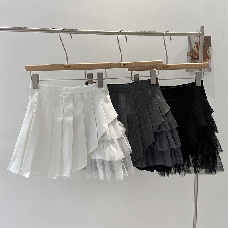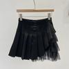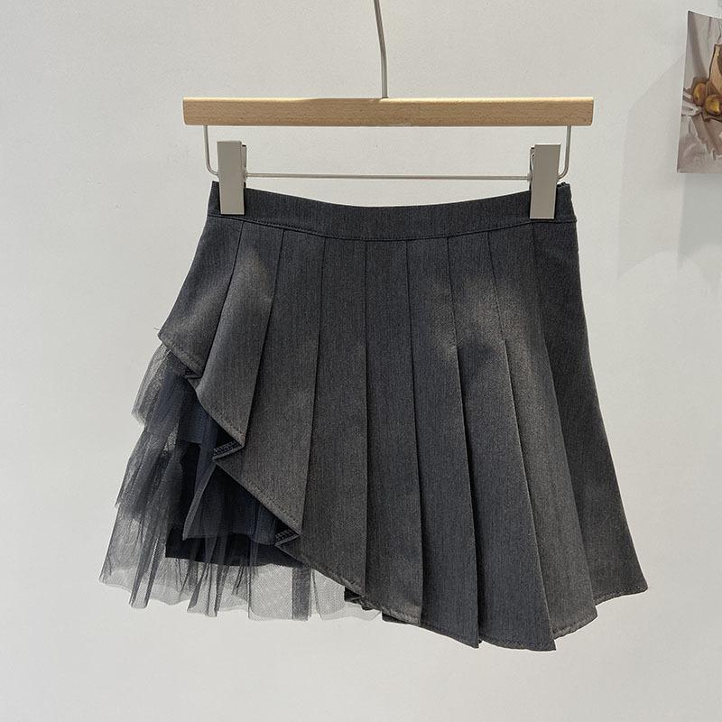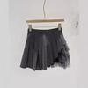 Falda plisada de empalme de malla de diseño para mujer 2024 Verano Nuevo Estilo Coreano Nicho Cintura Alta Línea A Falda Corta