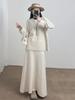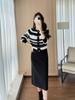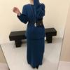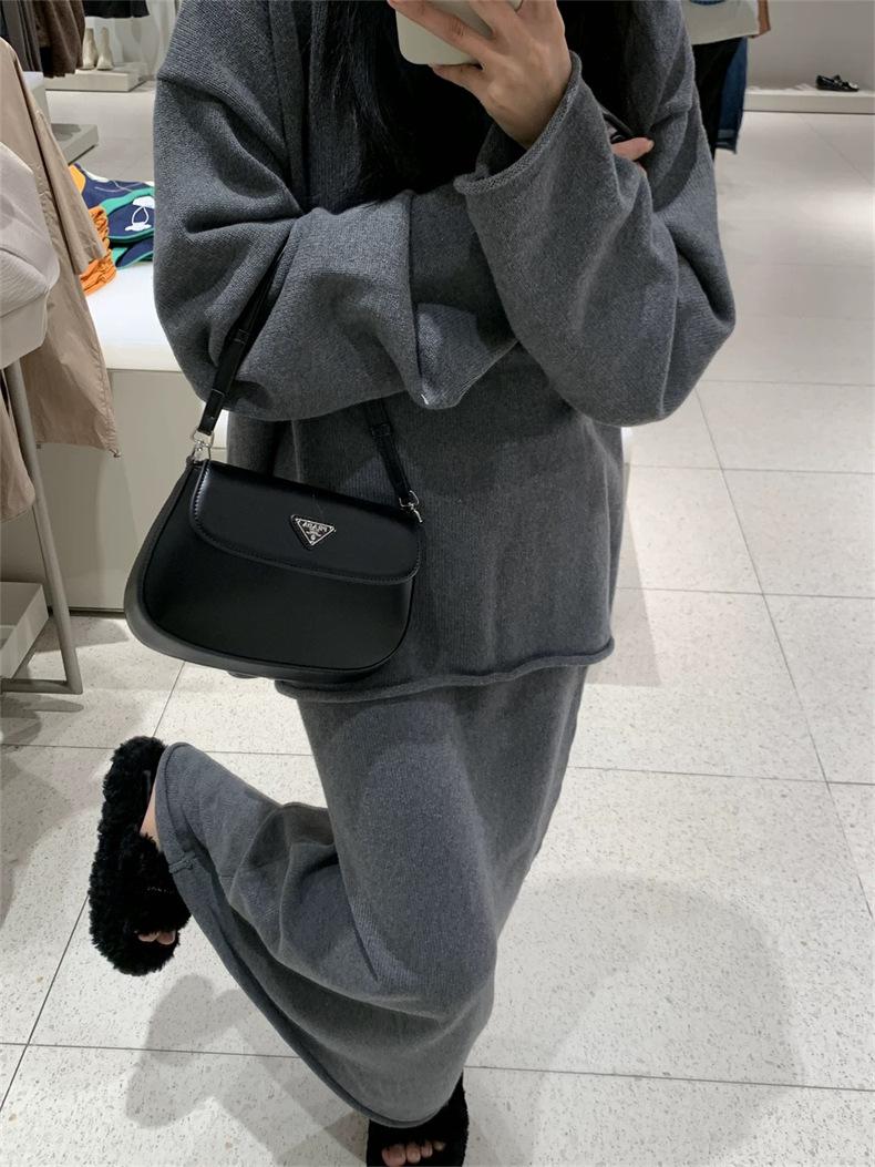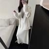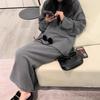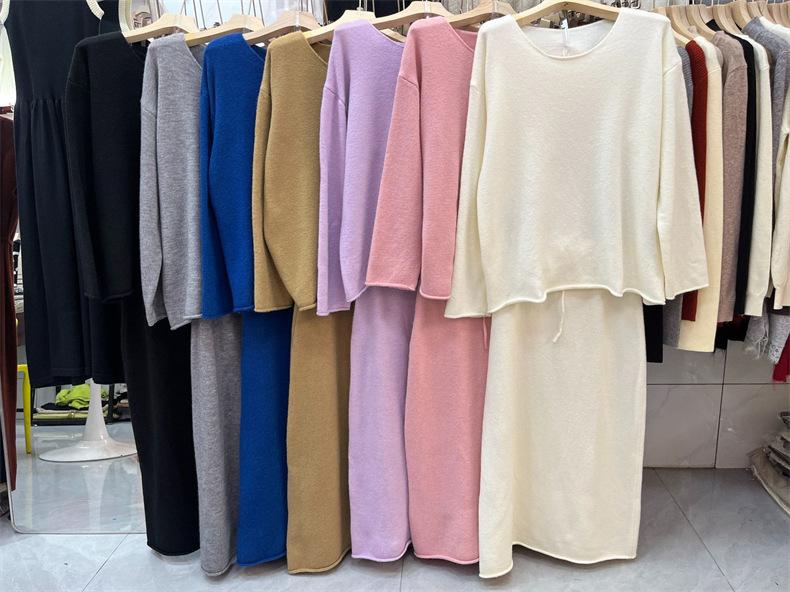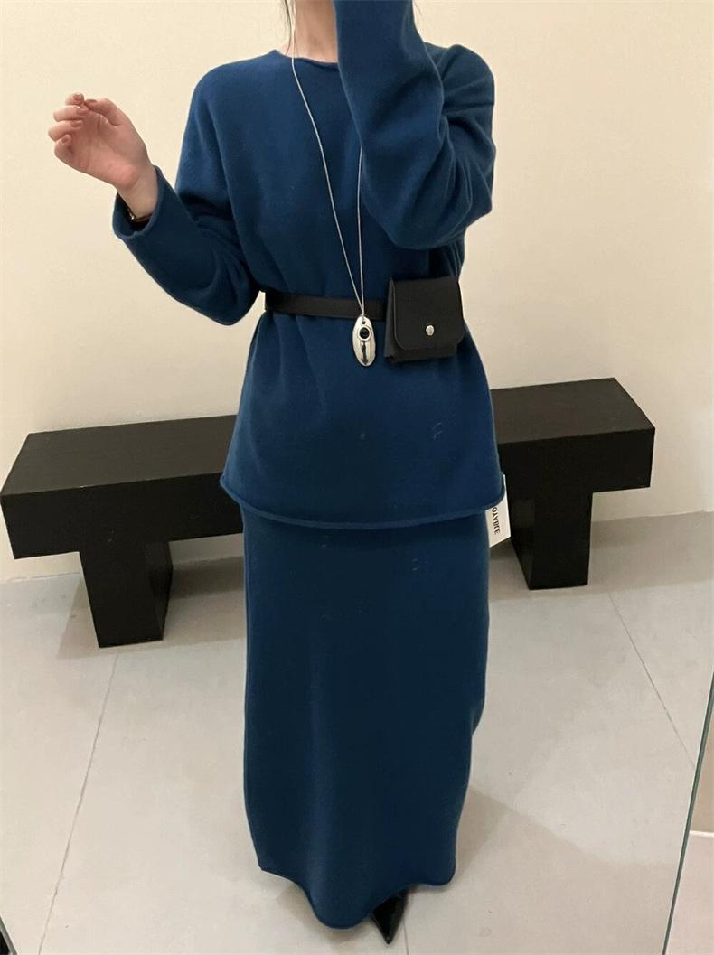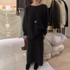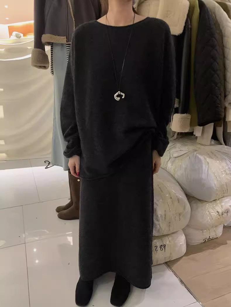 Suéter de Manga Larga Holgado de Cuello Redondo Estilo Perezoso Estilo Coreano para Mujer Otoño e Invierno 2025 Falda de Cintura Alta que Reduce la Edad Conjunto de Dos Piezas Ins