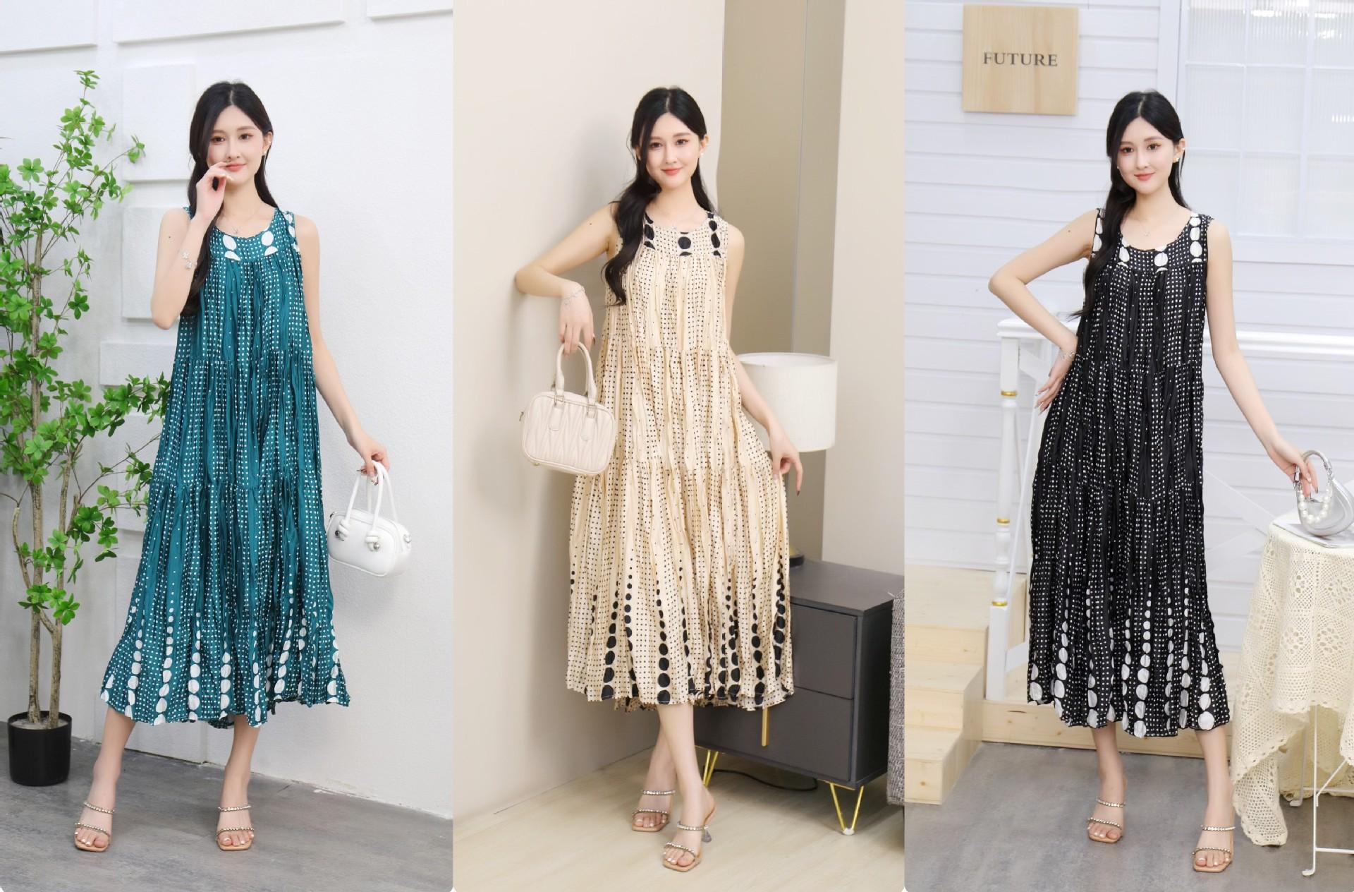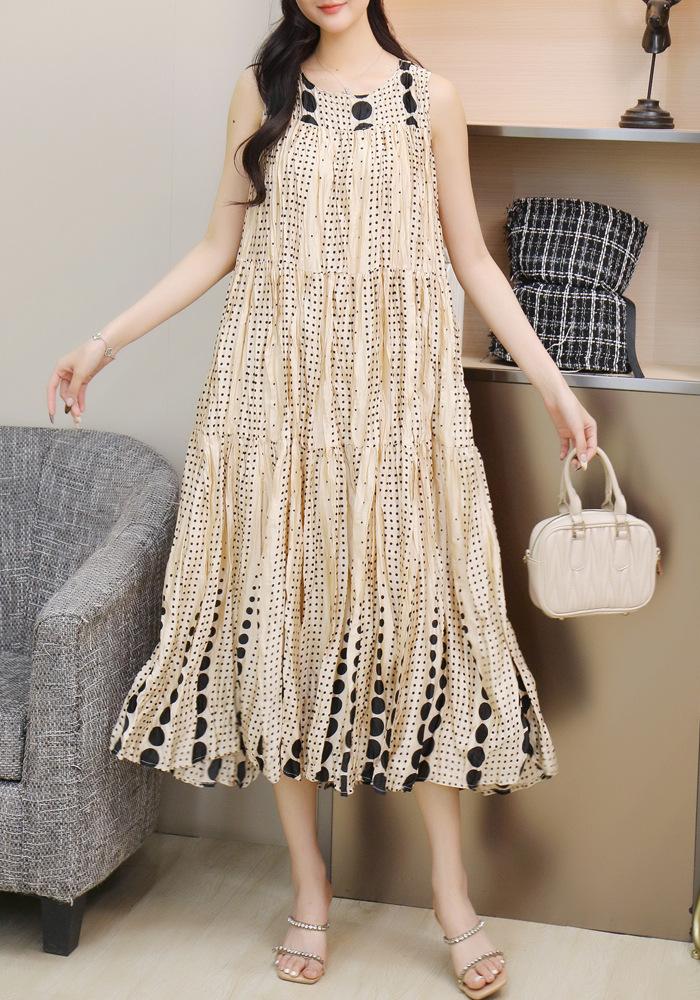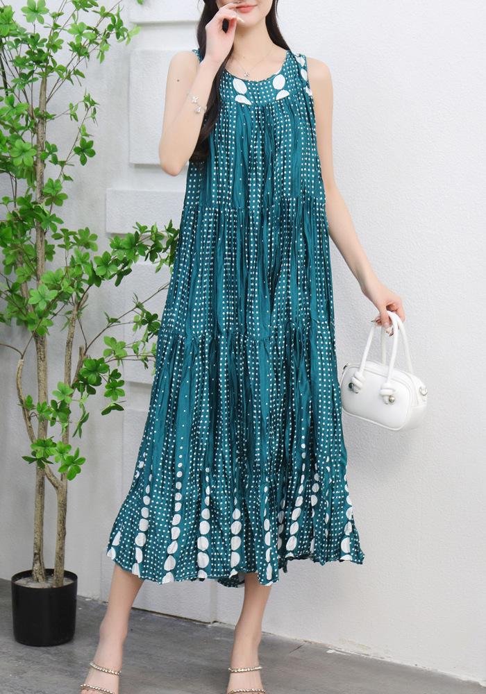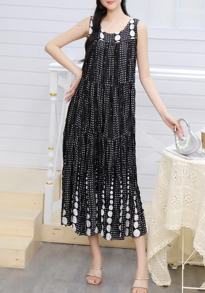 Vestido plisado retro estampado de lunares de onda para mujer, verano nuevo, cómodo, encantador, ligero, diseño sin mangas, moderno, vestido de gran vuelo