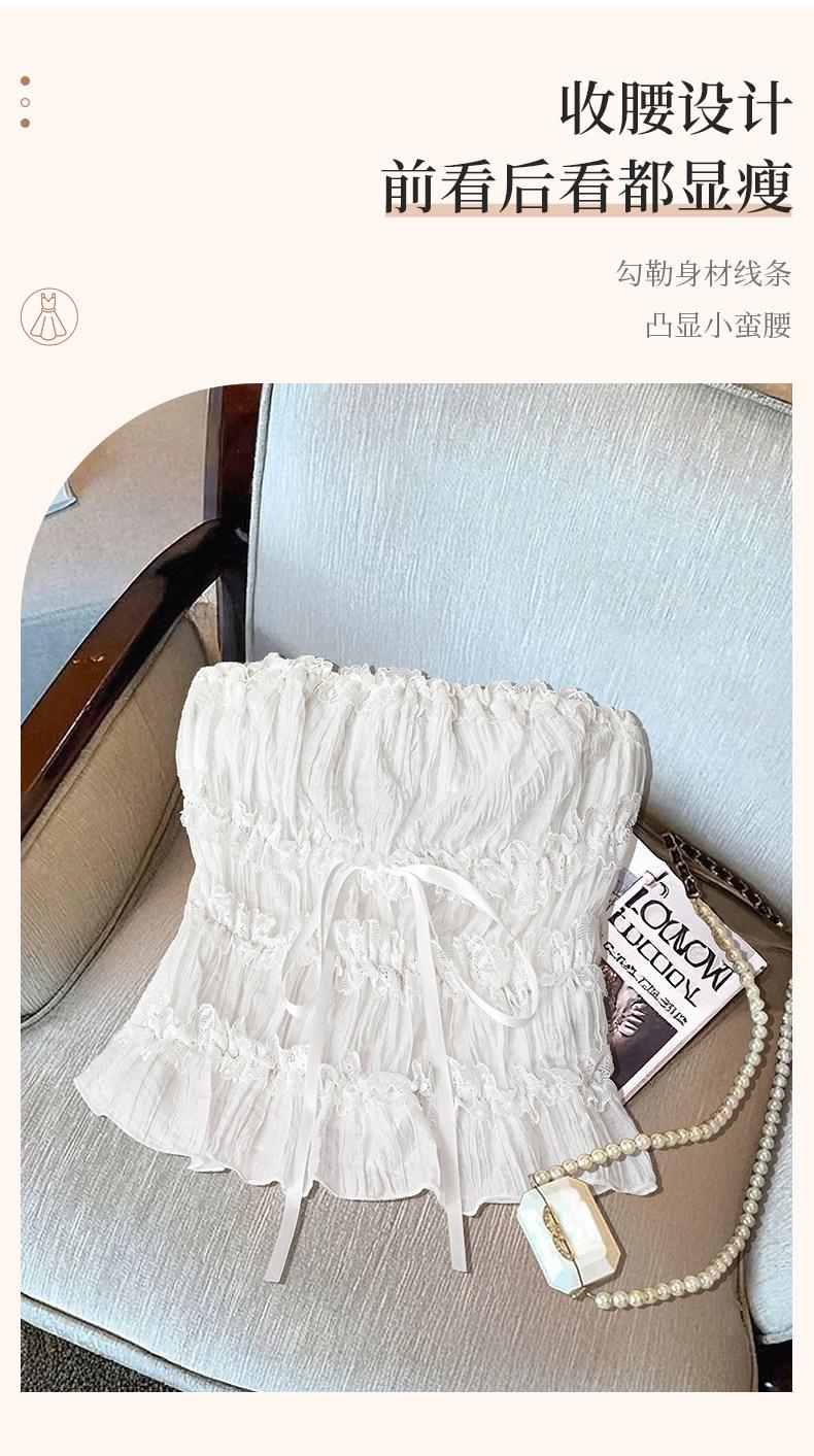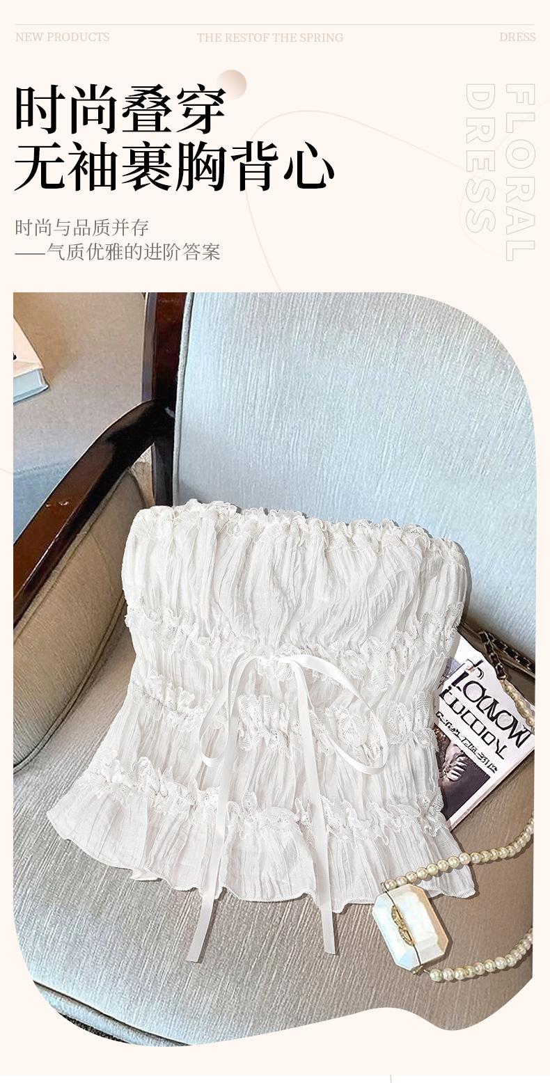 Comercio Exterior Transfronterizo Ropa de Mujer Estilo Europeo y Americano 2025 Nuevo Lazo Blanco Sexy Espalda Descubierta Strapless Bandeau Chaleco Pequeño