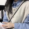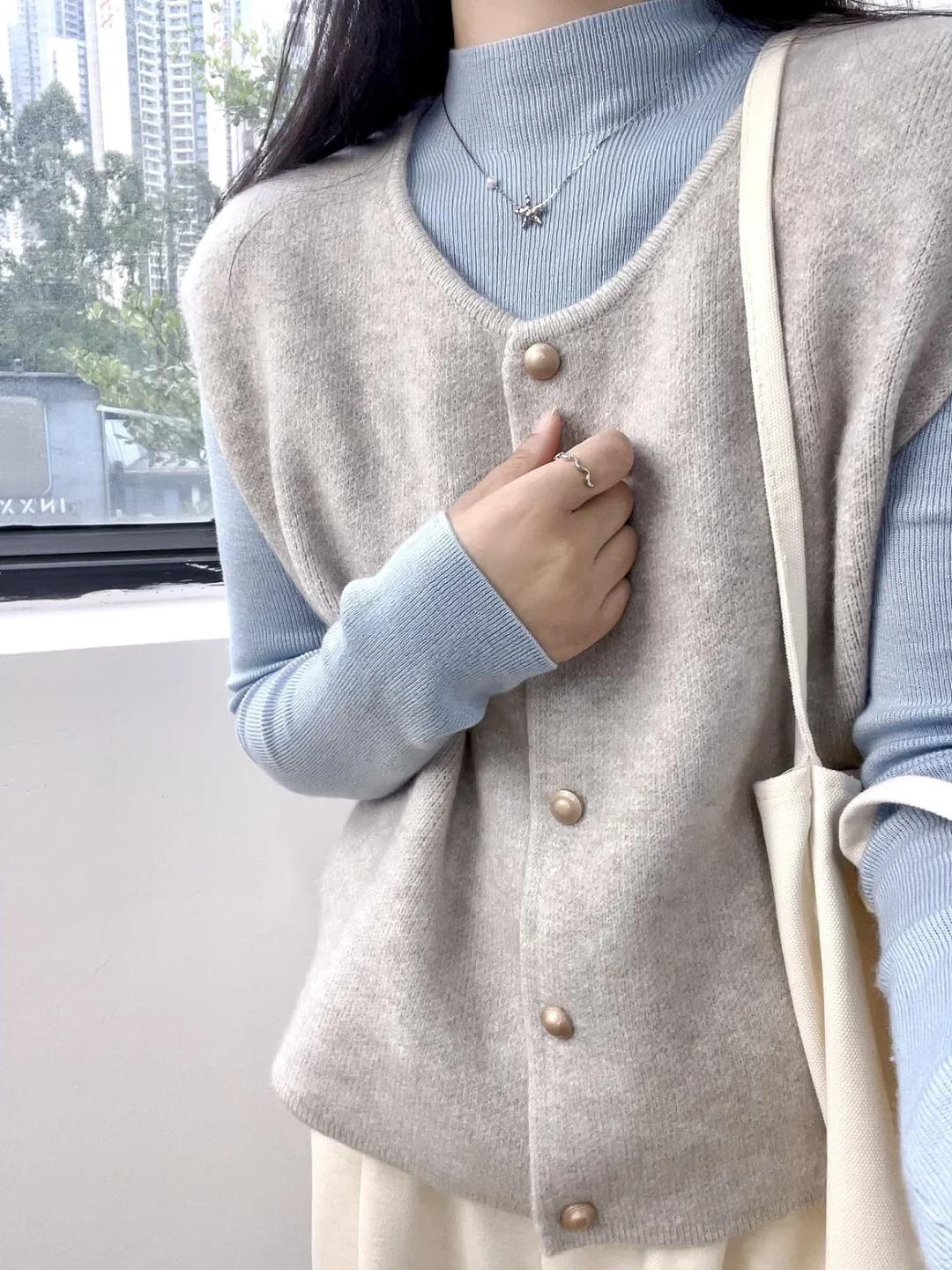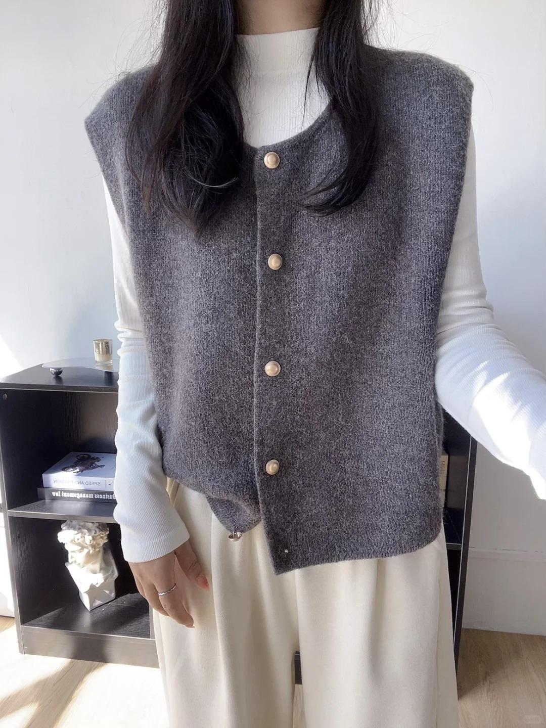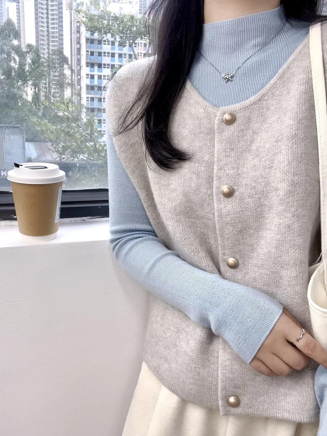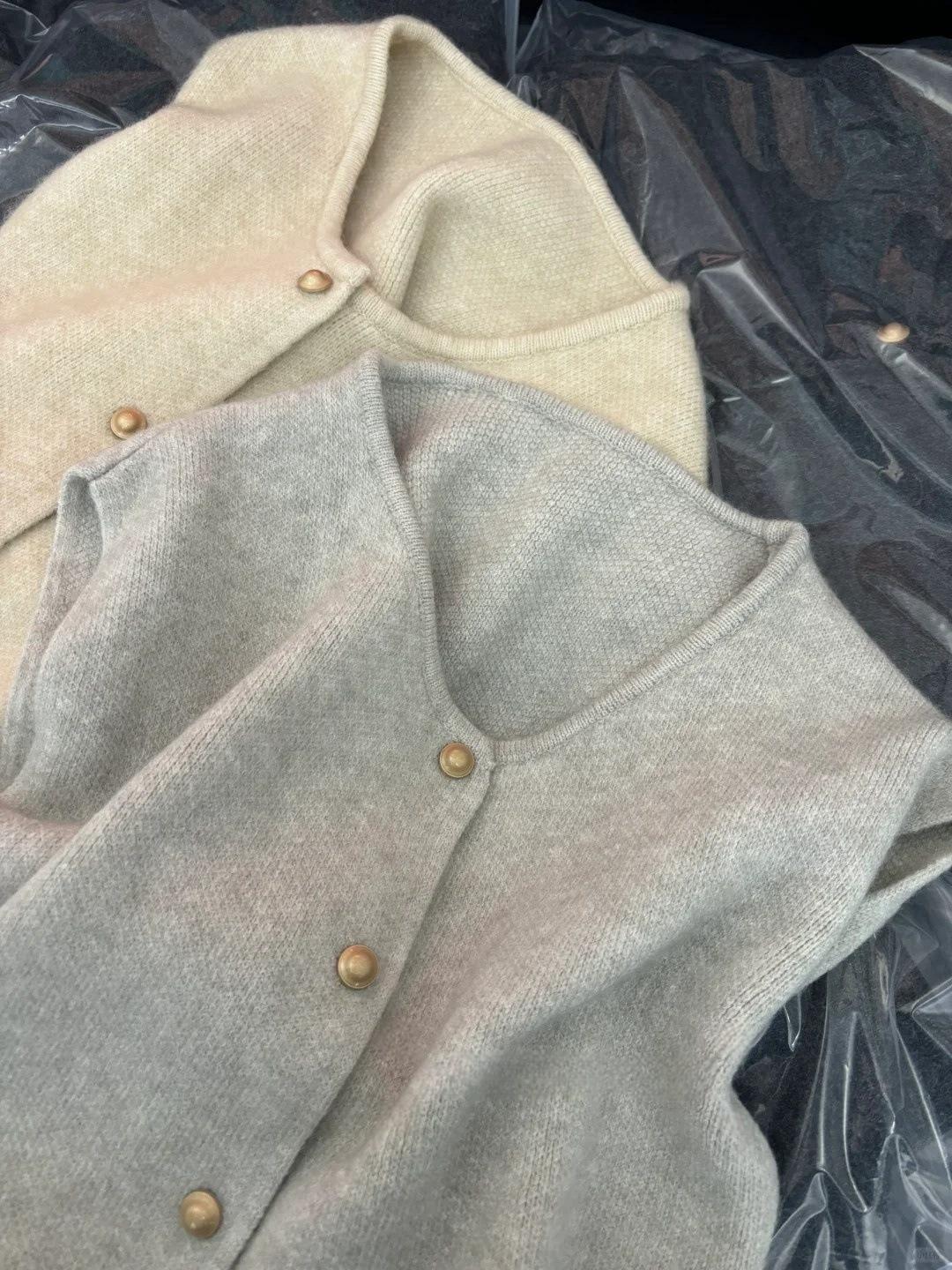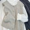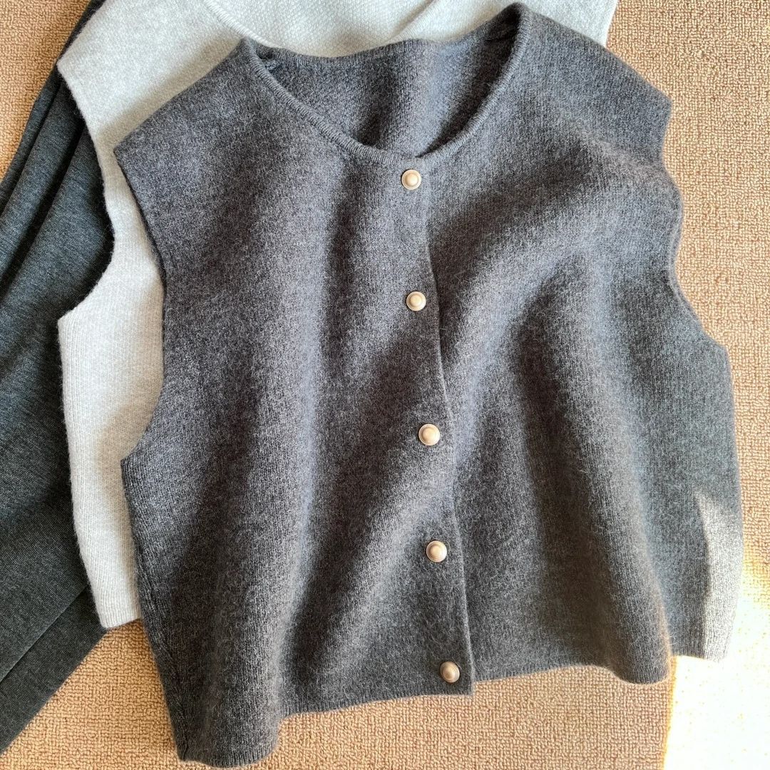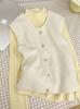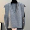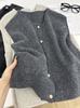 Primavera 2025 Chaleco de punto con hebilla metálica para mujer Suéter suave y ceroso Temperamento casual Más fácil de combinar Estilo holgazán Top Chaleco