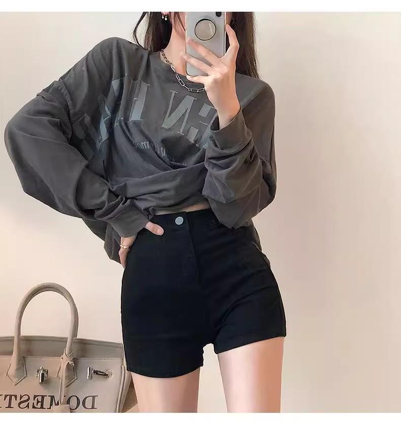 Shorts Negros Ropa Exterior de Mujer 2024 Verano Talla Grande Retro Chica Picante Jeans Cintura Alta Adelgazantes Ajustados a la Cadera Pantalones Cortos Hot