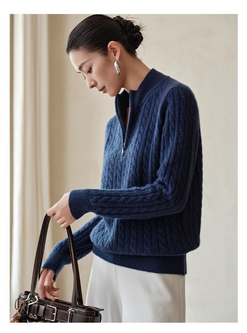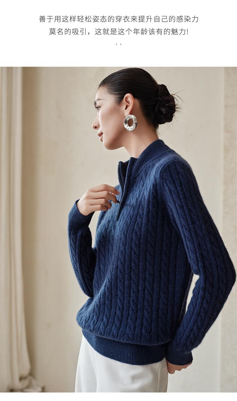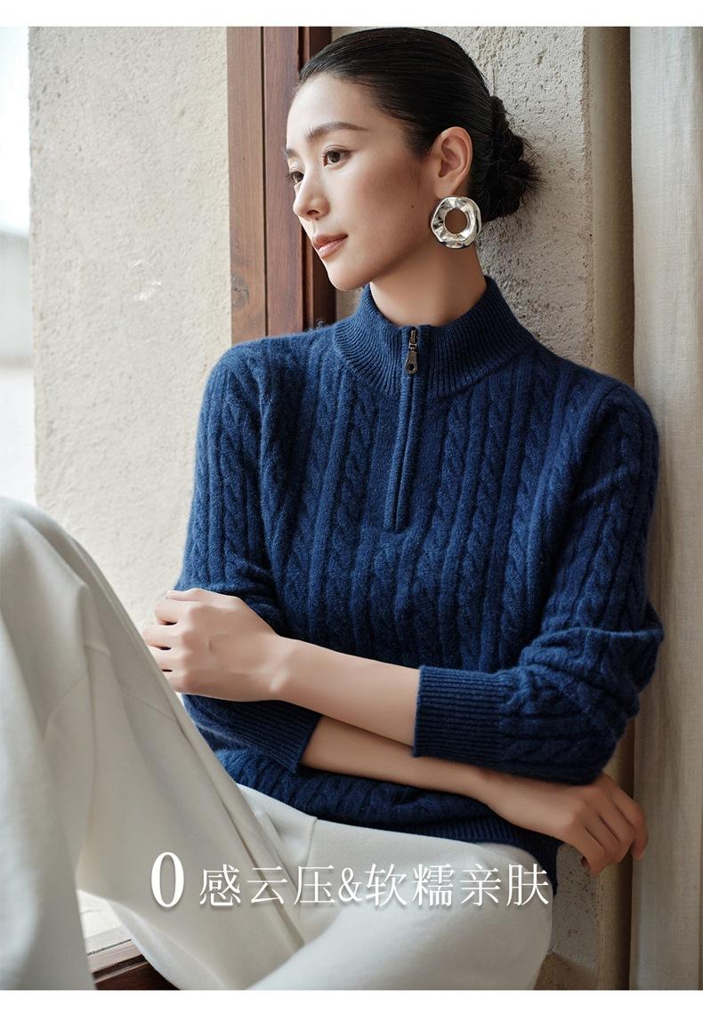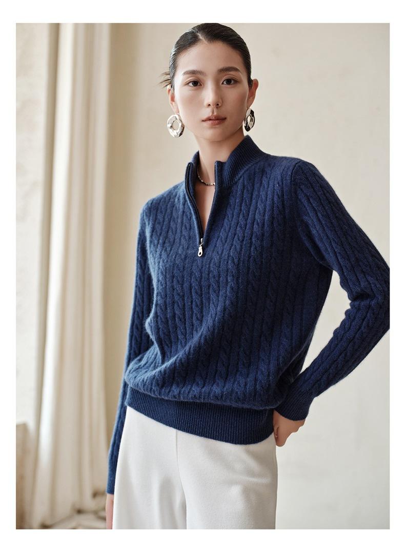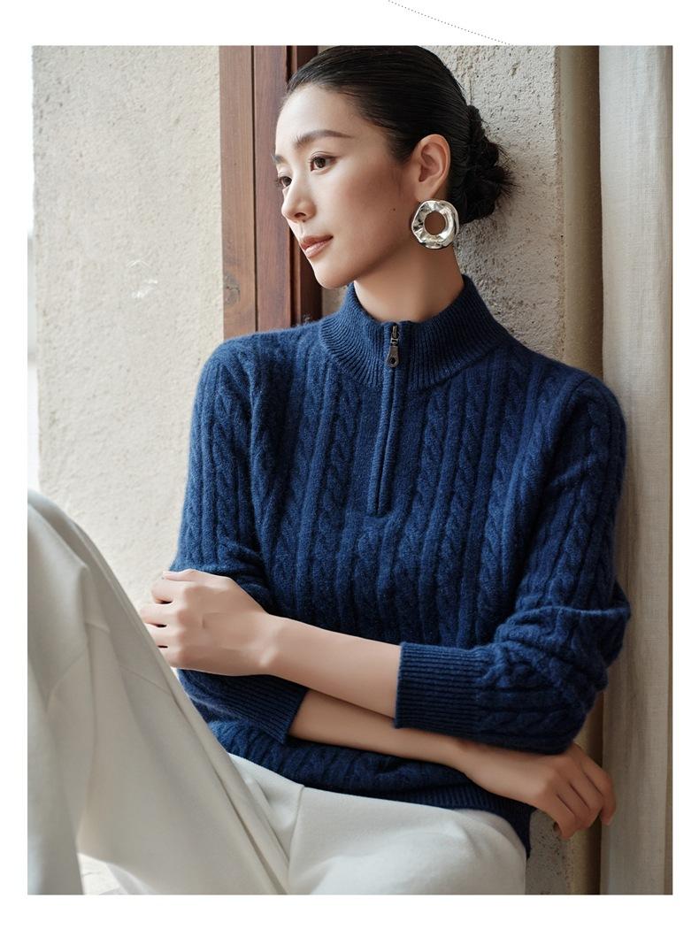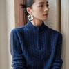 Suéter de cachemira para mujer 100% cachemira pura otoño e invierno nuevo semic cuello alto medio abierto manga larga jersey suéter tejido de cable