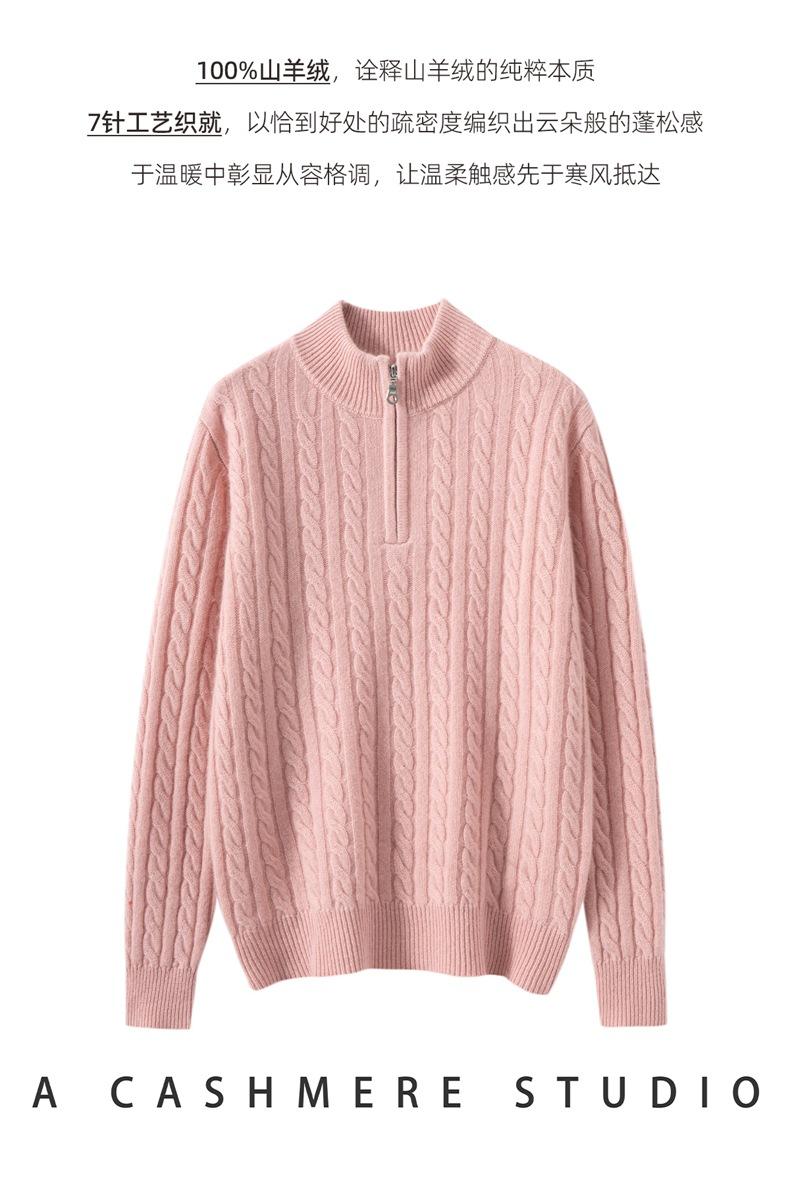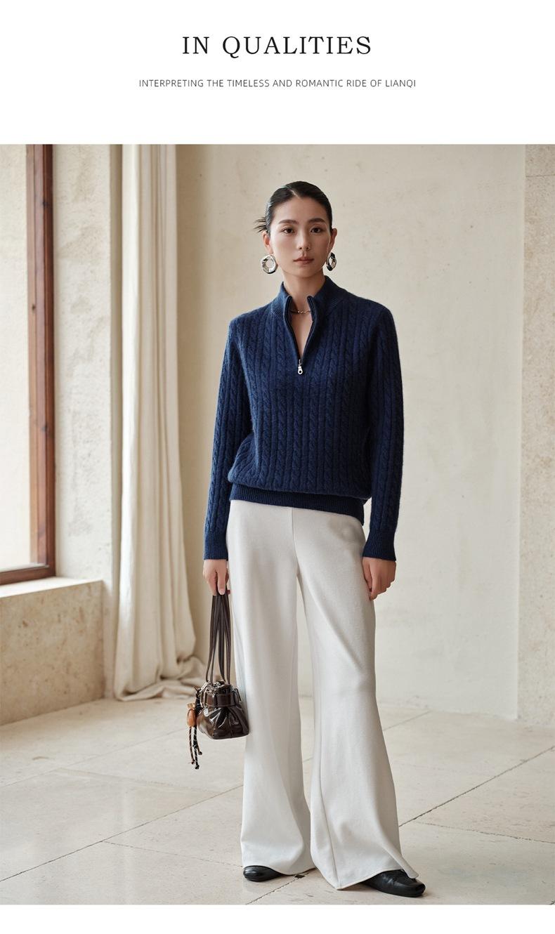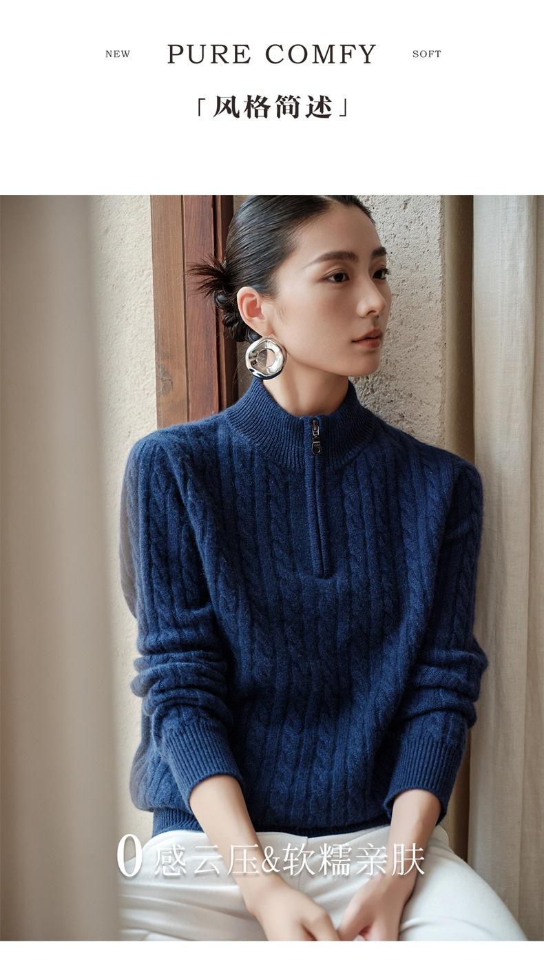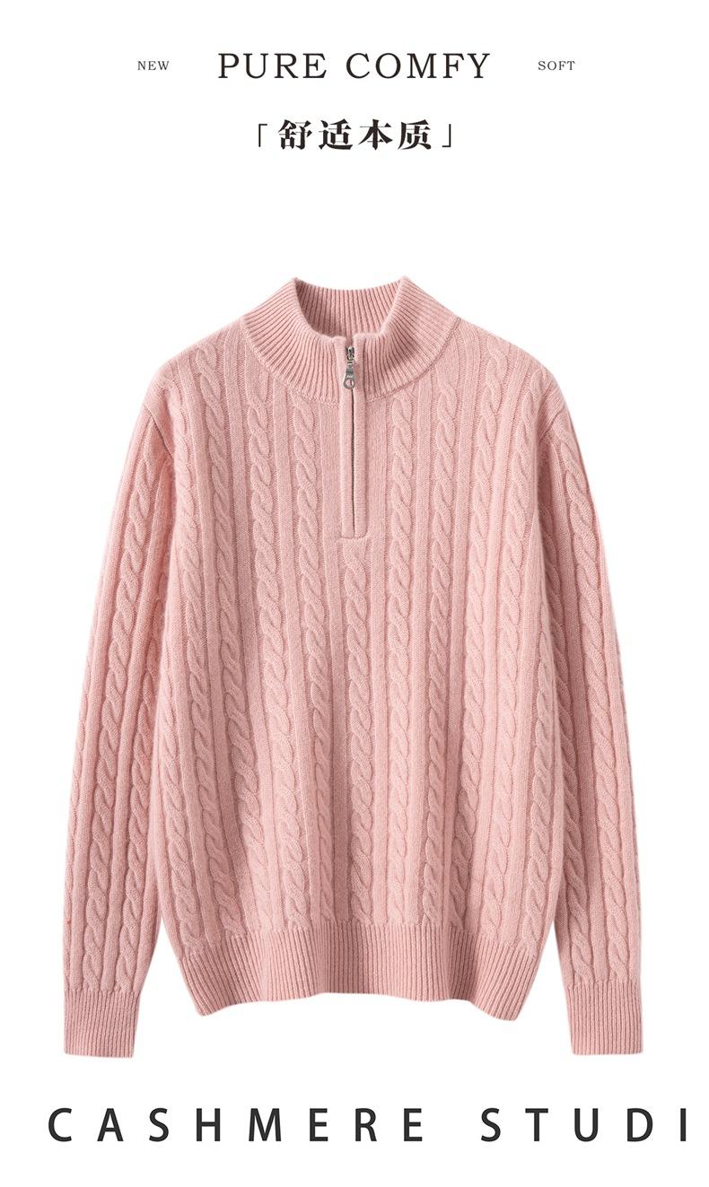 Suéter de cachemira para mujer 100% cachemira pura otoño e invierno nuevo semic cuello alto medio abierto manga larga jersey suéter tejido de cable